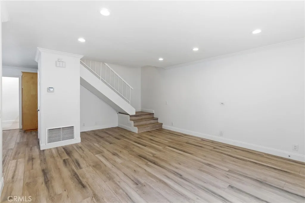 Phenomenal and rarely available end unit home in the Yorktown Villas neighborhood! This 3 bed/ 1.5 bath unit boasts 1,176 sq ft of living space and is completely remodeled and BRAND NEW AIR CONDITIONING, vanities, shower, and flooring! No shared walls with immediate neighbors other than a stairwell on the side so it truly feels as closed to a detached home as you can possibly get with a condo. Some of the features include: Google Doorbell, Nest/Google Thermoset, brand new vinyl flooring upstairs, granite countertops and stainless steel appliances in the kitchen, turf in the private yard, ceiling fans in every bedroom and main area, recessed lighting, brand new interior paint, spacious private patio in rear, one car garage, private parking spot with direct access to the unit, dual paned windows and slider with additional UV tint added to each.
