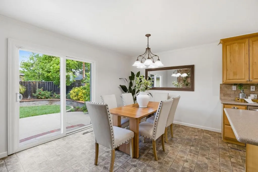 Beautiful 4-bedroom, 2-bath Cambrian Park home on a tree-lined, quiet inner street in one of the best neighborhoods. This charming south-facing residence offers approx. 1,497 sq ft in a highly desirable floor plan. Flooded with natural light and enhanced by recessed lighting throughout for clean, modern illumination. The home features extensive custom landscaping, a hand-sculpted concrete patio, an extended driveway, and a welcoming flagstone front porch. Step into the elegant step-down living room with a fireplace and large windows that offer breathtaking views of the professionally designed, park-like backyard. The open layout provides stunning rear-yard views from the living room, family room, and primary suite. Genuine wood flooring flows throughout, complemented by a bright, contemporary ambiance. The open kitchen features a custom stone backsplash running from the counter to the ceiling. Upgrades include new PEX/copper plumbing, 200-amp electrical service, a freshly painted interior, a refurbished HVAC system, and dual-pane windows. Two upgraded bathrooms complete the home.
