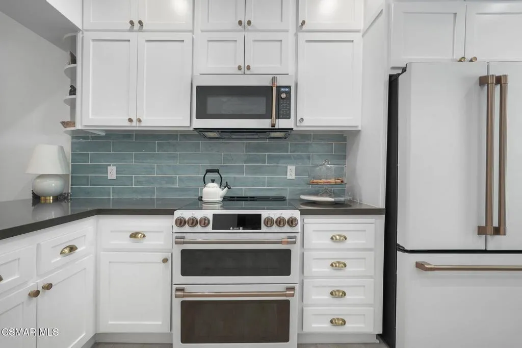 CONVENTIONAL FINANCING AVAILABLEElegantly reimagined in 2023, this stunning home blends modern luxury with effortless comfort. Wide-plank, high-performance flooring flows throughout, leading into a designer kitchen that truly impresses--featuring quartz countertops, soft-close cabinetry, champagne bronze accents, Cafe appliances, and sleek finishes. The open-concept layout is filled with natural light, showcasing soaring ceilings, recessed lighting, a cozy fireplace, and a beautifully updated half bath--creating the perfect space for both relaxing and entertaining.Upstairs, two spacious en-suite bedrooms offer private retreats--each with its own bathroom and custom walk-in closet. The primary suite is a true sanctuary, complete with a private patio and a spa-inspired bath adorned with floor-to-ceiling marble, a rainfall shower, and refined designer details. The secondary bedroom also features its own en-suite bath, perfect for guests, a home office, or nursery. Enjoy added convenience with in unit washer/dryer, a one-car garage, assigned carport parking, and smart home features, along with access to a community pool, gym, and dog-friendly walking trails. Ideally located near Westlake Village, Agoura, and Calabasas in the desirable Shadow Oaks community, this move-in-ready home offers the perfect blend of style, location, and lifestyle.This home is in the Shadow Oaks community - NOT Shadow Ridge. Conventional financing is approved.