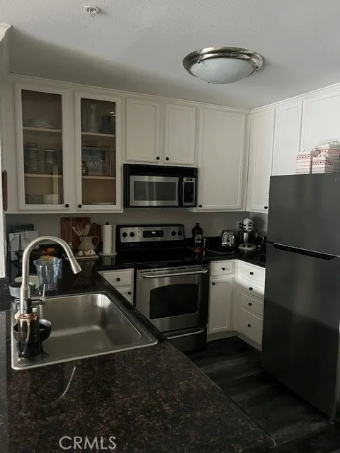Move In ready condo in the beautiful community of Triana at Corona Ranch. Newer vinyl floors, kitchen sink and faucet, garbage disposal, refrigerator, shower/tub and toilet, as well as air unit with the NEST. Open floor plan with large master bedroom and walk in closet. Full size washer and dryer also included. Large balcony and a single car garage with permitted parking space as well. Amenities of the HOA include pool, spa, clubhouse, gym, BBQ area and gated security. HOA also includes water, trash, maintenance and sewer services. Great location just one mile from 91/15 freeways and located close to shops and restaurants