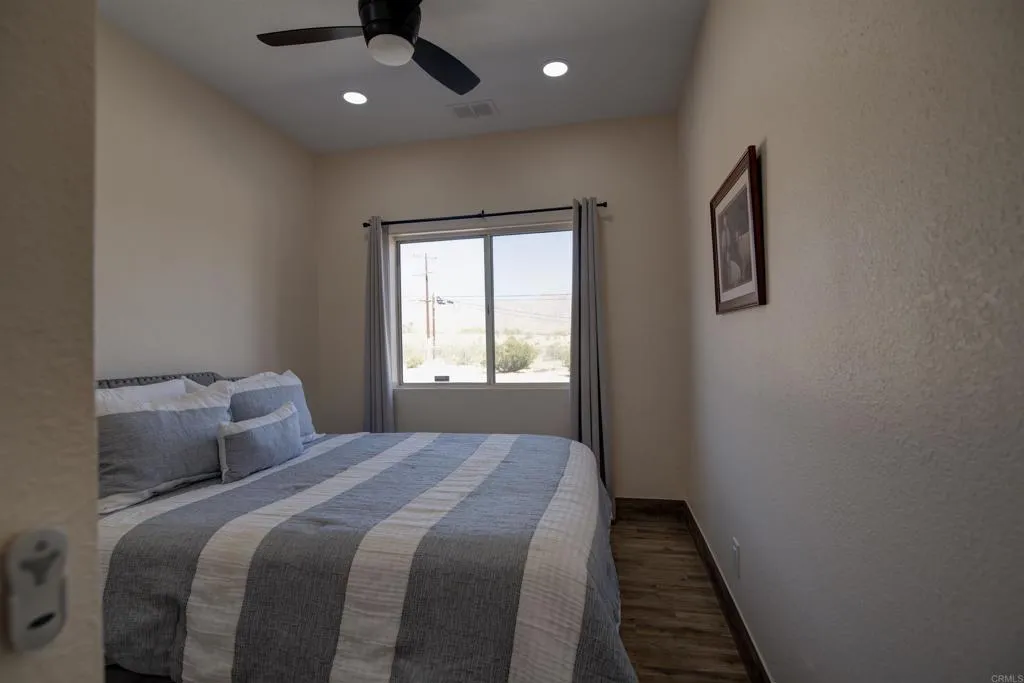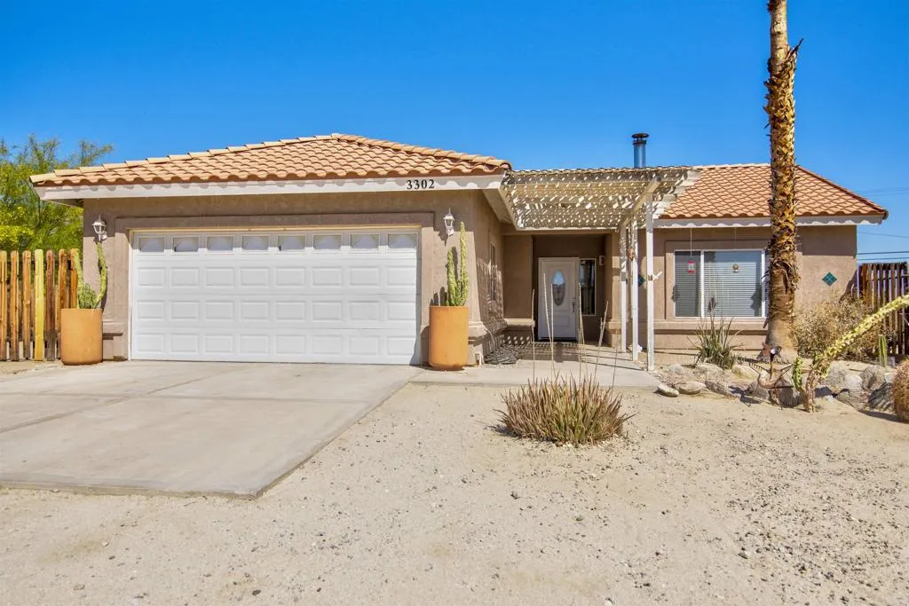 End-of-Cul-De-Sac Privacy on approximately 2 Acres! Discover the perfect desert retreat featuring a thoroughly remodeled 3-bedroom, 2-bathroom home situated on a sprawling estate comprised of three separate lots. Enjoy unobstructed, panoramic mountain and desert views from your quiet, private sanctuary. The interior boasts a modern, open aesthetic with durable tile flooring throughout. A chef’s dream, the kitchen features sleek solid-surface countertops, an abundance of cabinetry, a propane range, and premium stainless steel appliances. The primary suite offers a luxurious escape with a large, custom-tiled walk-in shower. With over an acre of land at the end of a peaceful cul-de-sac, there is ample room for a workshop, guest house, or RV parking. This turnkey property combines contemporary luxury with the expansive freedom of the desert landscape. Own your view today!
