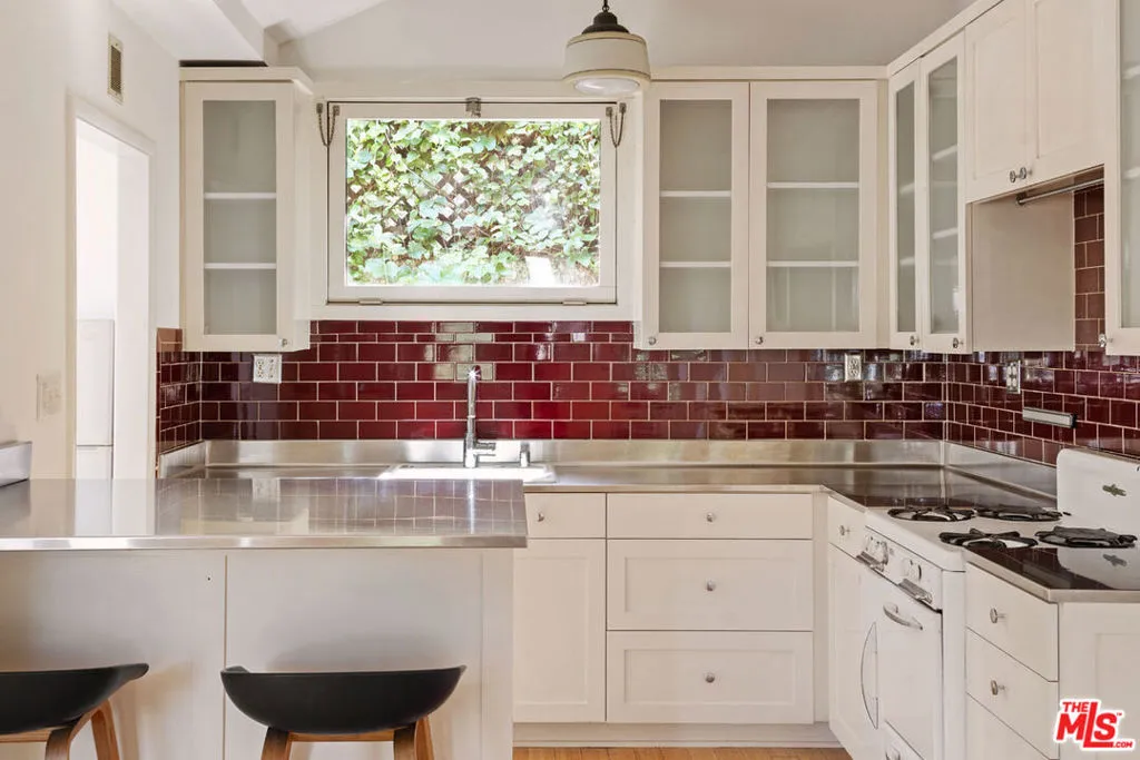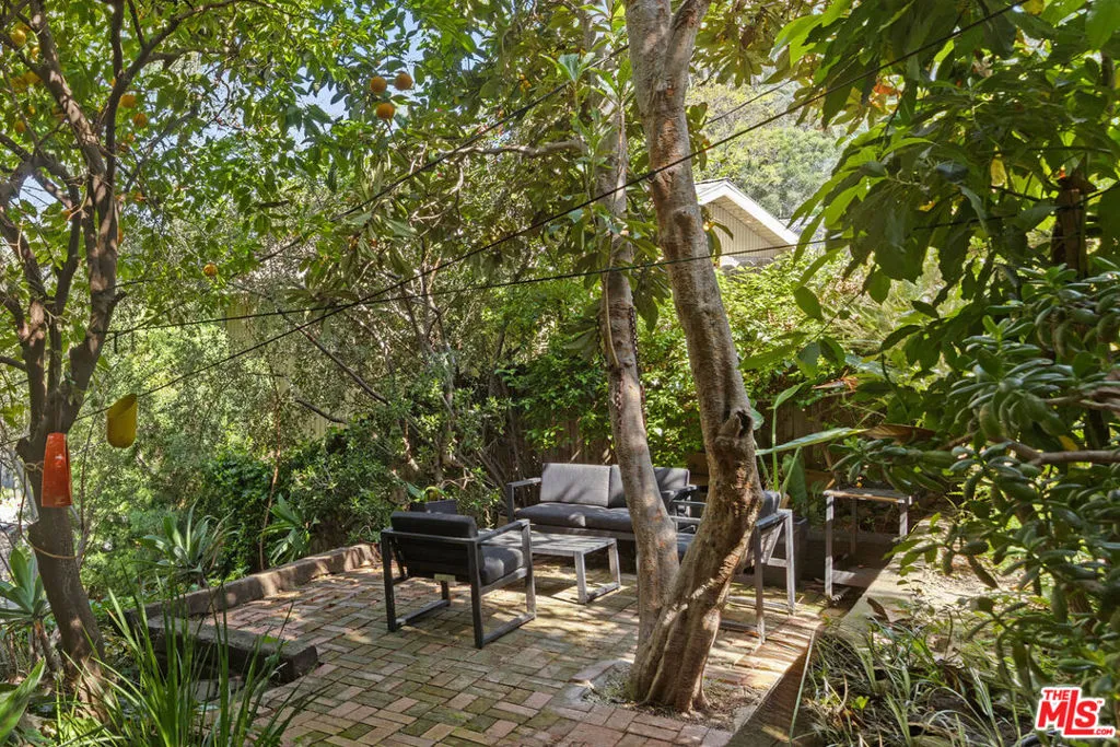 Available for lease in Silver Lake, this gated 1923 California bungalow enjoys a quiet leafy cul-de-sac setting, just a short distance from the Silver Lake Reservoir. A front porch welcomes you into a bright living space where sliding doors connect to a brick patio for dining alfresco. The open kitchen provides generous counter space, O'Keefe and Merritt range, white cabinetry, and room to gather. Both bedrooms are well-proportioned, and there is a full bath with vintage tile and a clawfoot tub. Serene outdoor areas include a backyard with a decorative fireplace and shaded spots to relax under a canopy of trees, including a loquat and a Seville orange. Amenities include AC, laundry, and a one-car garage with tandem parking. You are close to Bacari Silver Lake, Picnic Coffee, Malaya Coffee, and many more neighborhood favorites.
