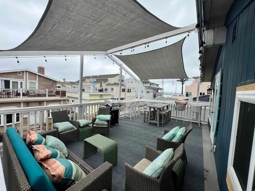 Steps to the sand! Beach Side! Big Blue! Ocean View! Available for Fall 2026 Lease! Fully Furnished Vacation Rental now available fall and winter season Located on a mellow court in South Mission Beach! Our beach house has a great outdoor deck about 20x15 feet in size with ocean view! You can sit on the deck and watch the surf, boardwalk and the pelicans fly by! Sunsets are amazing and you are just steps away from the ocean as we are just four doors to the waves, we are located on the ocean and boardwalk side in South Mission, just south of Belmont Park and the Giant Dipper Roller Coaster. Part of a three-unit triplex, this property is the whole upper level located above two separate one-bedroom beach cottages. This bright and sunny unit has an open beam, vaulted ceiling that provides an authentic beach house feel. The best spot to enjoy grilling and dining on your private deck while just steps away from the deep blue sea, boardwalk, sand, and surf! The location is ideal, making this property convenient for beach activities and all the other sights you don’t want to miss while in San Diego! Check the map to see for yourself! Markets and restaurants are all within a 2 to 3-block
