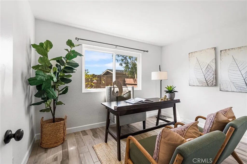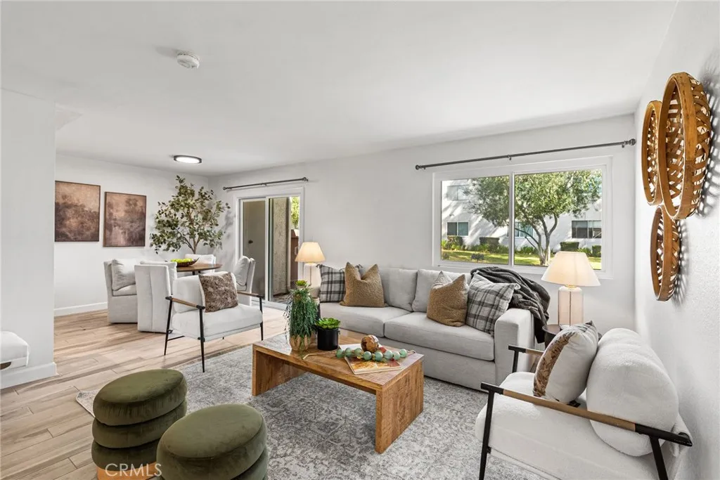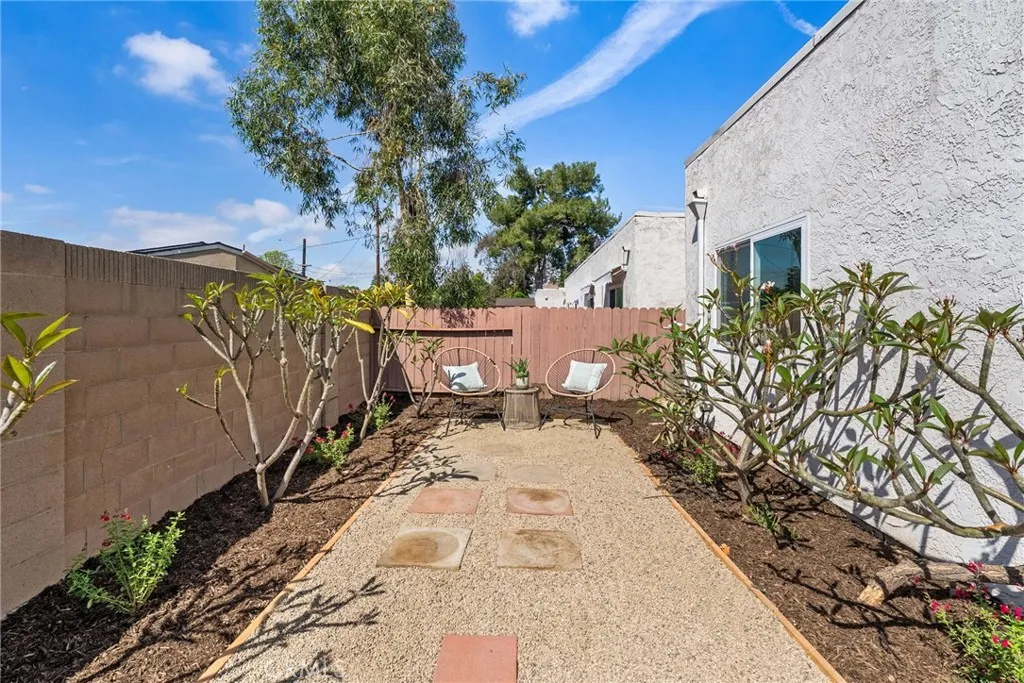 Rarely available, this single-story, ground-level cottage-style unit offers a private patio and the added privacy of no upstairs neighbor—an exceptional opportunity within the Quail Meadows community. Tucked away in a quiet, private location at the back of the community, this charming condo blends comfort, style, and easy living. Featuring 2 bedrooms, 2 bathrooms, and nearly 1,000 square feet of thoughtfully designed space, the home enjoys a peaceful greenbelt setting right out front—bringing a sense of calm to your everyday life. Step inside to fresh interior paint and porcelain tile flooring throughout, creating a light, cohesive feel. The inviting living area features a cozy wood-burning fireplace—perfect for relaxing evenings at home. The kitchen has been tastefully refreshed with granite countertops, a deep sink, freshly painted cabinetry, and stainless steel appliances, making it as functional as it is welcoming. Additional upgrades include a new HVAC system and new double-paned windows and doors for year-round comfort. You’ll also appreciate customized closets in both bedrooms. The bathrooms have been updated with modern vanities, fixtures, lighting, and a beautifully tiled shower, giving the home a clean, move-in-ready feel. Enjoy the convenience of one assigned parking space, along with ample guest parking. The home is ideally located close to the tennis courts within the Quail Meadows community, where residents enjoy resort-style amenities including a pool, spa, and clubhouse. HOA covers water and trash, and there are no Mello-Roos. With popular dining, shopping, fitness, and more just steps away—you’ll love how connected and convenient this location truly is. This is easy, everyday living with a little extra charm!