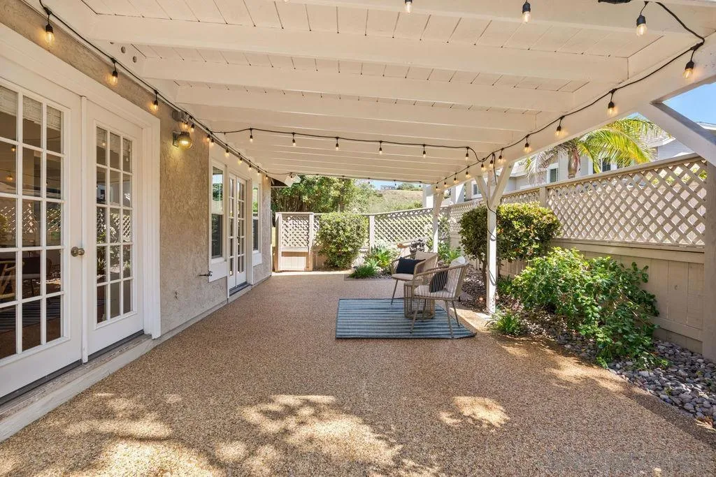 Welcome to 598 Rockport, a rarely available home west of the 5 freeway in the gated community of Leucadia Village. Located less than two miles from the beach, this home offers an ideal combination of coastal location, privacy and a low HOA. The floor plan features a large upstairs primary suite, a main floor bedroom with a full bath, as well as the 3rd bedroom or office. Natural light fills the home with vaulted ceilings, skylights, French doors, and an abundance of windows creating a bright, open feel throughout. The primary suite is spacious and private, complete with its own fireplace, a large walk-in closet, and an oversized bathroom with a walk-in shower and soaking tub. The kitchen has been updated with granite countertops, pull-out drawers, and a breakfast nook overlooking the garden. Additional upgrades include new Milgard windows, LVP flooring, updated blinds, a newer water heater, and a Flow-Tech water system, offering both comfort and efficiency. The covered patio is private, backs to a greenbelt, and is surrounded by landscaping including a lemon tree, creating an easy, low-maintenance space to enjoy year-round. Leucadia Village is a gated community with amenities including a pool, spa, tennis and pickleball courts, and a BBQ area, all within close proximity to the home. The property is also ideally located next to a park with mature trees, adding to the overall sense of space and privacy. Opportunities west of the 5 in Encinitas, especially in a community like this are limited!