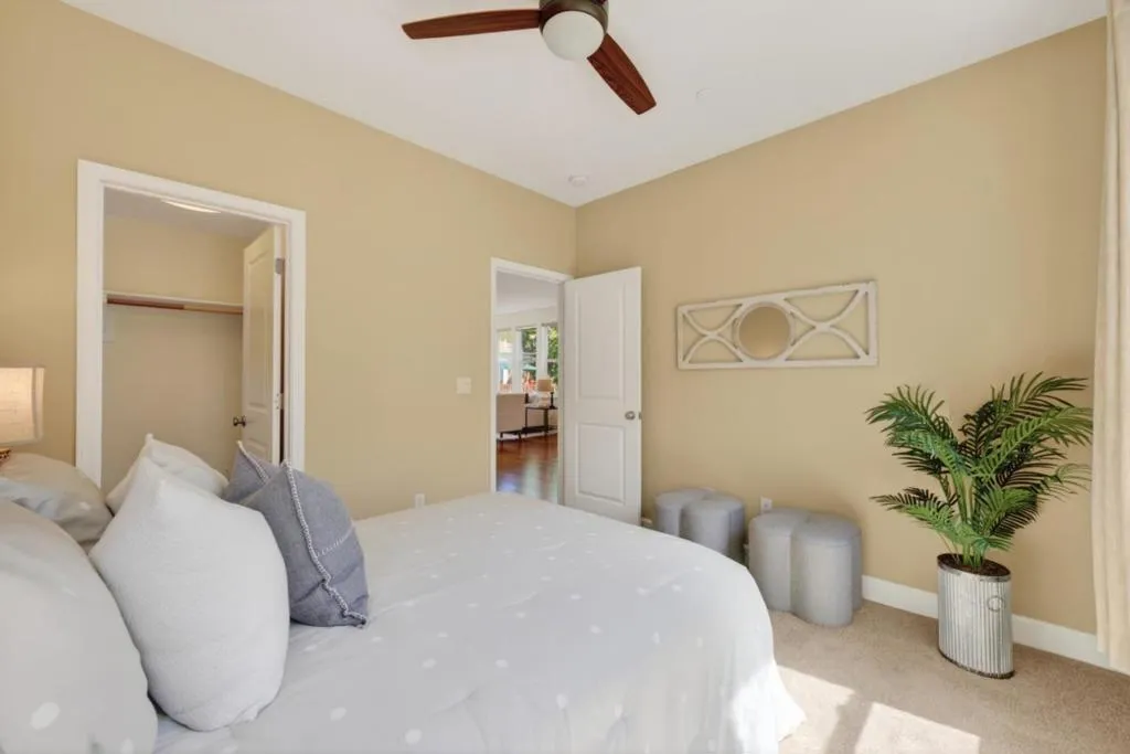 Wonderful opportunity with this fantastic Santa Clara home! This newer construction residence offers 4 bedrooms and 4 bathrooms, combining modern comfort with an unbeatable commute location. Features include high ceilings, recessed lighting, hardwood flooring and a cozy gas fireplace in the living room. Thoughtfully designed with an excellent floor plan, the home includes a spacious downstairs ensuite with a separate entry and backyard access ideal for an in-law suite, guest quarters, home office/business, rental income opportunity, or potential ADU. The spacious kitchen is equipped with newer appliances, ample cabinetry, and quartz countertops, while abundant windows fill the home with natural light. Additional highlights include low HOA dues, a 2-car garage, and a well-designed layout featuring a top-floor primary suite with a double vanity, walk-in closet, large shower, as well as a middle-floor guest bedroom, full bath, and laundry room. Enjoy year-round comfort with central A/C, and take advantage of two separate entrances leading to a private outdoor patio deck perfect for entertaining or relaxing. Ideally located just minutes from Apple Park, NVIDIA, and other major tech campuses. Don't miss this amazing opportunity!!