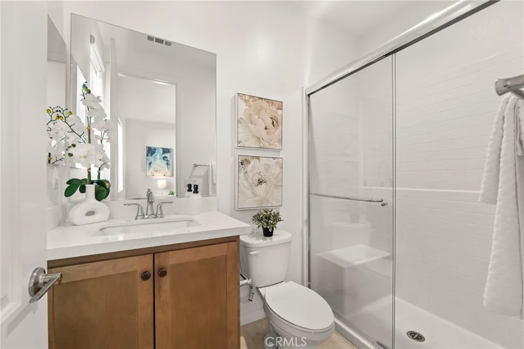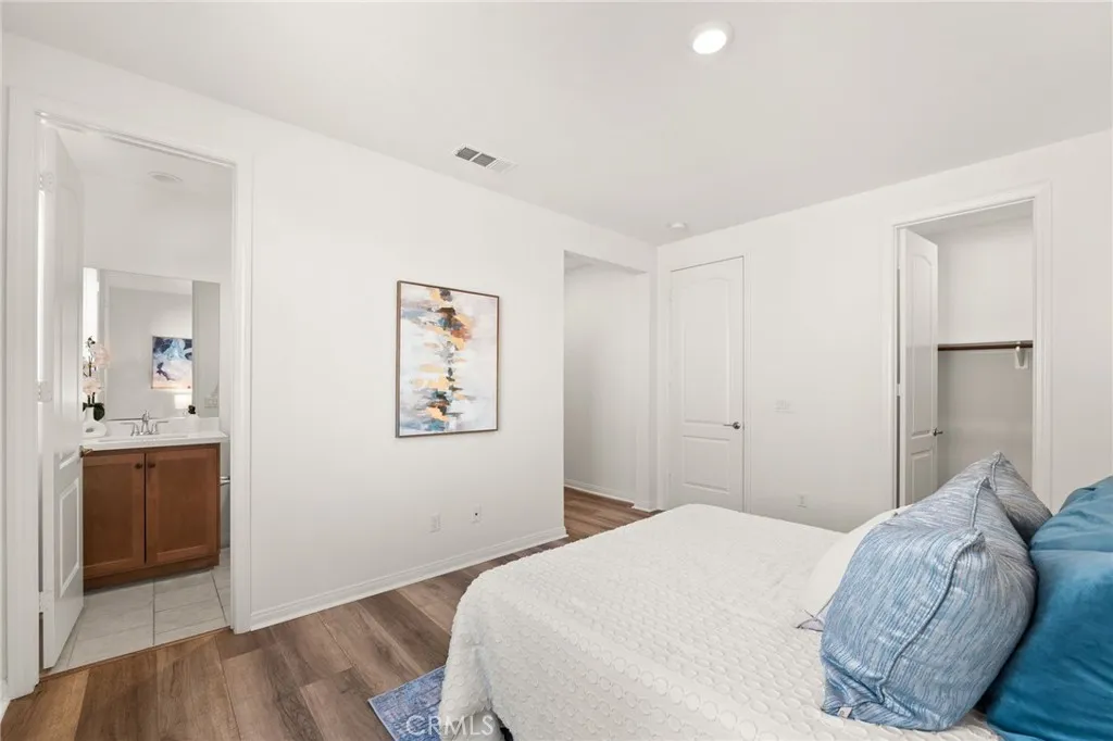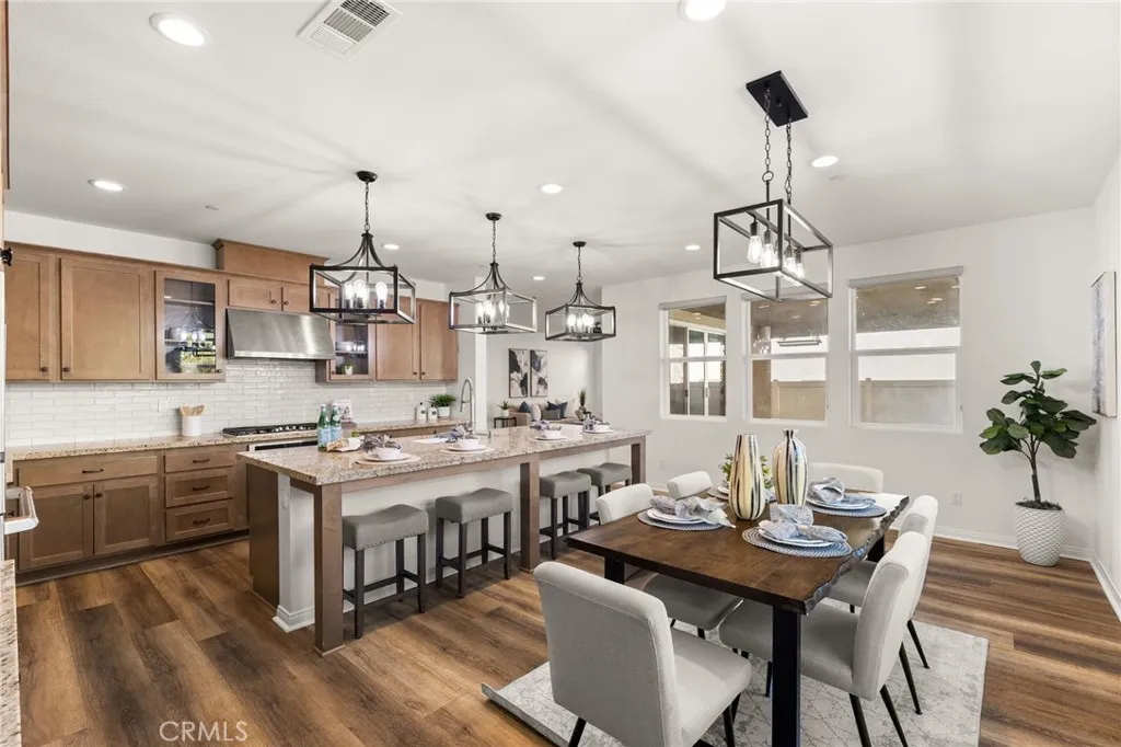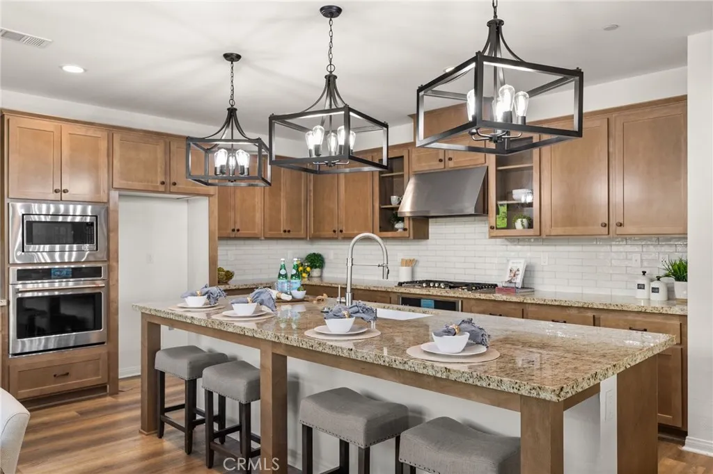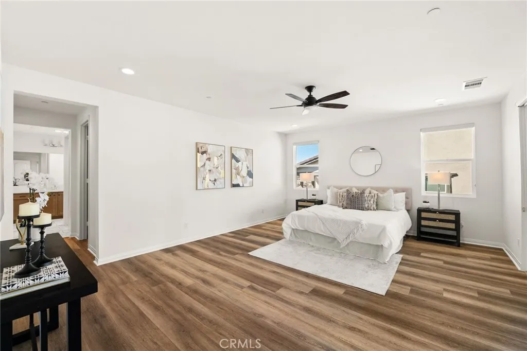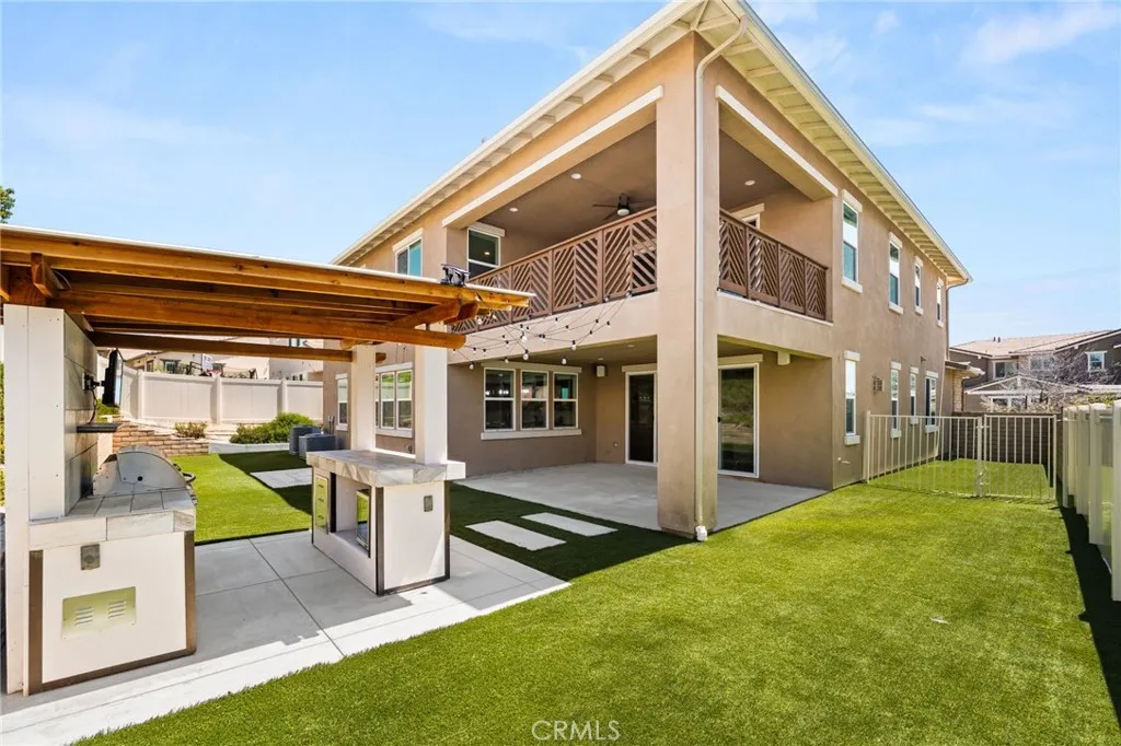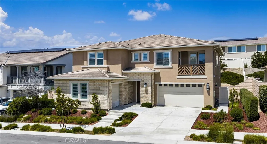 Discover this nearly new Plan 3XD home in the Upton development of Sommers Bend built by Woodside Homes. Sommers Bend sits adjacent to wine country and often has views of hot air balloons meandering through the countryside of beautiful Temecula. This five bedroom, 4.5 bathroom home was upgraded throughout when new with over $52,000 spent in upgrades. As you step inside just off to your left is a spacious bedroom and ensuite bathroom; perfect for visiting guests or those who prefer to be downstairs. Just outside this bedroom is a half bathroom for guests. A large family room is just around the corner with dual sliding glass doors that take you outside to your California room and fully landscaped backyard. Adjacent to the family room is your designer kitchen with stainless steel appliances, modern shaker cabinets, a large kitchen island complete with sink and barstool area. Additionally, just off the kitchen is your own coffee nook area which could also be used as a drop zone for taking off shoes and purses after entering from the garage. Head upstairs to find four more bedrooms and a bonus room area with built in desk that can be used as another television space, kids play area or home office. Two of the bedrooms share a hall bathroom and the third has an ensuite bathroom. The primary bedroom features a gorgeous primary en suite with large walk in closet, dual sinks, soaking tub and large walk in shower plus private water closet. The home has upgraded flooring and modern bathrooms. Your backyard is an oasis that awaits for entertaining. The backyard has a BBQ structure complete with countertops, BBQ, TV, and roof. Home is equipped with a 12 panel solar system and 220V plug in garage for your EV charging needs. The community is connected to miles of walking trails, occasional wildlife sightings, views for days and HOA amenities like sports fields, a pool, a clubhouse, multiple play areas, and much much more. Come see why many can’t wait to call Sommers Bend home!