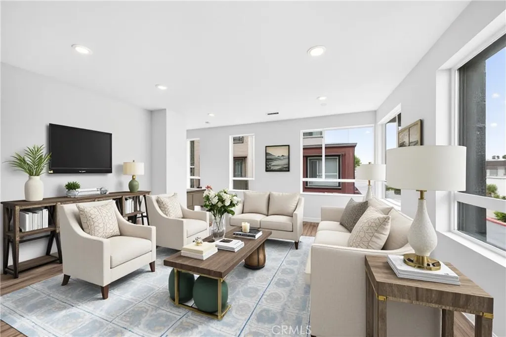 This beautiful, move-in ready condo, built in 2019, offers 4 bedrooms, 3.5 bathrooms, and approximately 2,055 sq ft of modern tri-level living space. The first floor features a private bedroom and full bath—ideal for guests or a home office—with direct access to the attached 2-car garage. The second level showcases a bright open-concept kitchen, living, and dining area with access to a private patio, along with a convenient half bath. The third floor includes a spacious primary suite, two additional bedrooms, a full bathroom, and a dedicated laundry area. Located in a well-maintained community with resort-style amenities including a pool, spa, and BBQ area. Conveniently close to shopping, dining, and easy freeway access.