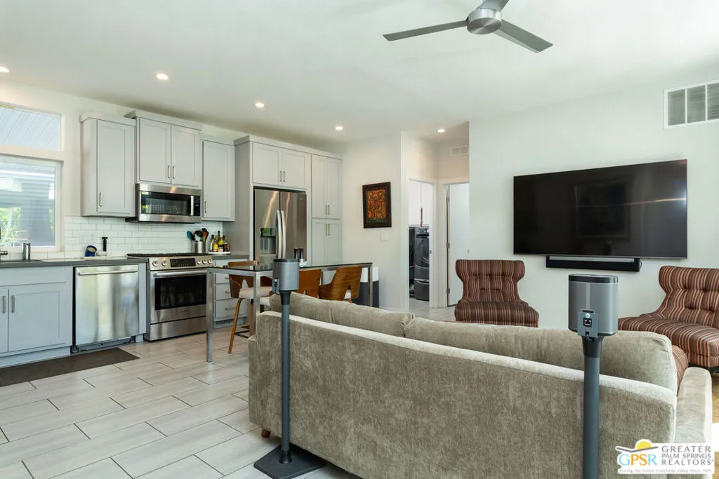 Experience vacation vibes every day at Palm Canyon Mobile Club, where resort-style living is a way of life. This gated community features a pool, spa, grand clubhouse, lounge areas, community BBQ, fitness center, billiards room, shuffleboard, two dog parks, and on-site management, all just minutes from great restaurants, shopping, coffee spots, hiking trails, and more. The open floor plan offers bedrooms on opposite sides for added privacy, making weekend guests feel right at home. Updated bathrooms and a kitchen with modern fixtures are ready for your personal touch. Explore Palm Springs and nearby cities, then relax on your private deck while soaking in panoramic views of the San Jacinto Mountains. Schedule a tour today and start your next chapter in your new home or weekend retreat!