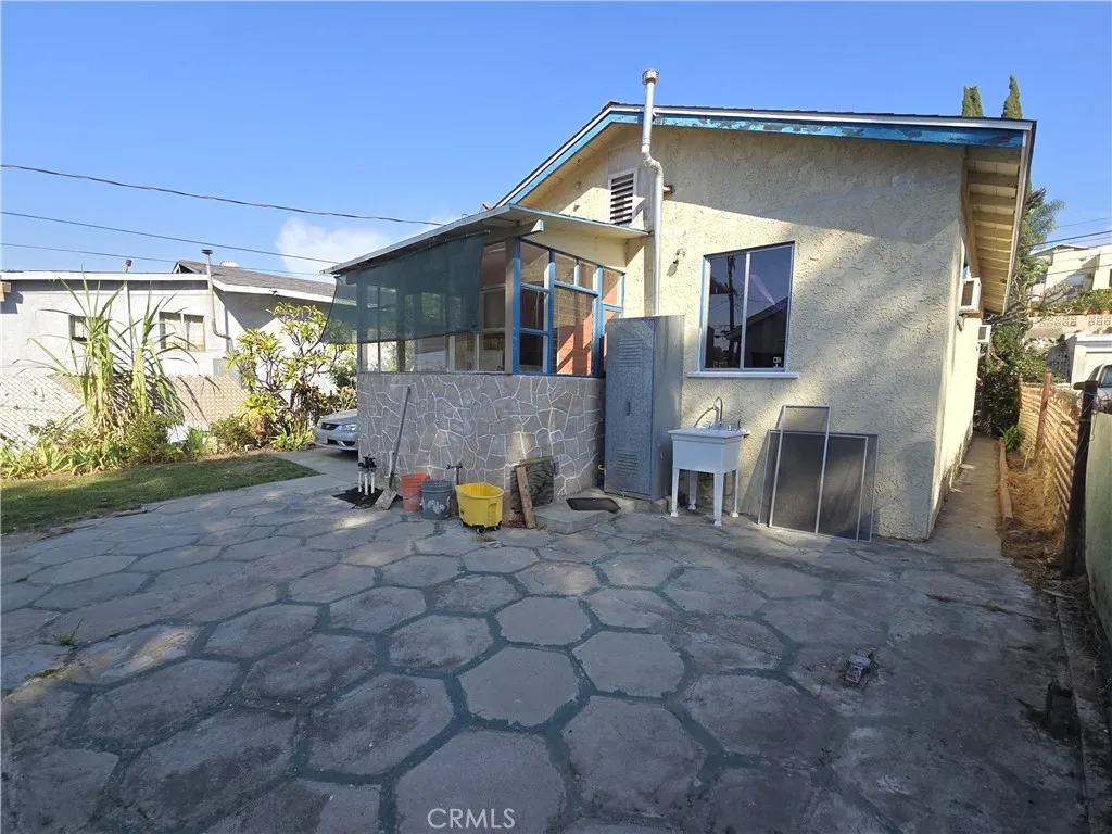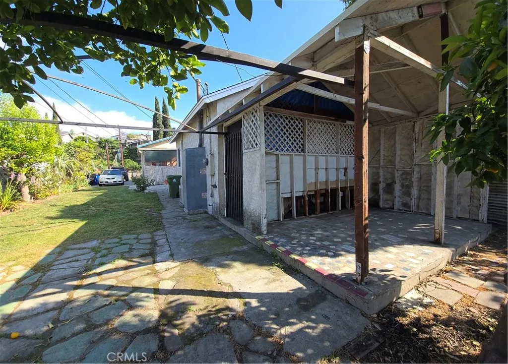 Great duplex with lots of income potential. Either live in one home and rent the other or just rent both homes. Property is under rent control with the City of Los Angeles. Home is approximately three miles from downtown Los Angeles. Bus transportation half-block away. Elementary, Junior High, and High schools within walking distance. Several public parks and churches nearby. Most work completed by homeowner without permits. Updated copper plumbing, electrical wiring, and new roofs to both homes. A new bathroom with grab bars in the front home in 2025and an updated bathroom to rear home approx. 15-years ago. The rear home is a studio floor plan. The front home has a large living room with a one bedroom. Front residence has oak floors in the living room and bedroom, with tile in the bathroom, kitchen, laundry room and cover garden porch. Kitchen has oak cabinets. There are two window A/Cs for cooling and a wall furnace for heating. The rear home has a mini-split for cooling and heating in 2021. Vinyl flooring in the studio and bathroom with wood flooring in the kitchen. There are five seasoned fruit trees: Orange, Mandarin, Fig, Pomona Sweet Lemon, and Persimmon. A court yard separates the two homes. These homes are priced right for the DIY person. Save lots of money in property taxes.