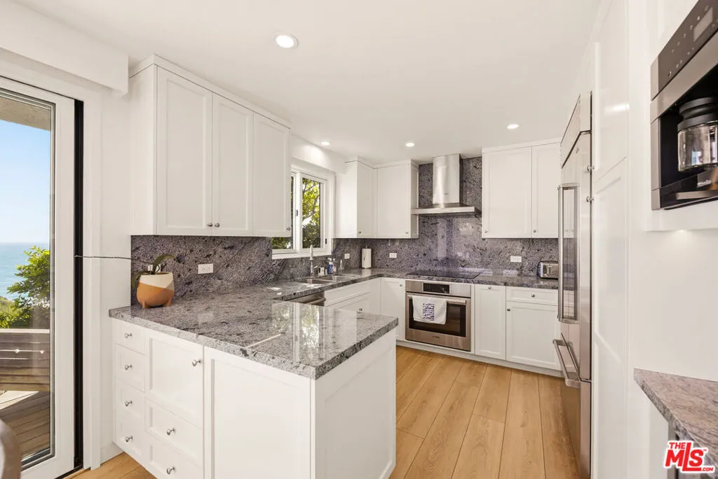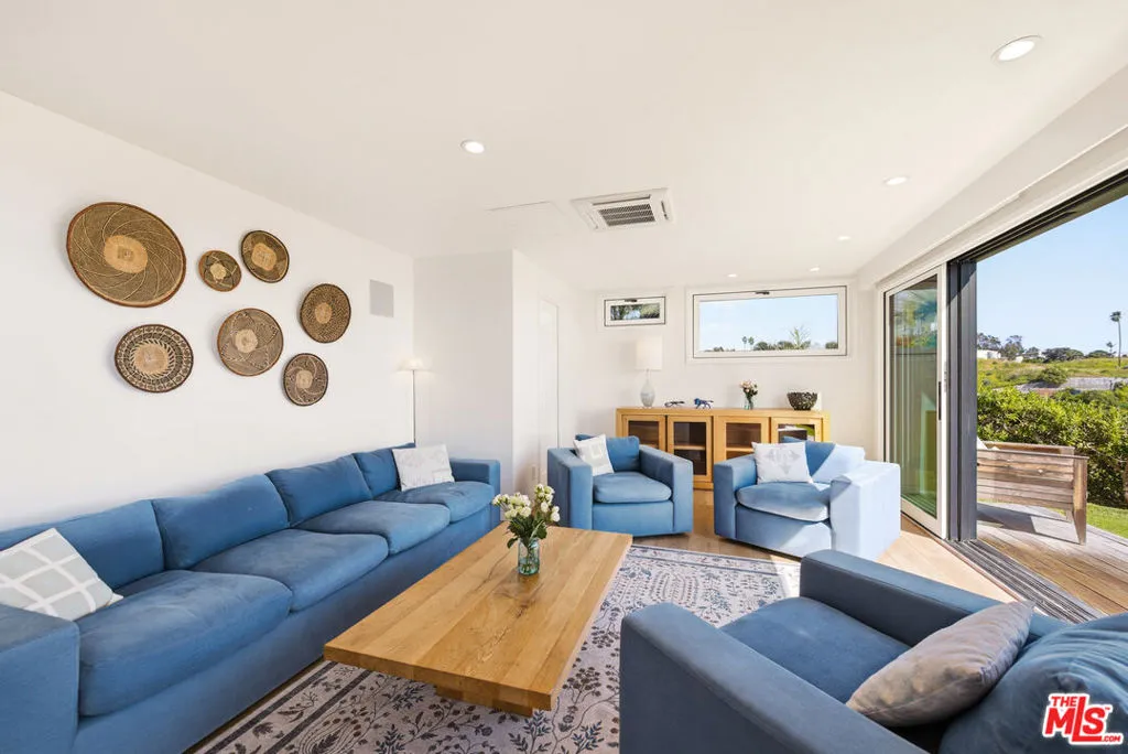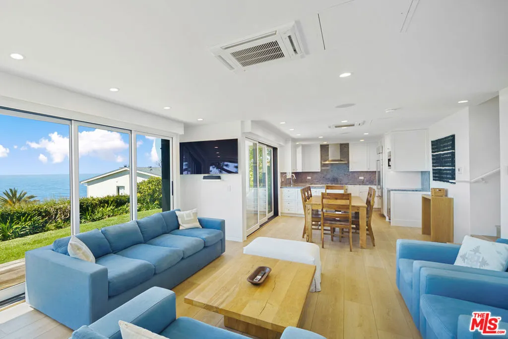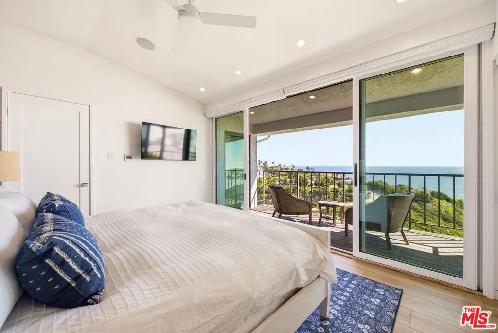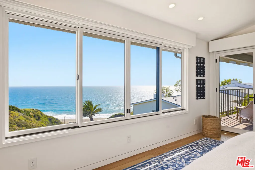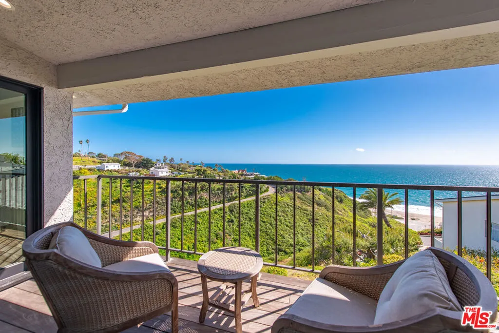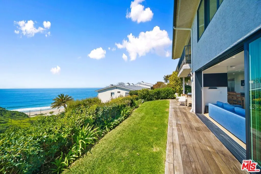Sensational bluff top townhome with totally unobstructed white water ocean views. Located in the guard gated and secure Zuma Bay Villas directly above sandy Westward Beach, this one of a kind end unit is privately located on a very quiet cul-de-sac street. It has been completely renovated and comes fully furnished. The unit features a custom-built floor plan with three spacious bedroom suites upstairs, two with direct, head-on white-water views. Downstairs is a spotless gourmet chef's kitchen with Blue Bahia granite stone counter-tops and stainless-steel Bosch, Subzero and Miele appliances. The kitchen is open to an adjoining living room complete with Restoration Hardware furnishings, and tall glass sliders opening out to a long teakwood deck and green garden area - perfect for relaxing. To make life at the beach even sweeter, the unit comes with Smart Home features including EMTEK keyless entry, Ring security, Lutron lighting and motorized shade controls, and a Sonos sound system. Plus, there are new water heating and air conditioning systems, ceiling fans, and a clean two car garage. In addition, the complex provides 24 hour security, a heated swimming pool and spa, north/south facing tennis courts, and private steps down to the beach below. Grab your surfboards, and your bikes because this perfect Malibu beach retreat!