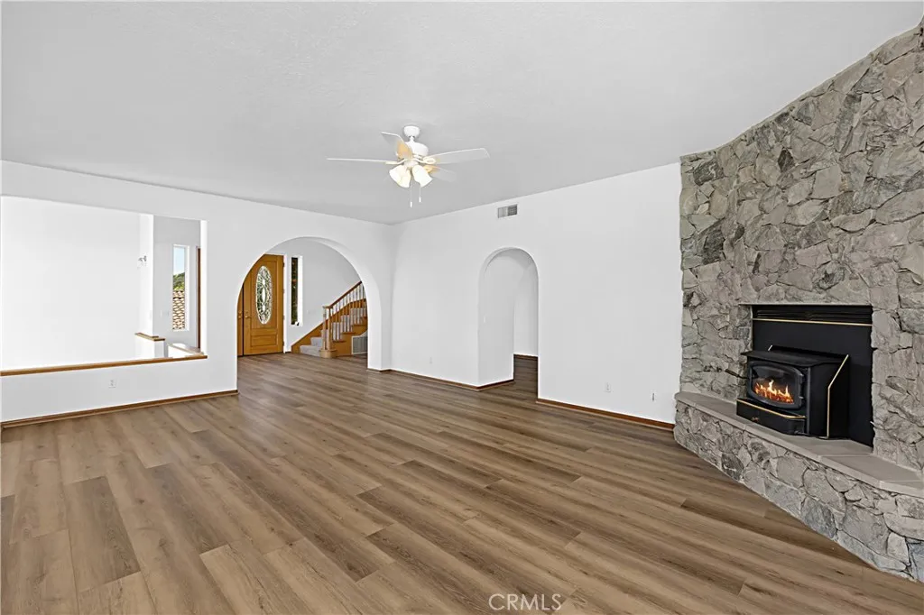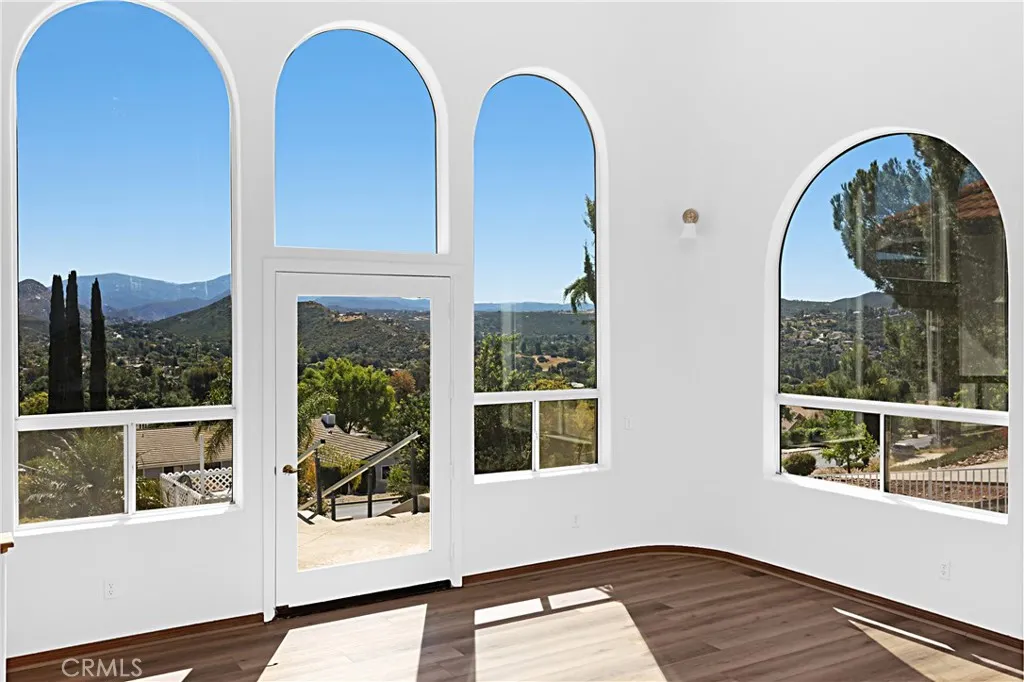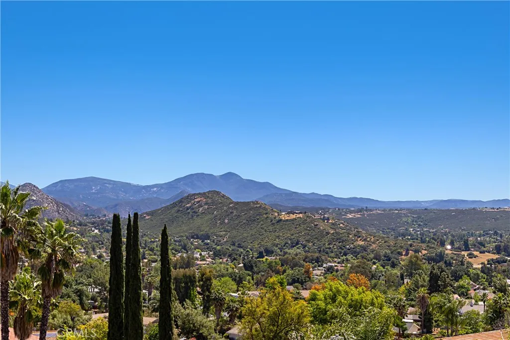 Stunning residence showcasing panoramic mountain and valley views, ideally situated within the highly sought-after San Diego Country Estates. Perched on an elevated gated lot, this light-filled home features expansive windows and an open-concept floor plan designed to capture breathtaking scenery from nearly every room. The home was recently painted inside and outside. Brand new flooring was chosen that includes Paradigm luxury vinyl waterproof plank flooring downstairs, and new Shaw plush carpeting upstairs. The spacious living room boasts dramatic ceilings, abundant natural light, and oversized windows that beautifully frame the surrounding landscape. The adjacent dining area flows seamlessly into the kitchen and the outdoor patio for indoor-outdoor living and entertaining. The kitchen is equipped with brand-new GE Profile appliances; including a refrigerator, convection range, oven, microwave, dishwasher, and trash compactor. Ample cabinetry and generous counter space provide both functionality and style. Just off the kitchen, a cozy family room with a stone-accented fireplace offers a warm and inviting atmosphere. The formal dining room with a wet bar, is perfect for hosting gatherings. Downstairs there is a room that can be used as a bedroom or a home office. Upstairs, there are 3-bedrooms and 3-bathrooms which include an oversized Master suite featuring vaulted ceilings, private outdoor access to a balcony, and an en-suite bathroom with dual vanities, a bathtub, and a separate shower. The 2 additional upstairs bedrooms are generously sized and offer flexible use for family, guests or hobbies. Additional highlights include a Simply Safe security system, 2 separate AC units for upstairs and downstairs, an indoor laundry room, and an expansive three-car garage. The outdoor spaces are equally impressive, featuring a large, terraced back yard with garden areas, fruit trees, expansive front yard decks and patios, and a pool area all designed to take full advantage of the views of the surrounding hills and open space. Residents of San Diego Country Estates enjoy access to exceptional amenities, including the scenic San Vicente Golf Course and Hotel, clubhouse, pools, tennis and pickleball courts, playgrounds and parks, RV storage, 2 Equestrian Centers, and miles of hiking and equestrian trails. This rare opportunity to own a view property that has nearly a half-acre parcel in one of San Diego County’s premier communities. Come visit soon, won't last!