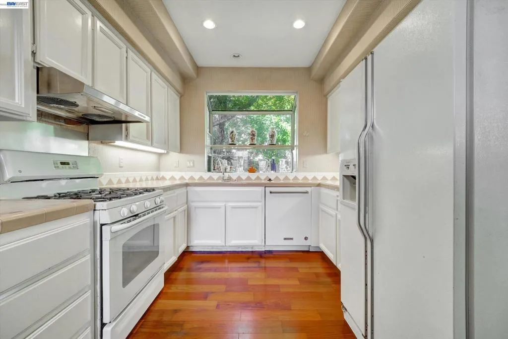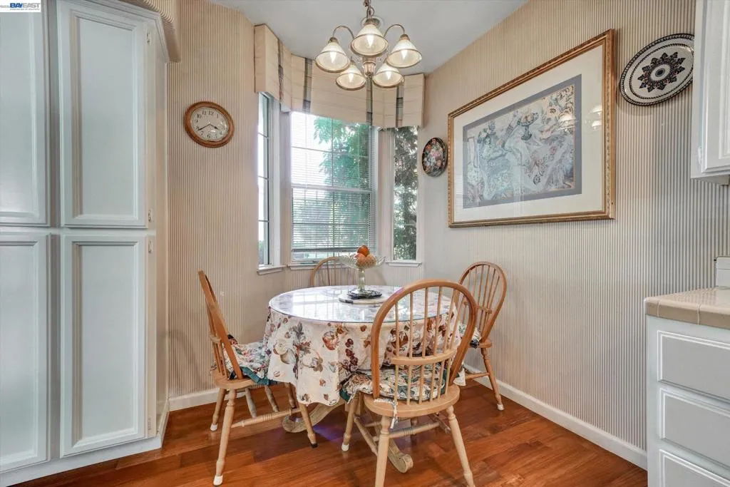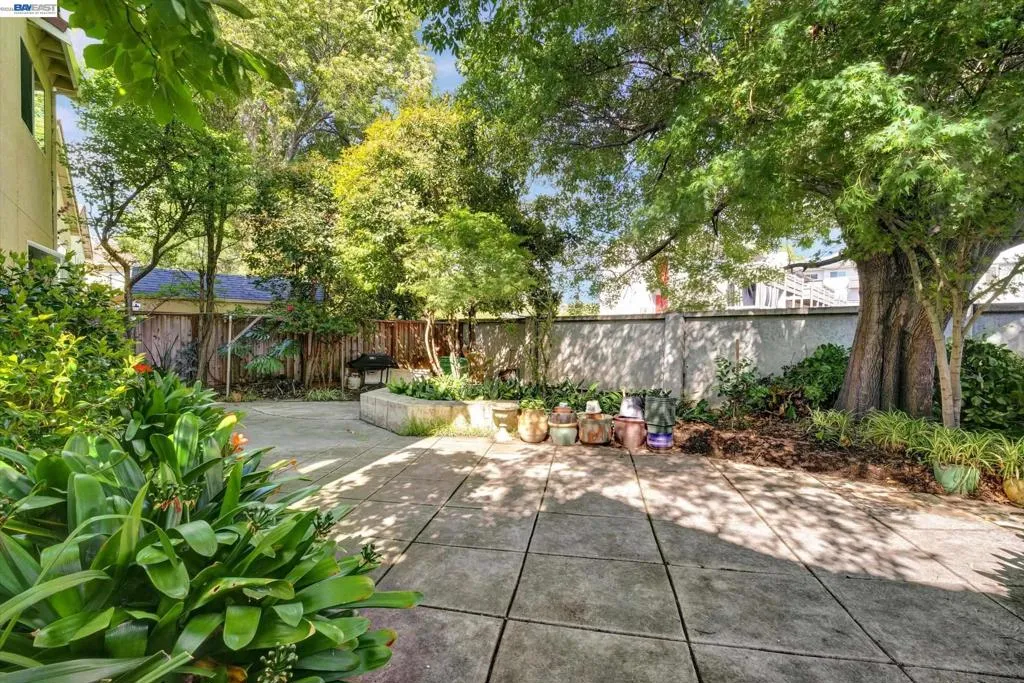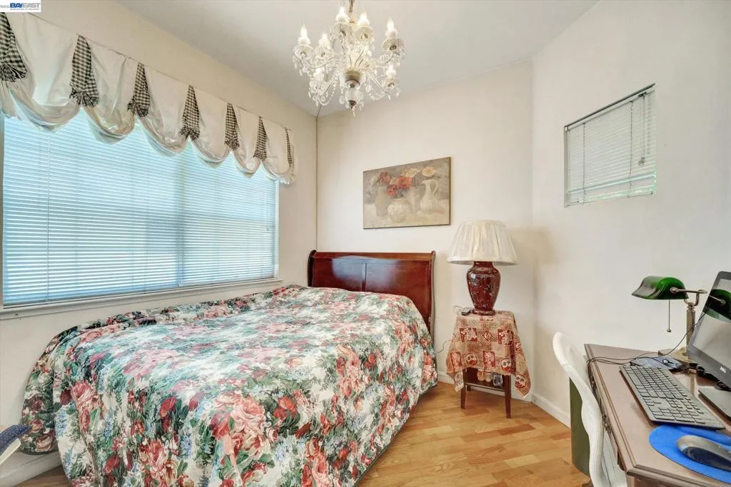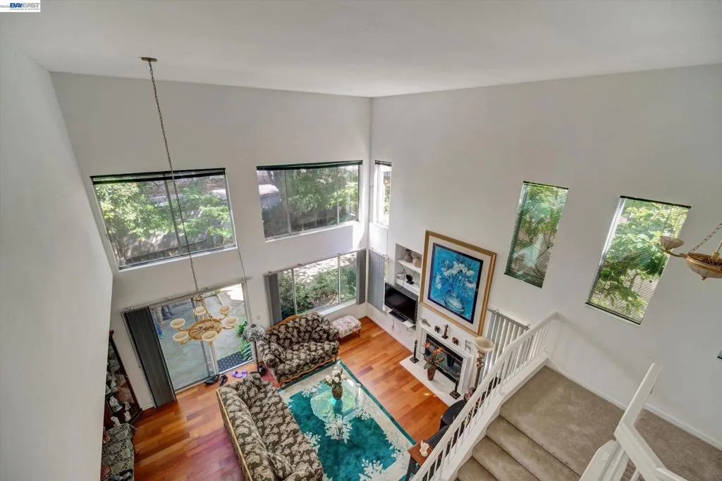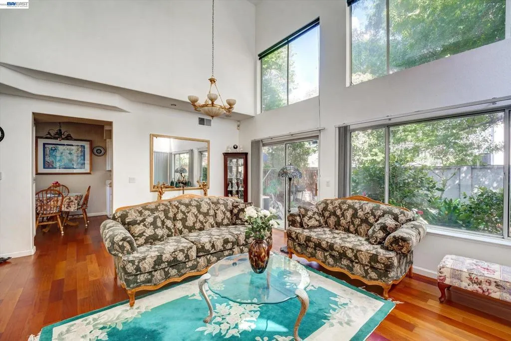 Rare opportunity for model home–style living with a highly sought-after downstairs bedroom and full bath—perfect for guests, a home office, or multi-generational living. Dramatic high ceilings and abundant windows flood the home with natural light, creating a bright, airy ambiance that’s hard to find. Fresh interior paint enhances the clean, move-in-ready appeal. Enjoy a spacious living room with a cozy fireplace, gleaming hardwood floor, and a functional layout designed for both everyday comfort and effortless entertaining. The eat-in kitchen features a large bay window with serene views of the side and backyard, bringing the outdoors in. Step outside to a private, low-maintenance backyard with vibrant landscaping—ideal for relaxing, weekend barbecues, or hosting gatherings. Additional highlights include a garage with washer, dryer, and built-in storage. Unbeatable location near shopping, dining, and specialty stores. A true commuter’s dream with walking distance to BART and quick access to Highways 580, 880, and 238. Homes with this combination of layout, light, and location rarely come to market—don’t miss it.