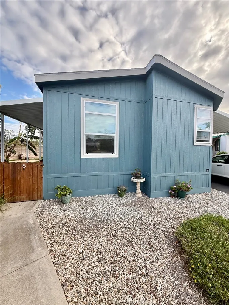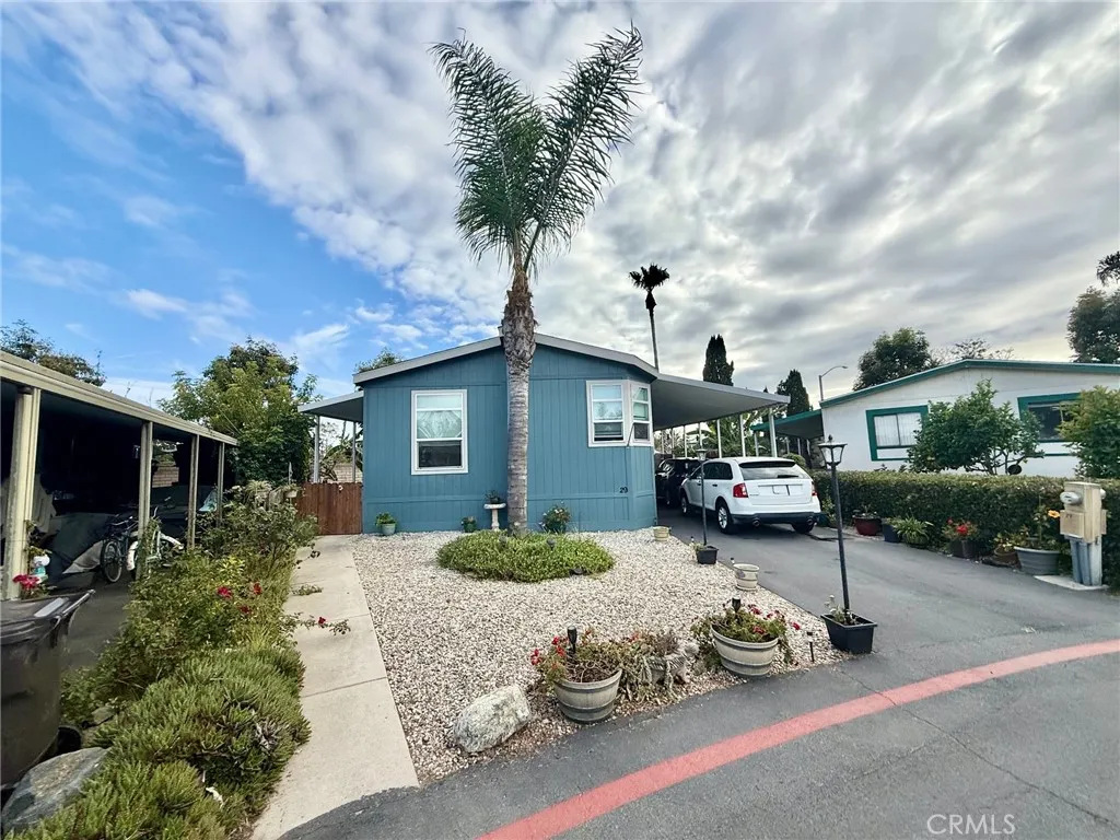 Welcome home to Ocean View Estates Space 29, a rare newer home with lots of outside space to enjoy the year-round beach breezes. 2023 custom ordered home includes high flat ceilings, recessed lighting, upgraded larger windows and accent windows, utility room with washer and dryer included. Kitchen includes all stainless steel appliances, large working island with USB charging and storage, white cabinets, and custom windows over the sink. Oversized space gives this home plenty of front and back yard, including patio furniture and firepit. Lots of room for gardening. Low maintenance front landscaping. Located next to Huntington Beach Sports Complex and across from The Equestrian Center, Disc Golf Course, Urban Forest, the Senior Center, and Central Park, this community is a local favorite place to call home.