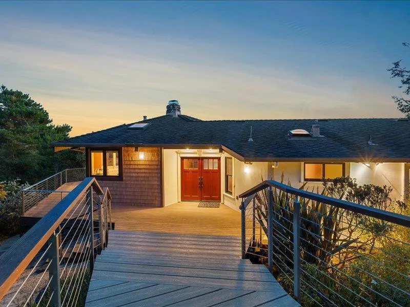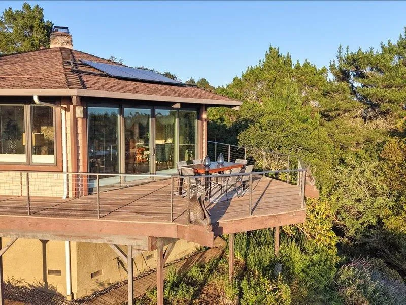 Enjoy sweeping unobstructed Monterey Bay views from this thoughtfully designed single-level home in a prime Aptos location. Vaulted open-beam ceilings and abundant natural light highlight the main living area, which flows seamlessly to a wraparound deck ideal for enjoying the coastal scenery. The flexible floor plan offers 3 bedrooms, 2 bathrooms, and a separate bonus space perfect for a home office or guest use. Each bedroom features direct deck access, enhancing indoor-outdoor living. Set on just over 2 acres, this property offers privacy and usable space. Additional features include a large 2-car garage, RV carport, raised garden beds and owned solar. Conveniently located within walking distance to Aptos Village with shopping, dining, and groceries, and just minutes to local beaches and ideally located just moments from the forest of Nisene Marks State Park , with easy access to miles of hiking and biking trails through majestic redwoods.