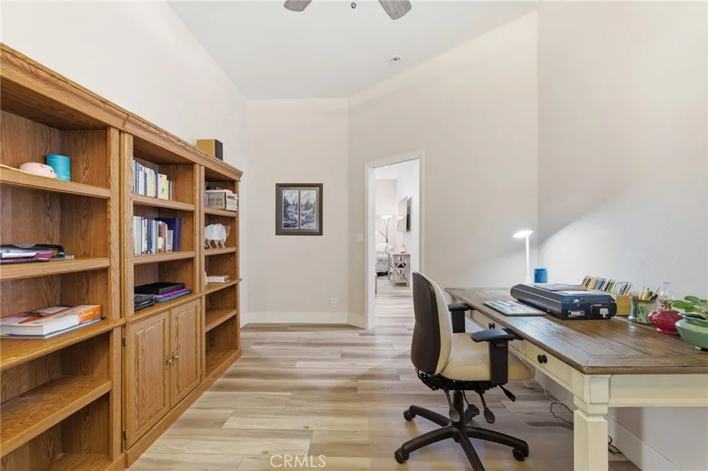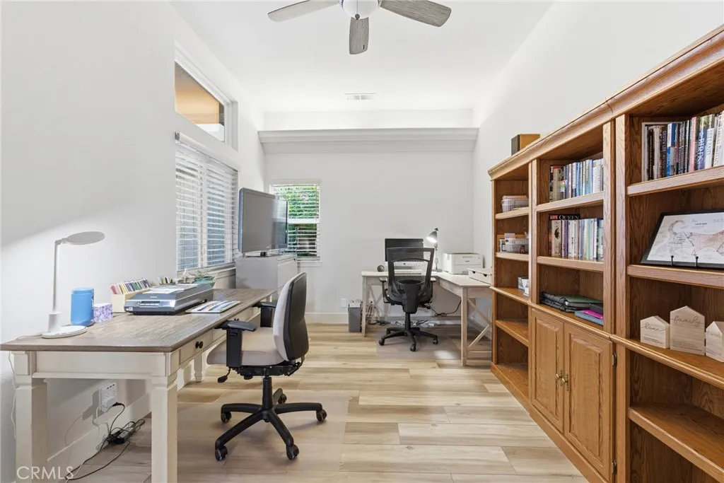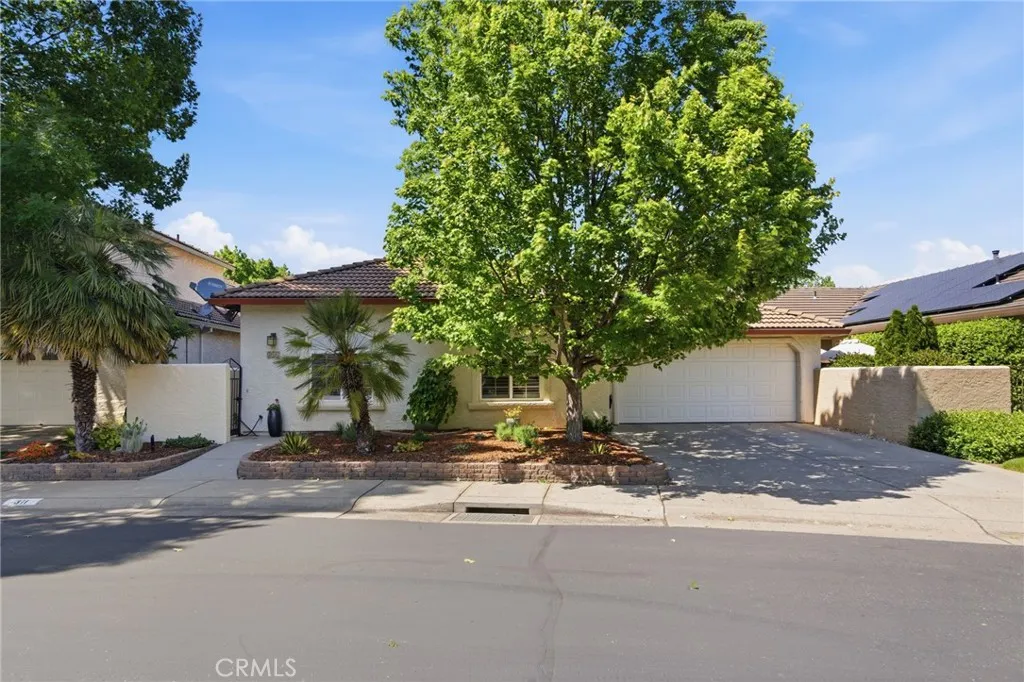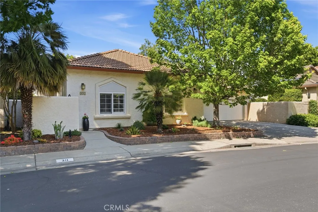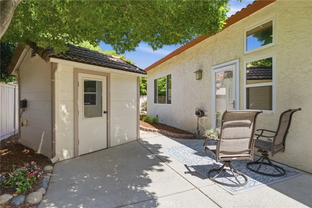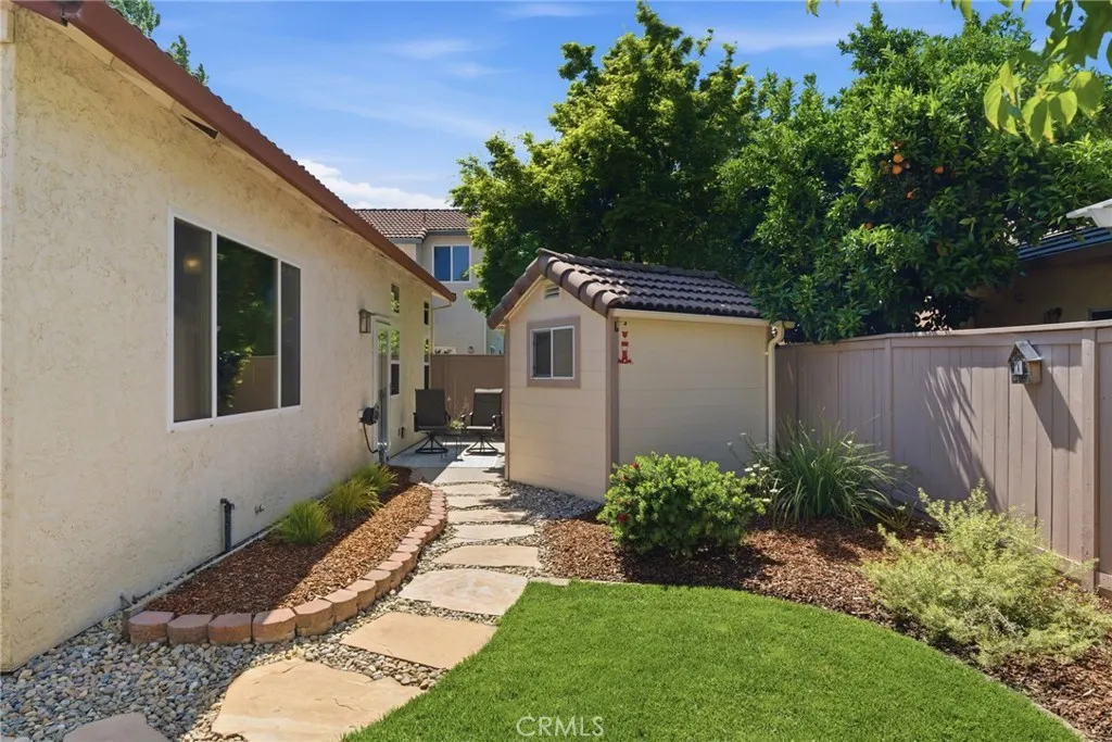 Have you been searching for a home that is clean, updated, light-filled, and designed for effortless living? This beautifully appointed Mediterranean residence is exactly what you’ve been waiting for. From the moment you arrive, the gated front courtyard sets the tone—featuring freshly refreshed landscaping with sculptural succulents and a serene, manicured garden filled with low-maintenance flowering plants. It’s a peaceful, welcoming space that invites you to pause and take it all in. Step through the gate and into the home, where a charming storm door opens to a stunning new front entry. Inside, the spacious great room immediately draws you in, filled with natural light and thoughtfully designed sightlines that lead your eye straight through to the covered back patio and lush outdoor living spaces beyond—creating a seamless indoor-outdoor lifestyle that’s both relaxing and refined. The thoughtfully designed floor plan offers a private primary suite set apart from the other bedrooms—creating a true retreat. Complete with its own french door to a secluded patio, it’s the perfect spot for morning coffee or unwinding in the evening. The spacious en-suite bathroom and generous walk-in closet add both comfort and functionality. In addition to three well-appointed bedrooms, the home features a large, versatile office—ideal for working from home, a creative studio, or a cozy den. Whether you need space for productivity or relaxation, this room easily adapts to your lifestyle. The current owners have made numerous valuable upgrades, including a tankless water heater, water softener, durable and stylish LVP flooring, and new Low-E sliding glass doors that enhance both energy efficiency and natural light. For added convenience, this exceptional home also includes a washer, dryer, and refrigerator—making it truly move-in ready. The backyard continues the home’s theme of tranquility and thoughtful design. Beautifully landscaped with peacefulness in mind, the stunning Japanese maple and carefully selected plantings provide soft color and natural beauty in a serene, understated setting—perfect for relaxing or entertaining. Additional highlights include a charming storage shed, custom-built to match the home’s architecture, as well as abundant cabinetry in the garage offering exceptional storage for tools, hobbies, and all your extras.