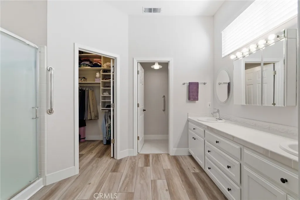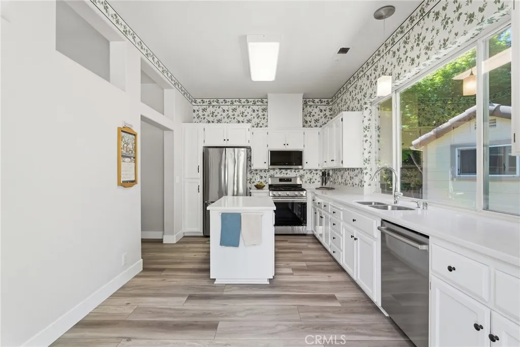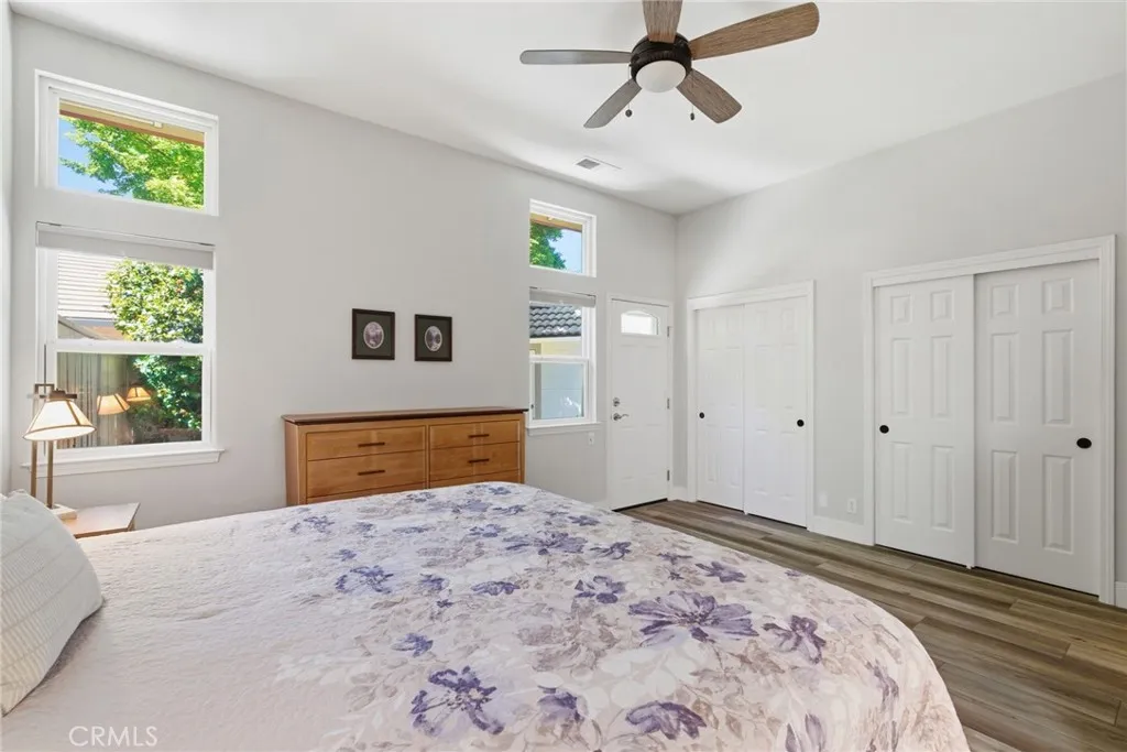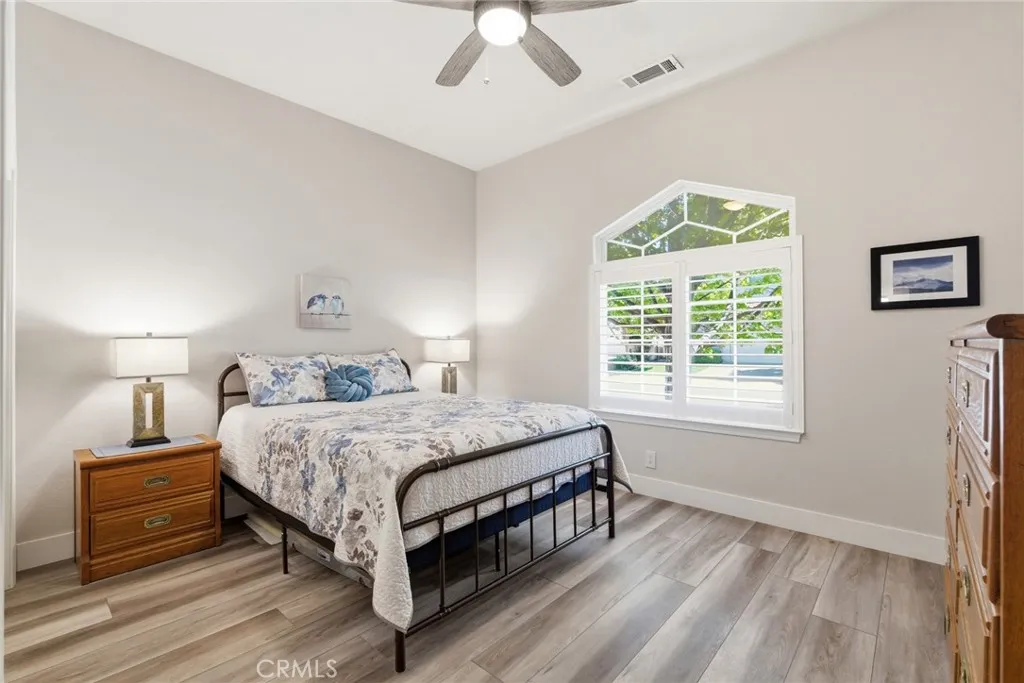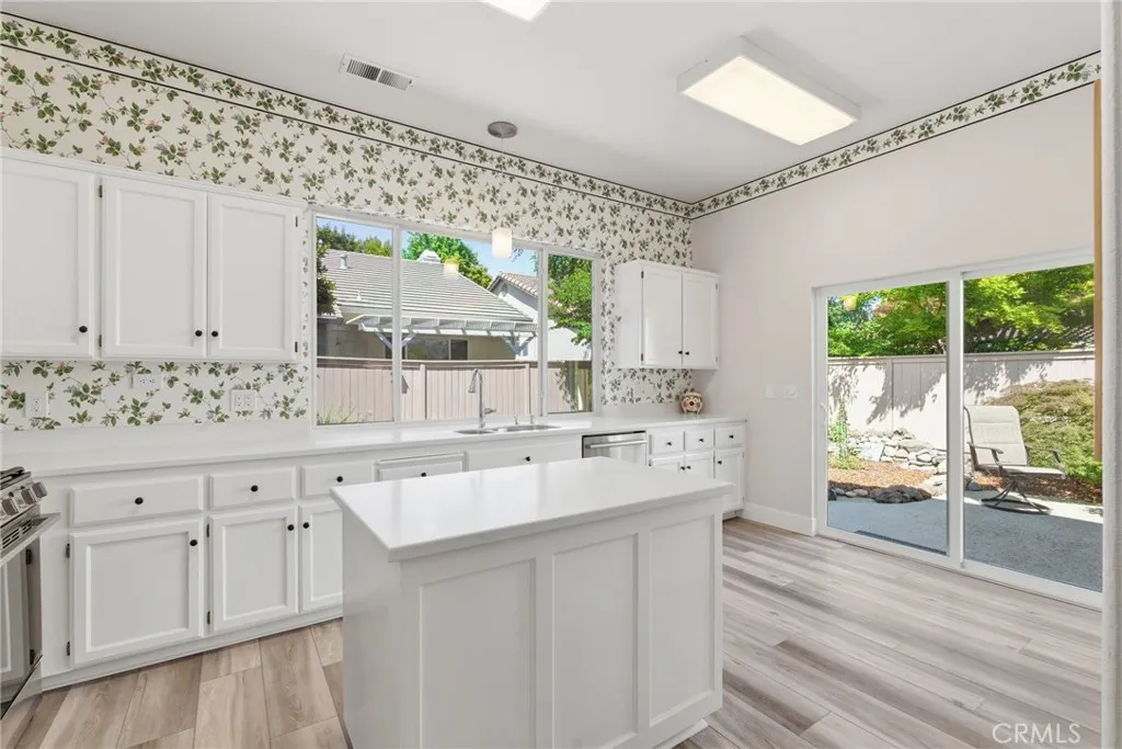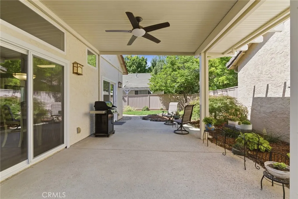 Have you been searching for a home that is clean, updated, light-filled, and designed for effortless living? This beautifully appointed Mediterranean residence is exactly what you’ve been waiting for. From the moment you arrive, the gated front courtyard sets the tone—featuring freshly refreshed landscaping with sculptural succulents and a serene, manicured garden filled with low-maintenance flowering plants. It’s a peaceful, welcoming space that invites you to pause and take it all in. Step through the gate and into the home, where a charming storm door opens to a stunning new front entry. Inside, the spacious great room immediately draws you in, filled with natural light and thoughtfully designed sightlines that lead your eye straight through to the covered back patio and lush outdoor living spaces beyond—creating a seamless indoor-outdoor lifestyle that’s both relaxing and refined. The thoughtfully designed floor plan offers a private primary suite set apart from the other bedrooms—creating a true retreat. Complete with its own french door to a secluded patio, it’s the perfect spot for morning coffee or unwinding in the evening. The spacious en-suite bathroom and generous walk-in closet add both comfort and functionality. In addition to three well-appointed bedrooms, the home features a large, versatile office—ideal for working from home, a creative studio, or a cozy den. Whether you need space for productivity or relaxation, this room easily adapts to your lifestyle. The current owners have made numerous valuable upgrades, including a tankless water heater, water softener, durable and stylish LVP flooring, and new Low-E sliding glass doors that enhance both energy efficiency and natural light. For added convenience, this exceptional home also includes a washer, dryer, and refrigerator—making it truly move-in ready. The backyard continues the home’s theme of tranquility and thoughtful design. Beautifully landscaped with peacefulness in mind, the stunning Japanese maple and carefully selected plantings provide soft color and natural beauty in a serene, understated setting—perfect for relaxing or entertaining. Additional highlights include a charming storage shed, custom-built to match the home’s architecture, as well as abundant cabinetry in the garage offering exceptional storage for tools, hobbies, and all your extras.