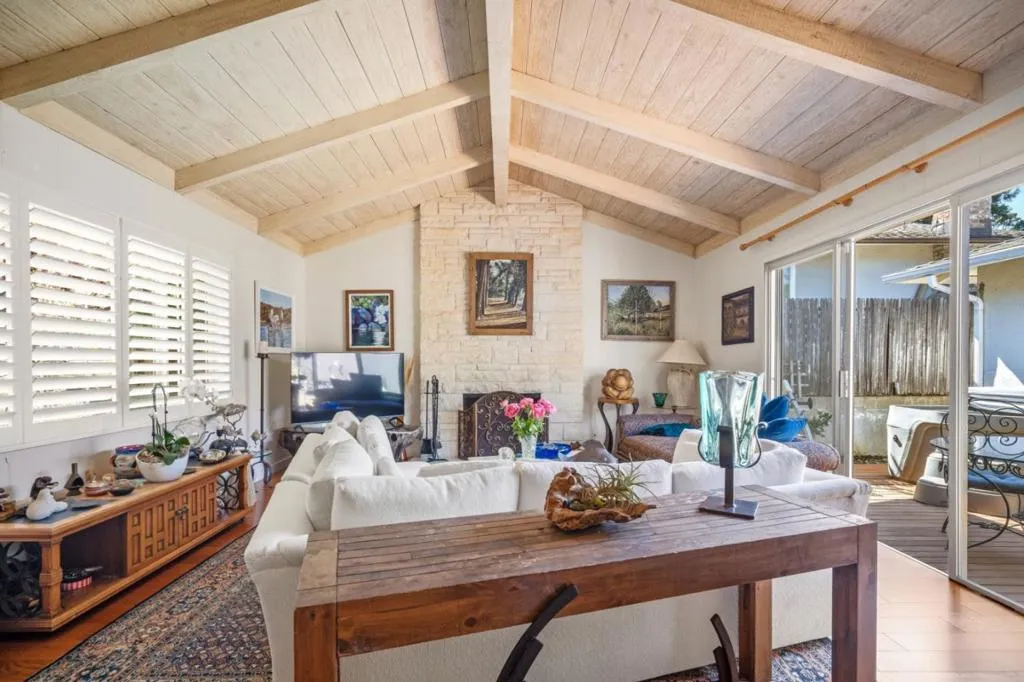 This bright and spacious single level ranch style 3 bed/ 2 bath GEM is set on a generous 8700 sq. ft. lot with a fully fenced back yard, lovely gardens, room for RV parking and plenty of entertaining! A bright and attractive front garden greets you and as you enter the home, the striking living room with gorgeous open high beam ceilings welcomes you in! Floor to ceiling wood burning fireplace, brand-new hardwood floors and patio doors to a private deck allows for indoor outdoor enjoyment. The sunlit hallway leads to a separate family room dining room combo with an additional fireplace and access to the large patio and more gardens. A wall of windows in the sunny family room is a favorite cozy place to enjoy & the upgraded kitchen has a nook with a garden window. Huge double garage allows for plenty of storage with direct access to the kitchen. Located in highly desirable sunbelt Mar Vista, close to shopping, dining, and recreation, dont miss out on this one!