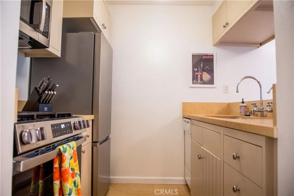 Welcome to The Courtyards, a stylish, Palm Springs–inspired studio right in the heart of West Hollywood. This bright, west-facing unit opens to a private balcony framed by mature trees and set above street level, giving you great light without sacrificing privacy. The open layout flows effortlessly from the updated kitchen, featuring sleek cabinetry and newer appliances, into the main living space, creating a clean and functional design that feels larger than expected. The remodeled bathroom offers a spacious shower and fresh, modern finishes, plus a generous walk-in closet just outside for optimal storage. The unit has been thoughtfully upgraded throughout with new light fixtures, appliances, hardware, temperature control system, paint, and air conditioning. HOA-approved for washer and dryer installation. The unit includes a designated wall opening already in place to allow for future hookup, a rare and valuable feature for a condo. The Courtyards offers beautifully landscaped grounds, a recently renovated pool and hot tub, gym, sauna, security patrol, club room, water, gas, central AC, and on-site management. You’ll also enjoy your own covered parking space with elevator access to residential floors. Live just steps from the best of West Hollywood: trendy cafes, top restaurants, boutiques, nightlife, and everything that makes this neighborhood the most desirable places to call home. Perfect as a primary residence or investment opportunity. Schedule your showing today before this unique opportunity at this price in all of West Hollywood is gone!