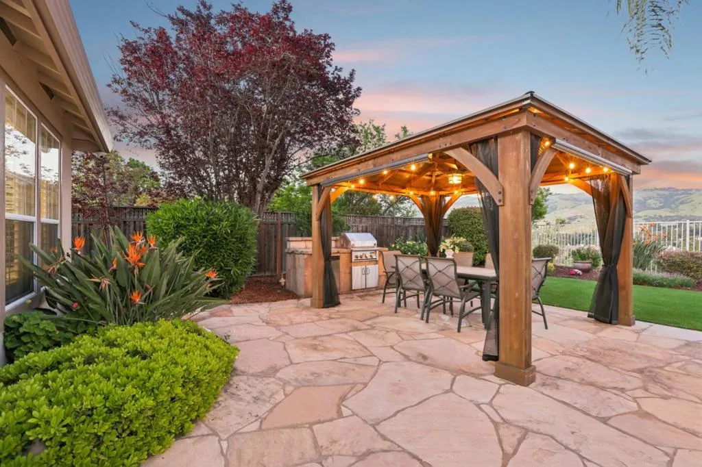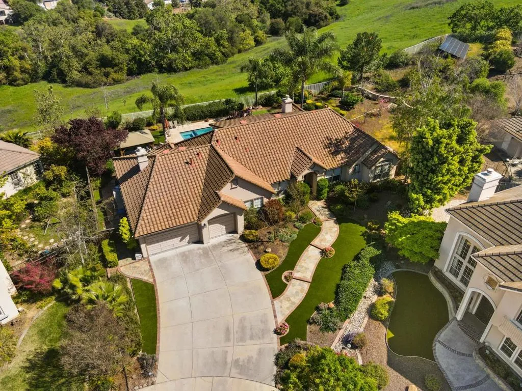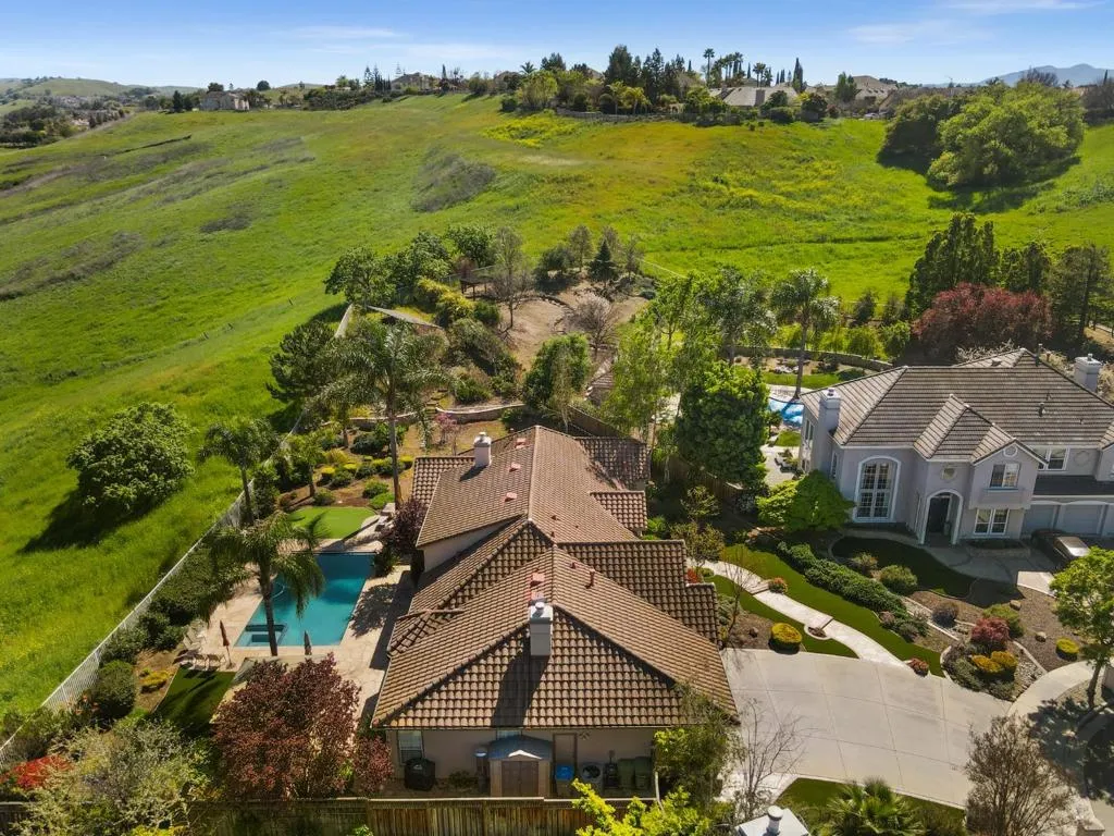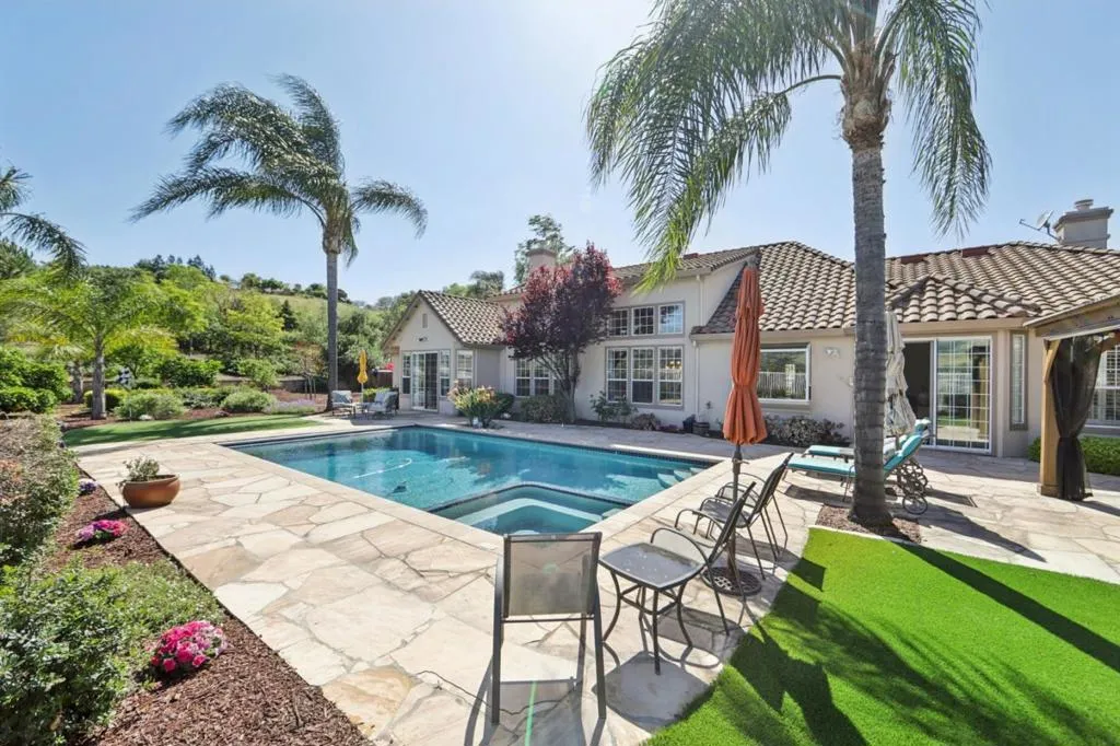 Presenting one of the finest lots in highly sought-after Hillstone Estates, this stunning single-level estate offers an exceptional blend of luxury, privacy, and breathtaking views. Situated on an expansive 1.38-acre cul-de-sac lot, featuring 5 beds and 3 baths across approximately 3,016 sq.ft. A grand double-door entry opens to a formal marble foyer. Soaring ceilings and expansive windows fill the home with natural light and frame surrounding views. The formal living room captures beautiful valley views with a wall of windows. The open-concept kitchen is a chef's dream with an oversized granite island, SS appliances, double ovens, and a spacious pantry. An inviting dining area flows into the family room with a cozy fireplace and built-ins create a warm gathering space. Sliding doors create seamless indoor-outdoor living, opening to a resort-style backyard with a pool, BBQ area, gazebo, fruit trees, and putting green, all set against spectacular views. The expansive grounds offer ADU potential, sports court, or further customization to suit your lifestyle. Additional highlights include owned solar, plantation shutters, a newer A/C, furnace, and water heater. Ideally located minutes from shopping, parks, and top-rated schools including James Franklin/Chaboya/Silver Creek High.