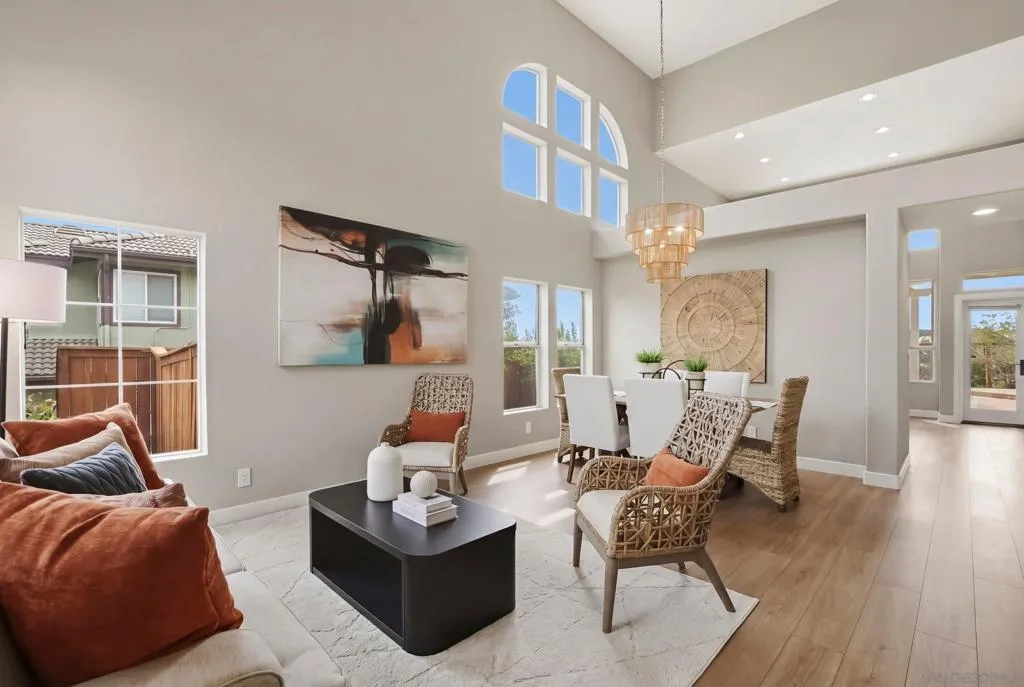 Some homes are addresses. This one is an experience. Perched above a Los Penasquitos Canyon finger, this stunning Park Village home offers something rare — no neighbors behind, just open canyon and unforgettable sunsets. Inside, extensively refreshed: new LVP flooring downstairs, new carpet up, fresh interior paint, painted cabinetry with modern hardware, and new light fixtures throughout. The soaring two-story entry, open kitchen, and family room flow effortlessly to a spectacular low water, low maintenance backyard with pergola. Privacy. Views. Turnkey. This is the one. Short walk to the Los Penasquitos Canyon Preserve, the creek and waterfalls! This home has been extensively refreshed: new Luxury Vinyl Plank flooring through the downstairs and all bathrooms. New carpet through upstairs. The entire interior recently painted along with all cabinetry. Modern cabinet hardware and light fixtures throughout. New stainless double oven. No one behind, sunset views, PUSD, No HOA or Mello Roos!