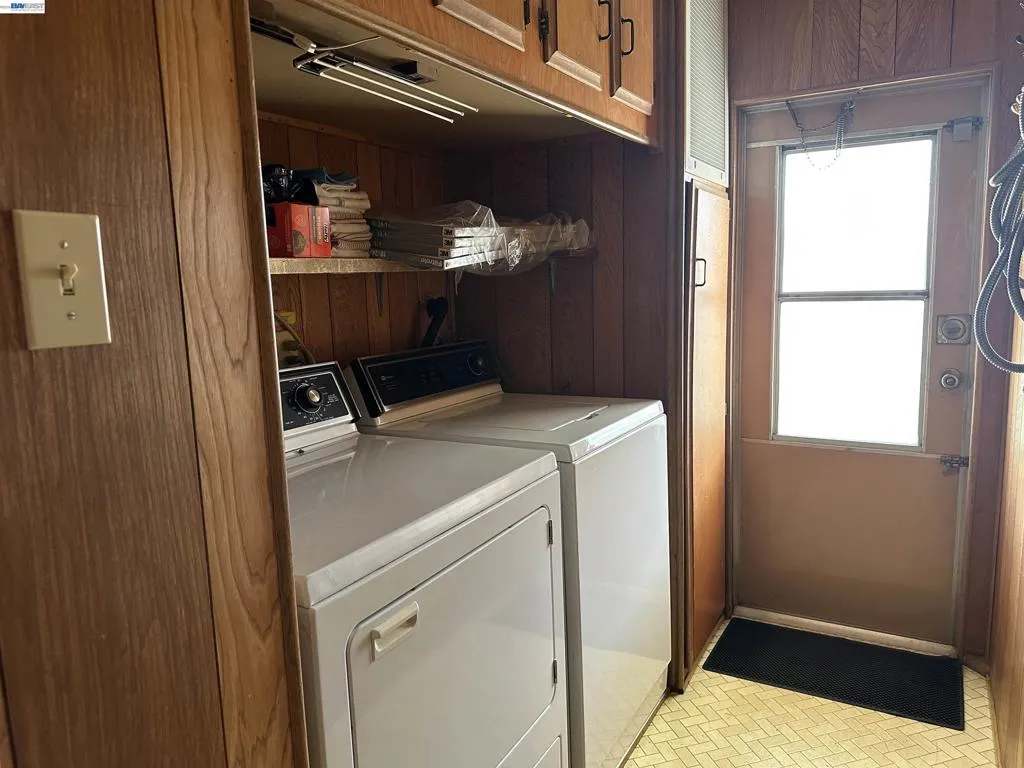 Discover this spacious 2-bedroom, 2-bathroom mobile home located in the peaceful Niles Canyon Mobile Estates senior community. This inviting home offers generous living spaces, including a formal dining room with a built-in display cabinet and a bright kitchen featuring modern appliances that are included with the sale. The separate laundry room provides abundant storage and comes complete with a washer and dryer. Additional features include dual-pane windows, central heating and air conditioning, and a comfortable family room with a built-in desk—perfect for a home office or hobby space. Enjoy relaxing on the large covered side porch while taking in beautiful hillside views. Outside, you'll also find a long covered carport and two storage sheds, providing plenty of room for parking and extra storage. The monthly space rent is $1,366. This includes water, sewer and basic cable tv. The park has many amenities for your enjoyment such as Clubhouse, sauna, tv area, car wash, spa, a pool that's heater all year round plus activities and more! Fireplaces: DEC