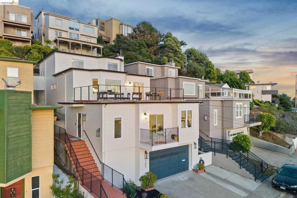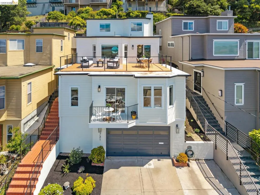 731 Gateview lives large at 2,548 sq ft! An Albany gem with a brand-new rooftop deck, delivering jaw-dropping panoramic views of San Francisco, the Bay, and both the Bay & Golden Gate Bridges! This rare, 4BD/2.5BA home offers space, light, and flexibility with generously sized rooms and a bright, inviting living area, perfect for everyday living and entertaining. Step outside to a refreshed, low-maintenance yard—or step out to the show-stopping rooftop deck, ideal for sunset dinners, weekend gatherings, or simply soaking in the incredible views. 2-car garage, abundant storage, and an unbeatable location just one block from Albany Hill hiking trails. Top-rated Albany schools and quick access to BART, SF, and the vibrant shops and restaurants of Solano Ave. There is plenty of opportunity for multi-generational space and a rare opportunity to live large with amazing views to match!