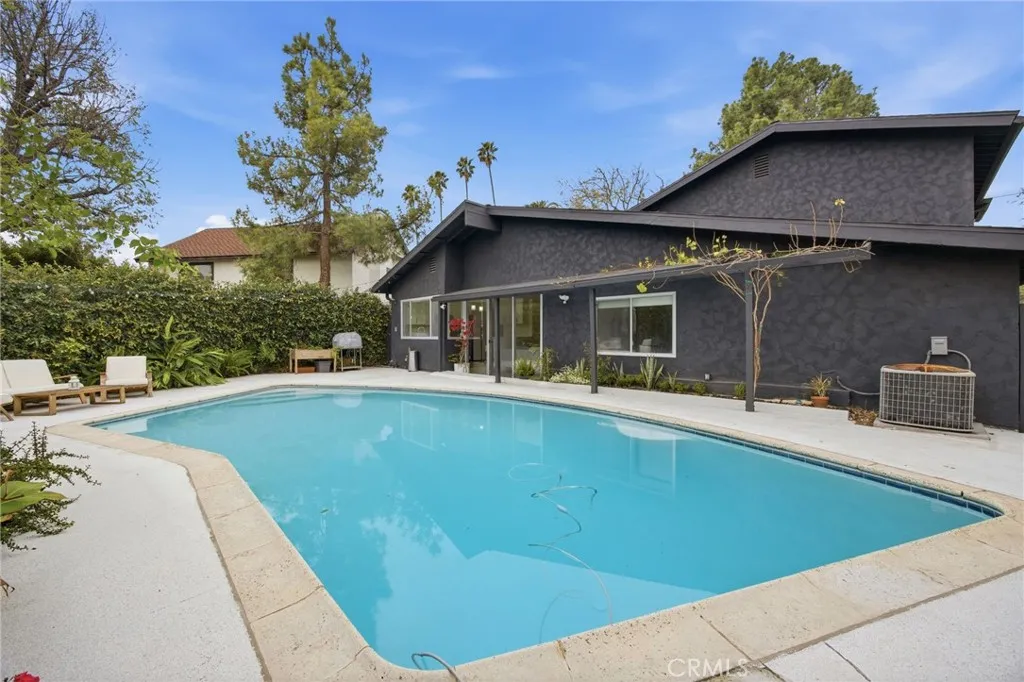 Welcome to 10414 Andora Ave in Chatsworth, a bright and well-maintained home offering approximately 1,903 sq ft of living space with 3 bedrooms and 2.5 bathrooms, thoughtfully designed for comfortable California living. The home features a functional layout with the primary bedroom conveniently located on the main level, providing ease of living and separation from the secondary bedrooms upstairs. This layout offers flexibility for privacy, guests, or a dedicated home office. The living room showcases soaring ceilings and a fireplace, creating an open and inviting atmosphere filled with natural light ideal for both everyday living and entertaining. Upstairs, two additional bedrooms share a well-appointed bathroom and provide versatility for a variety of needs. The home has been carefully maintained and is move-in ready, with practical updates that enhance both comfort and livability. The private backyard is designed for year-round enjoyment, featuring a recently resurfaced saltwater pool, mature fruit trees, and ample space for relaxing or hosting gatherings. A solar system adds energy efficiency and long-term savings, making the home both comfortable and cost-effective. Whether enjoying quiet mornings or entertaining guests, the outdoor setting offers a peaceful retreat. Conveniently located west of Topanga Canyon near parks, hiking and biking trails, shopping, dining, and with easy access to the 118 freeway.