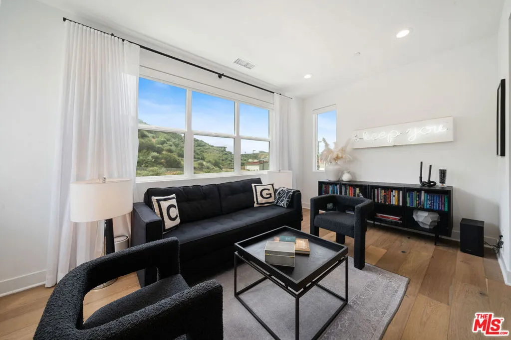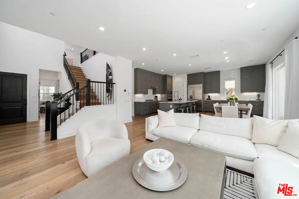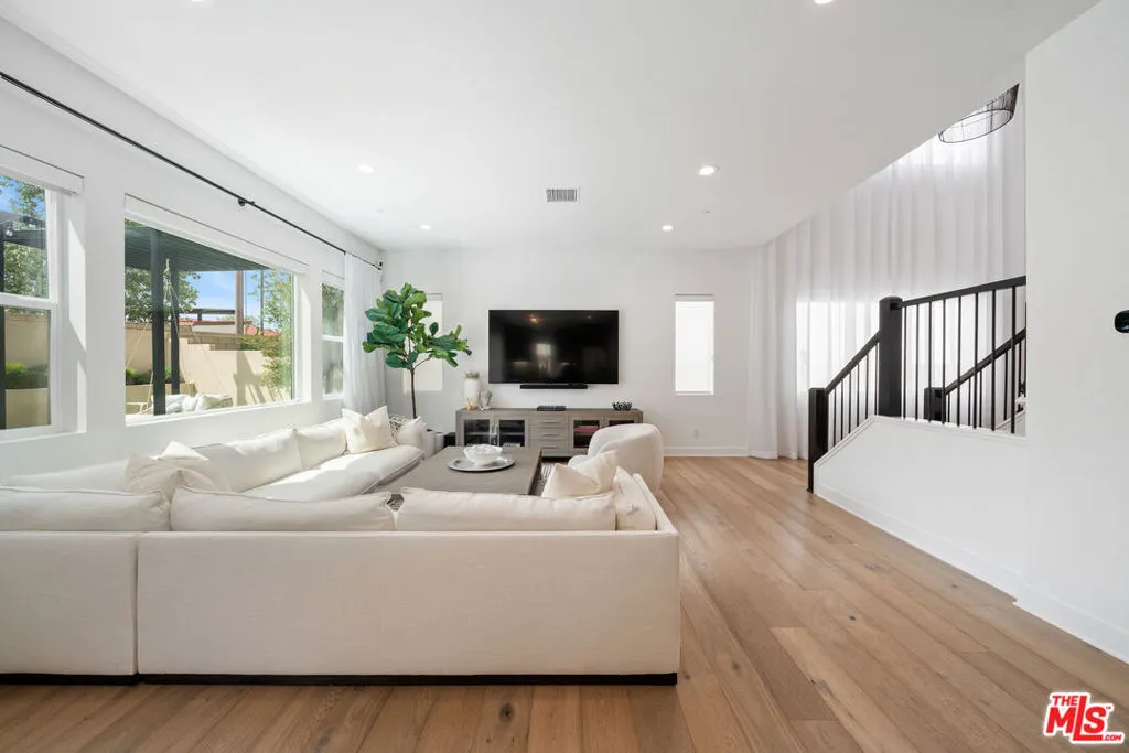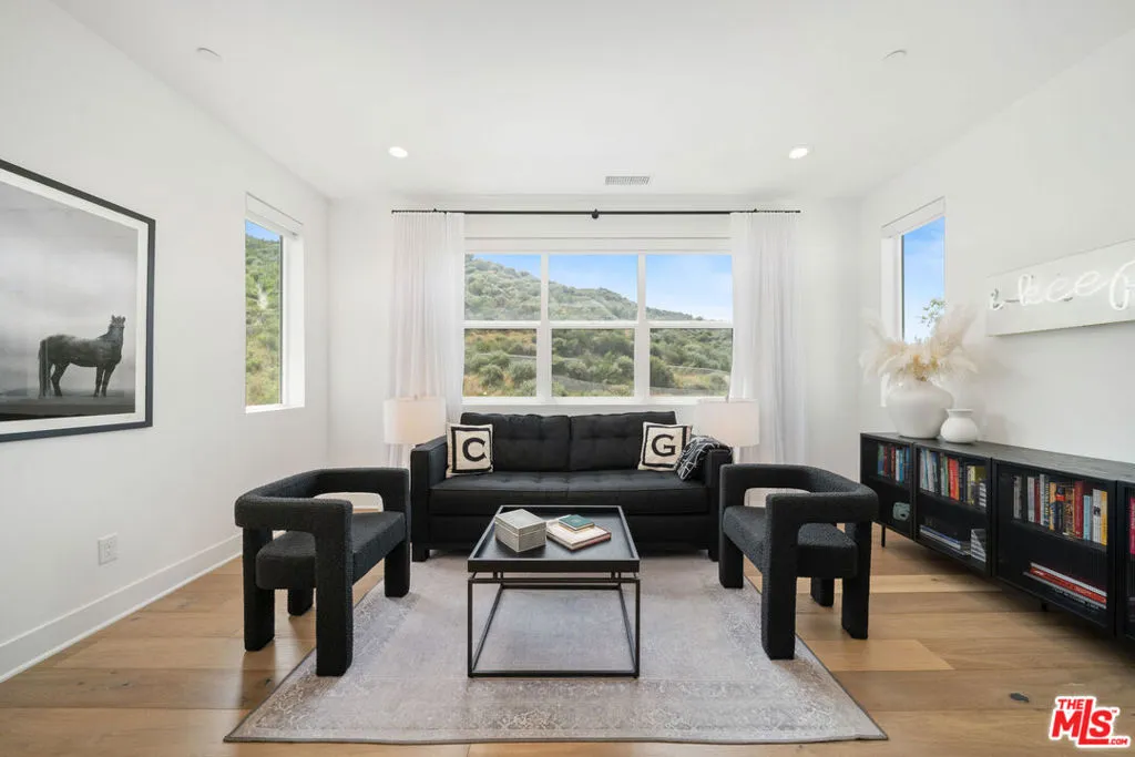 Welcome to this beautiful turnkey home, built in 2022 and located within the gated Plum Canyon community. Upgraded with premium materials and finishes throughout, it offers modern design, abundant natural light, and seamless indoor outdoor living. Upon entry, soaring ceilings, a statement staircase, and wide plank wood flooring create an immediate sense of space and style. The open concept layout connects the kitchen, dining, and living areas, anchored by an oversized island and clean, modern finishes. Large sliding glass doors open to a private backyard with a covered patio, lounge areas, and a peaceful hillside backdrop, creating an ideal setting for both everyday living and entertaining.Upstairs, the primary suite offers a spacious retreat with a spa style bathroom, dual vanities, and a custom walk in closet. Additional bedrooms are well sized, and the loft provides a versatile secondary living space. Residents enjoy resort style HOA amenities, including a pool, jacuzzi spa, cabanas, BBQ areas, outdoor showers, and a waterfall feature. Turnkey, thoughtfully designed, and ideally located near parks, schools, shopping, and commuter access. Buyer to verify all information including, but not limited to, square footage, lot size, permits, HOA, and all property features and conditions.