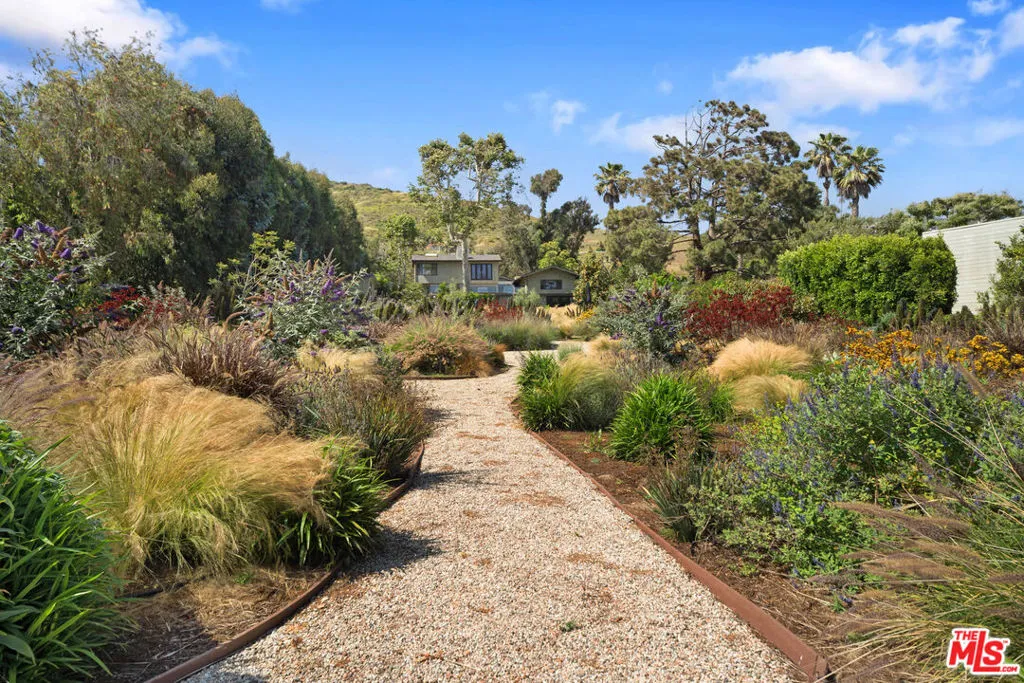 Set on a bluff above Broad Beach, this Balinese-inspired compound spans nearly one usable acre, offering sweeping ocean views, resort-style grounds, a pool and spa, detached guest house, and a true multi-structure layout. Tucked behind gates and mature hedging, the property unfolds as a private retreat. A custom Indonesian entry leads into a tranquil courtyard with a terraced lawn, flowing water feature, and reflection pool - setting a calm, grounded tone from the start. Inside, light-filled spaces feature bamboo floors, exposed beams, warm wood accents, and vaulted ceilings. The main living areas flow seamlessly into the dining and family room, all oriented toward the coastline. While the property is well-maintained and move-in ready, it offers an opportunity for thoughtful updates or personalization over time. The kitchen sits at the center of the home, featuring a large island, updated appliances, and direct access to a wide wood sundeck an ideal setting for gatherings both large and small. The entire upper level is dedicated to the primary suite, complete with a fireplace, ocean views, walk-in closet, and a spa-like bath with a steam shower and soaking tub positioned toward the horizon. On the main level, three guest bedrooms plus an office provide flexibility without compromising privacy. The grounds are idyllic, featuring a 60-foot heated pool and spa, fire pit, and meticulously landscaped gardens with mature fruit and citrus trees throughout. A detached one-bedroom, one-bath guest house with its own private deck sits apart from the main residence, while a separate media/game room and pool house includes a lounge, powder room, and recording studio. Additional features include smart home integration, DoorBird entry, a two-car garage, and ample driveway parking. Just moments from Broad Beach and Trancas Country Market, this is a rare opportunity to own a private compound with scale, views, and upside in Western Malibu.