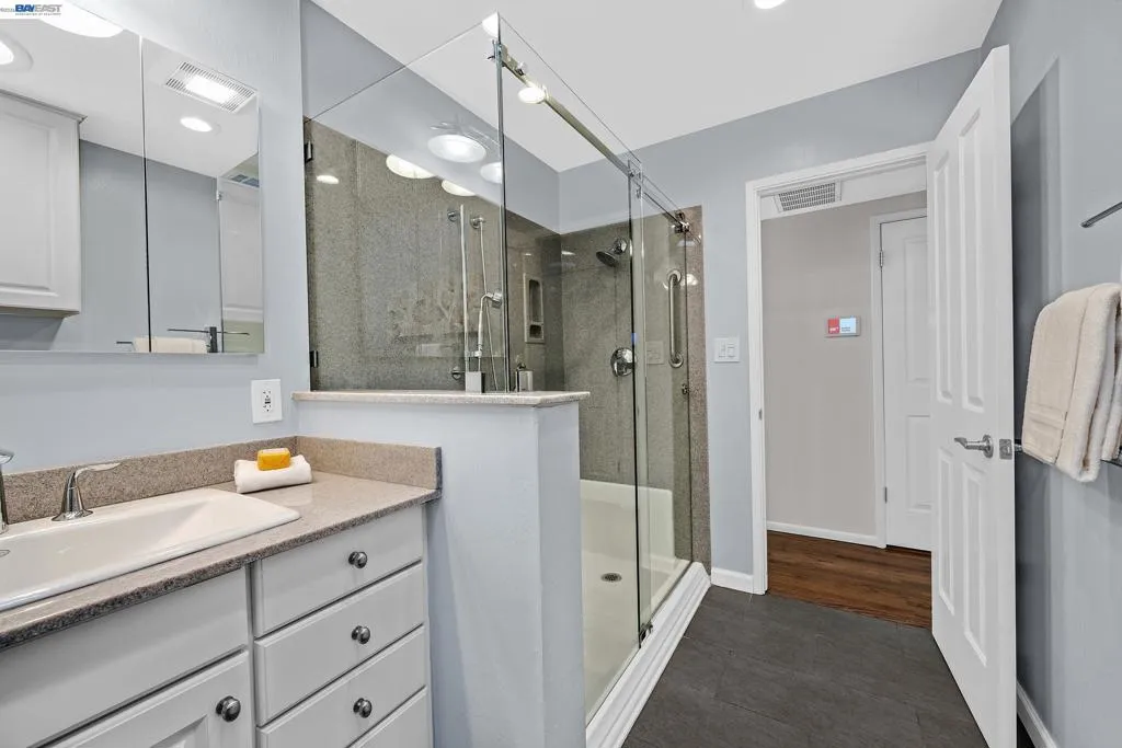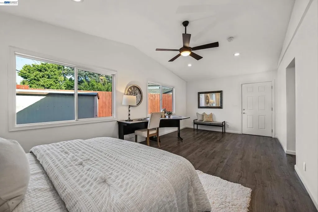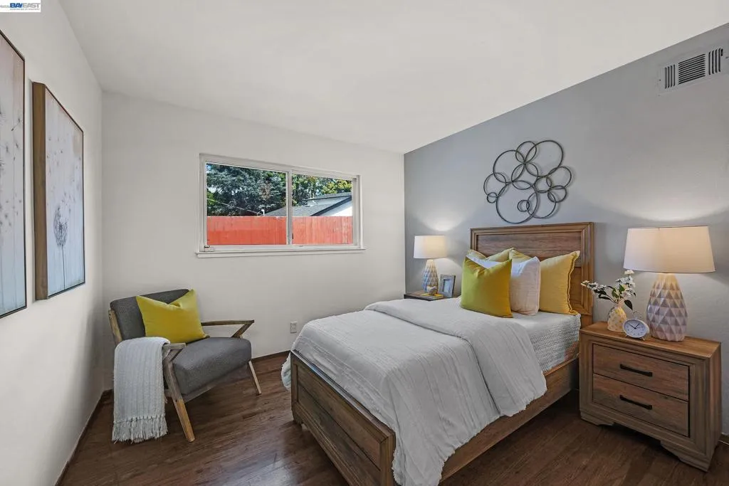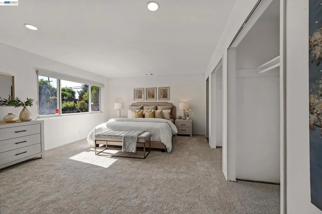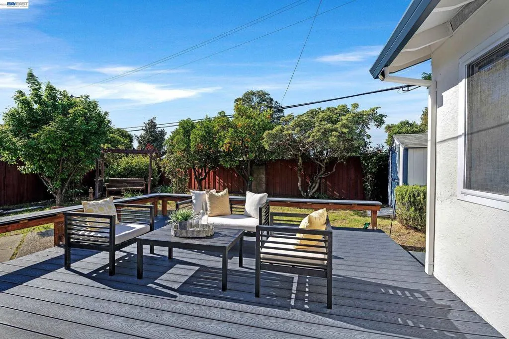 OPEN Sat April 18th 1:30-4:30 and Sun April 19th 1-4 pm Welcome to this wonderful expanded Southgate home on a quiet cul-de-sac. This 3 bedroom, 3 full bath single level home features a large family room with a fireplace and sky light. It leads to the pie shaped backyard with a beautiful trex deck for play or entertaining The primary suite has been extended and features a cedar-lined walk-in closet and a gorgeous newly remodeled bath. The enlarged back bedroom with vaulted ceilings and two walk in closets and its own bath, could be used as an au pair set up or an in-law/guest retreat. It has its own separate entrance and own trex deck and yard. A beautiful kitchen with garden window, top of the line cabinets and granite counters The home has been freshly painted inside and out and new carpeting. The large lot offers back yard side access, storage sheds and fruit trees. Lots of extra's including 4 sun tunnels, recessed lighting, hardwood floors and extra closet space. Centrally located near the San Mateo Bridge, Hwy 880 & 92, Southland Shopping and Chabot College. It's a beauty!