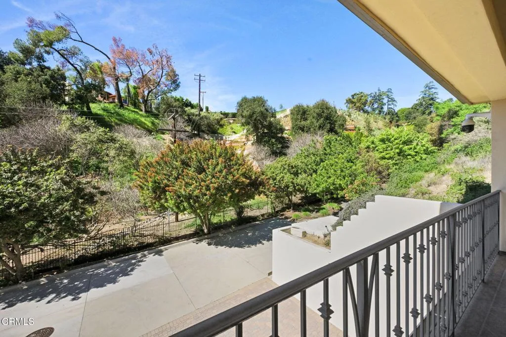 Hidden beyond private gates, positioned far from the street at the end of an exclusive drive, this 7-bedroom, 6-bath Pasadena estate offers an extraordinary level of privacy. Set on just under an acre in a serene, secluded enclave, the property delivers the feel of a private compound while remaining minutes from the city's most celebrated destinations.A dramatic approach unfolds with a sweeping staircase and custom wrought-iron framed entry doors, creating a grand yet understated arrival. Inside, approximately 6,160 square feet of refined living space is defined by soaring ceilings, expansive windows, and French doors that bathe the interiors in natural light.Designed for effortless indoor-outdoor living, disappearing glass doors dissolve the boundary between the great room and the expansive patio. The outdoor entertaining pavilion is fully enclosed and thoughtfully appointed with a built-in wolf grill, wine room, refrigerator, and powder room--ideal for hosting.The chef's kitchen is equipped with premium Wolf and Sub-Zero appliances and anchored by generous prep and gathering spaces suited for both intimate dinners and large-scale entertaining.The main level offers three bedrooms and two and a half baths, along with an oversized laundry room featuring dual washers and dryers. Upstairs, an additional family room with adjoining veranda is found. A long with a Primary retreat space retreat space, perfect for a private gym, studio, or executive office. Four additional bedrooms complete the upper level.The primary suite on the second floor is a sanctuary unto itself--featuring a separate retreat with fireplace, three walk-in closets, and a spa-inspired bath with soaking tub, frameless shower, and built-in bench.The expansive grounds offer a large, flat lawn with room for a future pool, ascending to an upper garden terrace with sweeping city views. A four-car garage and extensive additional parking accommodate guests discreetly.Fully integrated smart home technology provides state-of-the-art control of lighting, security, cameras, and sound systems--enhancing both convenience and peace of mind.Location is always key and this home is close to the Gerrish Swim / Tennis Club, Parks and Eaton Canyon golf course as well as easy access to a main transportation corridor.
