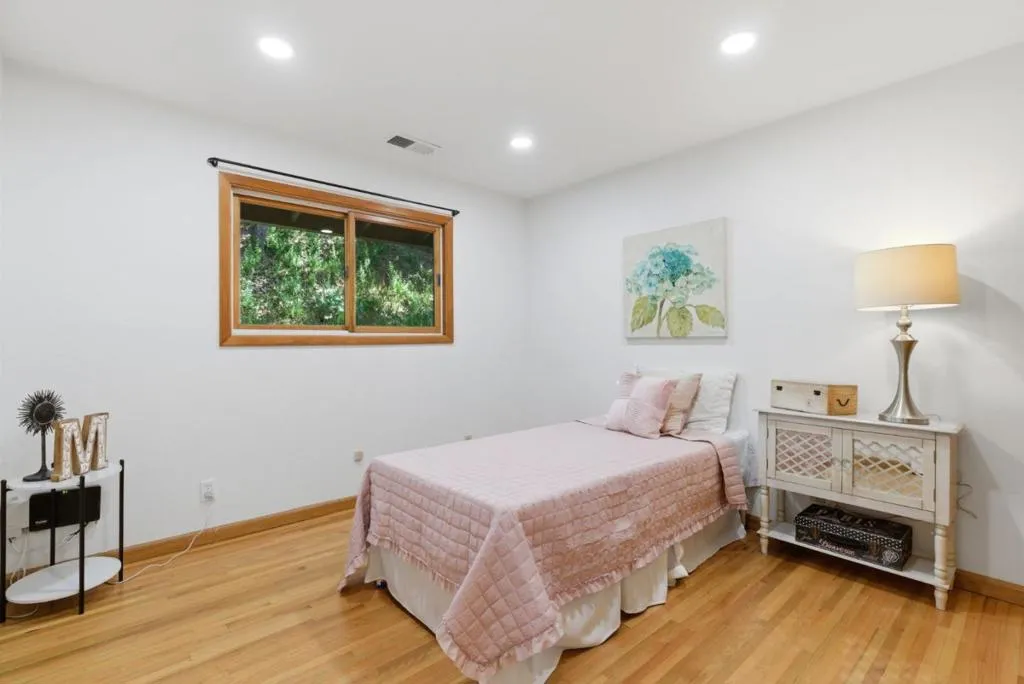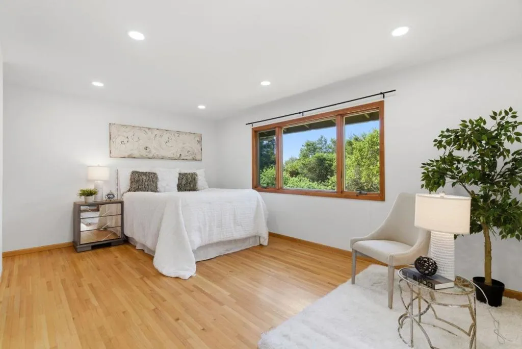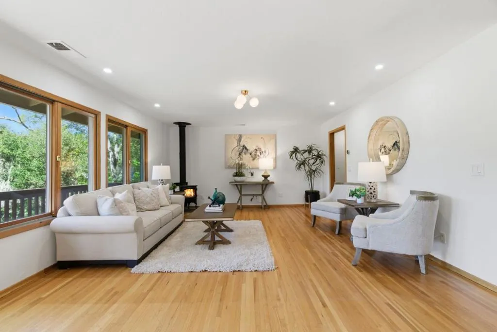 Serene Los Gatos Mountains Retreat with Top Rated Schools. Tucked among majestic oaks just 12 minutes from Downtown Los Gatos, this beautifully updated single-story home offers the perfect blend of nature and convenience. Set on a sunny, usable 2 acre lot with stunning nature views, this property includes a chicken coup, workshop and large storage shed. The sun-lit living room looks out to the spacious front deck. Massive open-concept kitchen with large center island, tons of counter and cabinet space, wine fridge, breakfast bar seating and separate dining area. Family room or office area with adjacent indoor laundry room. Spacious bedrooms including the primary suite with peaceful views, walk-in closet and remodeled bath with heated tile floor, dual vanity and large step-in shower. Remodeled hall bath with separate stall shower and soaking tub. Two bedrooms open to the tranquil back deck. This property includes its own well with a water purification system. Large circular driveway offers ample parking and gorgeous views of the Santa Cruz mountains over the property's iconic sandstone rocks. If you are looking for a beautiful natural setting with ample space and still maintain a neighborhood feel close to town, this is the perfect home for you!