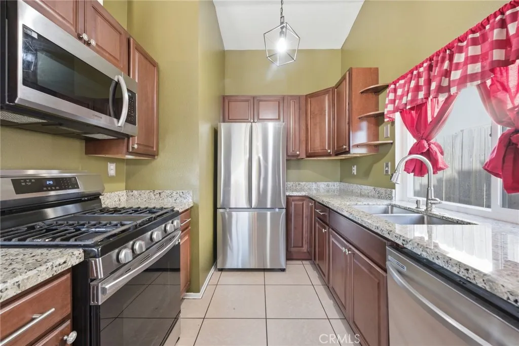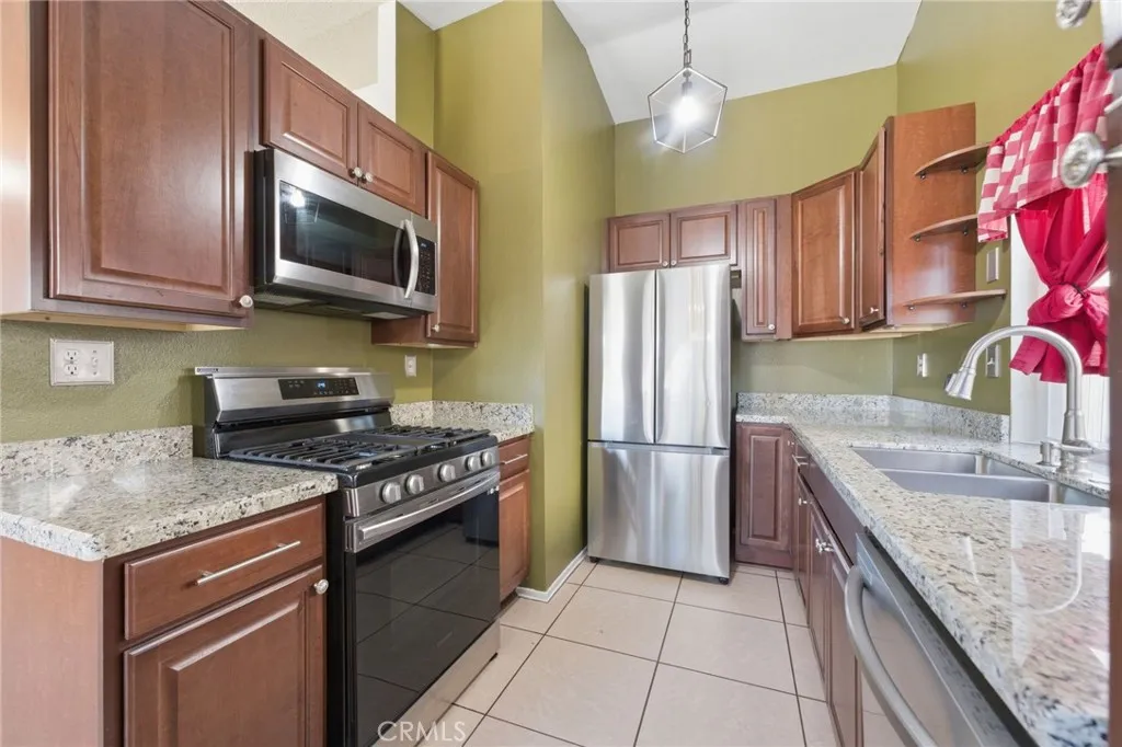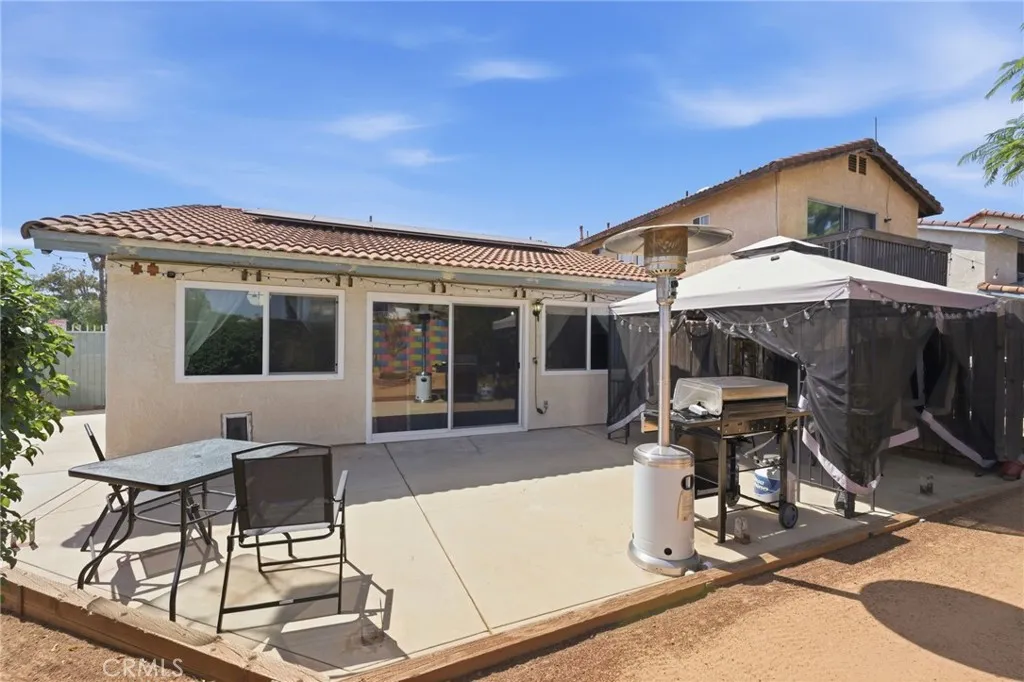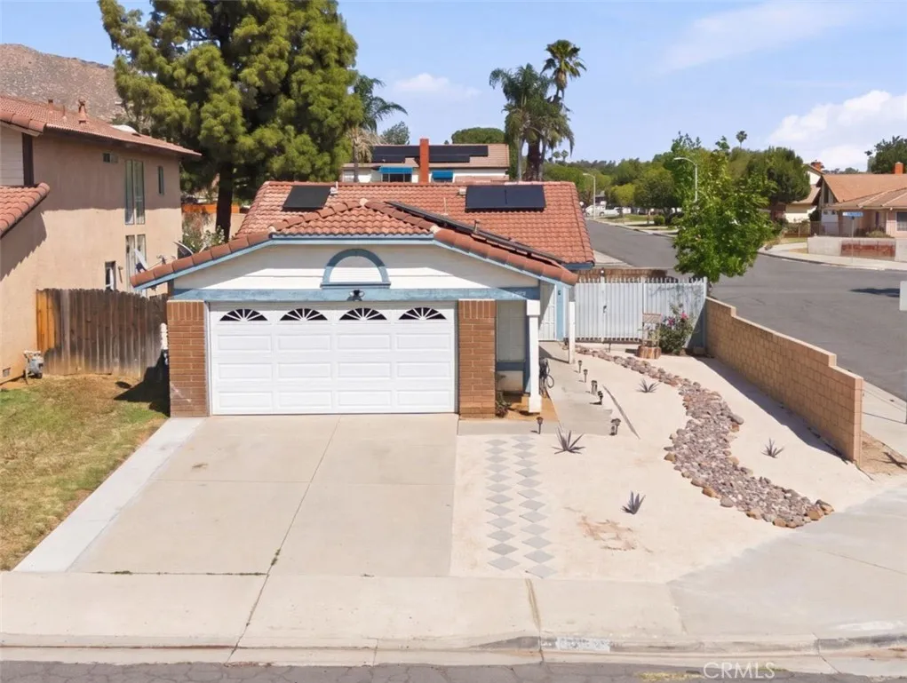 Welcome to 11206 Miners Trail in Moreno Valley — a charming single-story corner home offering comfort, efficiency, and an incredible opportunity for first-time buyers or those looking to downsize. Featuring 2 bedrooms and 1 bathroom, this home offers approximately 825 sq ft of living space on a 3,920 sq ft lot, with the added value of fully paid-off solar for long-term energy savings. As you step inside, you’re greeted by a bright and inviting living room filled with natural light, complemented by clean white walls and tile flooring that flows through the main living areas for durability and easy maintenance. The adjoining dining area creates a seamless transition into the kitchen, making everyday living and entertaining feel effortless. The kitchen has been thoughtfully updated with modern cabinetry and brand-new countertops, along with stainless steel appliances and a functional layout designed for both style and efficiency. Both bedrooms offer comfortable living spaces, including a primary bedroom with soft carpeting and a secondary bedroom with laminate wood-style flooring and abundant natural light. The home is further enhanced with updated light fixtures, adding a fresh, modern touch throughout. Step outside to a private, low-maintenance backyard featuring a mix of concrete and open space—perfect for outdoor seating or future customization. The yard is enclosed with a solid brick fence and wrought iron fencing, offering both durability and added privacy. The front yard has been beautifully upgraded with water-efficient, modern landscaping, boosting curb appeal while keeping maintenance low. Additional highlights include a full-size two-car garage and a desirable corner lot location, providing extra space and a sense of openness. Conveniently located near shopping, dining, parks, and schools, this home offers the perfect blend of value, style, and everyday functionality in Moreno Valley.