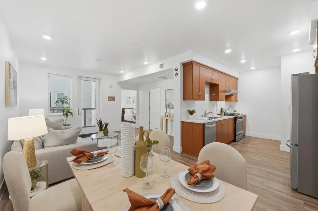 This stunning 2023-built townhome-style condo in Fremonts desirable Warm Springs neighborhood offers modern luxury and Mission Peak views. Spanning two levels, the bright open floor plan features high ceilings, upgraded carpets, and a gourmet kitchen with gorgeous quartzite countertops, a single-basin sink, and stainless steel appliances. The thoughtful layout includes a full bedroom and bathroom on the lower level, while the second floor offers two spacious bedrooms, each with a private en-suite bathroom. An indoor washer and dryer are conveniently located in the hall closet. A commuters dream, this home is within walking distance of the newly approved Irvington BART Station. Residents enjoy premium building amenities, including a stylish lobby lounge, fitness room, secure storage lockers, and bike storage,. The sale includes two designated spaces in a secure gated parking garage. Perfectly situated near top-rated schools like Grimmer Elementary and Irvington High, this home offers both comfort and convenience with close proximity to grocery stores and to I880 highway. Don't miss this prime Silicon Valley opportunity! Buyers to verify schools.