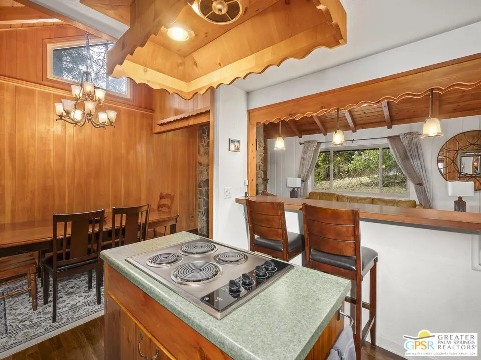 INVESTMENT OPPORTUNITY ON THE CREEK! Properties like this are exceptionally rare in Idyllwild - a single family residence thoughtfully configured as two fully independent cabins, each with its own electrical meter and attached garage, situated on 0.32 acres in the heart of one of the mountain's most desirable locations. Built in 1961 and zoned R-3A (Village Tourist Residential), the property sits on Strawberry Creek with 2095 square feet total. Inside, both cabins have the mountain character you'd hope for: knotty pine interiors, vaulted ceilings, and full rock fireplaces. Each kitchen features an island with a built-in range, a breakfast bar, and a separate dining area. Cabin "A" offers 2 bedrooms, a full bath, an ensuite half bath, laundry hookups in the attached garage, and a private deck with direct access to Strawberry Creek. Cabin "B" has 2 bedrooms, 1 full bath, and its own private deck. The setting does the rest. A newly developed trail runs along Strawberry Creek right behind the property and walks you into the heart of town in minutes. Mature lilacs and landscaping out front. Quiet private street. Park and community center next door. Live in one cabin and rent the other long-term, or open both into a four-bedroom mountain retreat. Either way, a property this well-configured and this well-located on Strawberry Creek doesn't come up twice in Idyllwild.