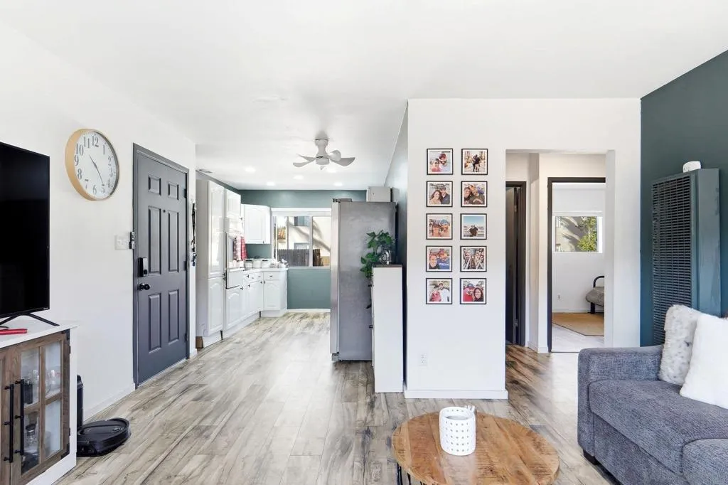 Beautifully upgraded two bedroom condo with newer kitchen, floors, paint, tile and tile. Property features light and bright kitchen with stainless steel appliances, spacious bedrooms, and a large living room. Property is privately located in the complex. The community features lots of green space, a sparkling pool and community laundry facility. Unit has an assigned carport. Conveniently located blocks from shopping and food with ease of access to freeway 52 & 67.