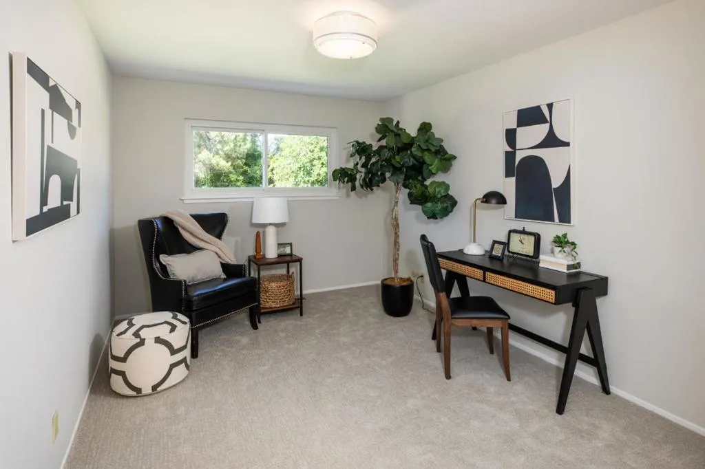 This lovingly cared-for single-level ranch-style home is set among beautifully manicured grounds just blocks from the Village of Los Altos with its delightful restaurants and shops. Thoughtfully refreshed with new carpeting and freshly painted interiors, classic hardwood floors enhance the main living spaces, while stylish new light fixtures create a warm inviting ambiance. The living room flows effortlessly into the dining area, providing a seamless setting for both everyday living and entertaining. The family room provides an inviting secondary space for entertaining, featuring a cozy fireplace framed by a wall of built-in bookshelves, an enclosed wet bar, and sliding doors to the backyard. The primary suite offers an updated vanity, walk-in closet, and sliding doors to the backyard. Featuring a raised deck, manicured, yet lush yard including artificial grass and a charming work-room shed with window planter boxes, the backyard embraces possibilities. This exceptional location is close to major commute routes and sought-after Los Altos schools.