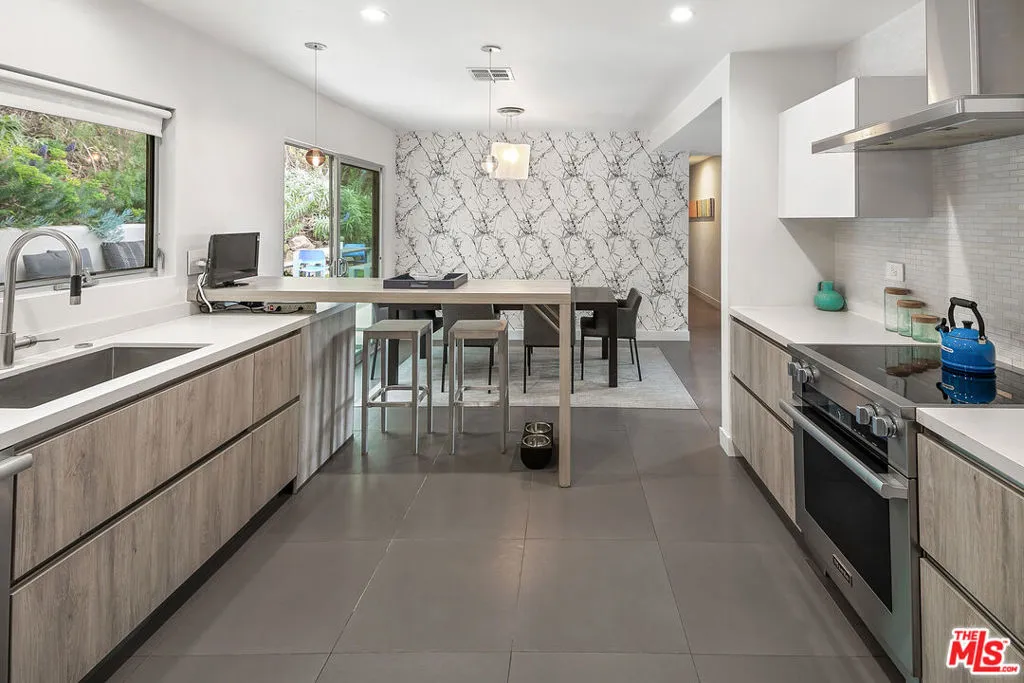 Newly remodeled and exceptionally private residence in the hills of Sherman Oaks, offering a contemporary, open layout and lush backyard retreat. A true entertainer's home, featuring multiple fireplaces (indoor and outdoor), a hot tub, and built-in outdoor fire pit seating. The front of the home is fully enclosed with thoughtful, custom landscaping and includes a garage and a private entry option. Inside, the living room is filled with natural light, while the primary suite offers a modern en-suite bathroom featuring a steam shower. Two additional guest bedrooms provide flexibility for family, guests, or office use. The custom kitchen is a standout, designed with high-end finishes and premium Miele appliances, including a range, steam oven, and dishwasher. The home also includes a refrigerator/freezer and a newly purchased washer and dryer. Outdoors, the property is a true oasis with multiple entertainment areas, a long side yard, and a garden space, offering both privacy and versatility. Located in the desirable Roscomare Road School District, just moments from the Beverly Glen Center with easy access to curated shopping and dining. Conveniently positioned near Beverly Hills and Ventura Blvd's shops, restaurants, and nightlife. Available ASAP. Long term leases only.