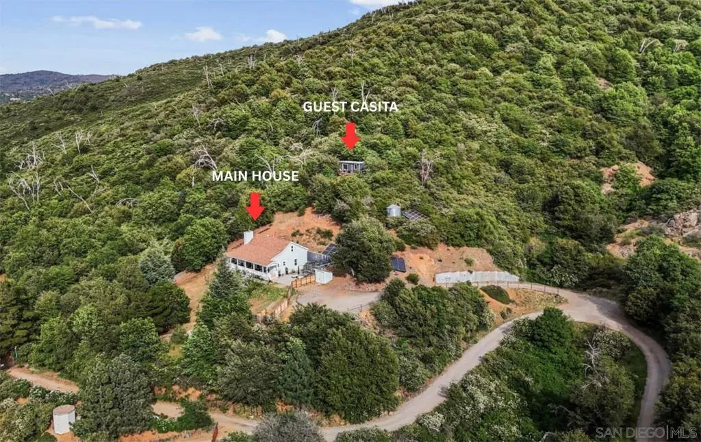 2-Bed | 1 1/2-Bath + Guest Casita | Nearly Off-Grid | Julian, CA One of the most unique properties to hit the Julian market — 5058 Acorn Patch Road offers rare energy independence, breathtaking westerly and Volcan Mountain views, and an assumable FHA mortgage. Assuming this loan could save a qualified buyer hundreds per month compared to today's market rates. Tucked at the end of a mile-long private dirt road within the gated community of Cuyamaca Woods — with no HOA or POA fees — this home features 2 bedrooms, 1 1/2 bathrooms, and a versatile loft perfect as a home office or optional 3rd bedroom. Nearly off-grid, this property sits on 3.89 acres and features Owned solar — no lease, no payment, Whole-house propane backup generator, Private septic — no municipal fees, Water connected and a garden area. The front yard is fully fenced for all your animals and features, Fig, Apple, Plum and Peach trees. And then there's the bonus that makes this property truly exceptional: a detached guest casita featuring a studio bedroom, full bathroom, and a private deck with views. Whether you're hosting family and friends, generating income as a short-term vacation rental, or securing a long-term tenant to offset your mortgage, the casita opens up possibilities that most backcountry properties simply can't offer. Whether you're seeking freedom from utility bills, resilience against outages, or simply a more sustainable way of life, this property delivers.