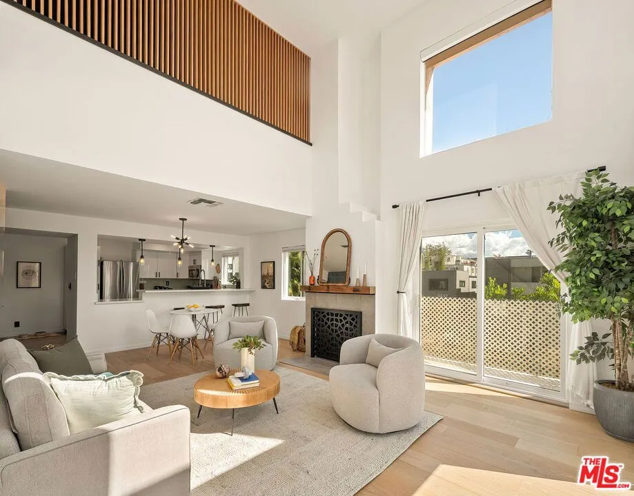 This sophisticated tri-level townhome offers the perfect blend of light, space, and modern design in a prime Culver City-adjacent location. Situated in a charming, gated six-unit building with low HOA dues, this front-facing residence shares only one wall and is filled with natural light throughout. Thoughtfully updated and completely turnkey, the home features soaring cathedral ceilings, expansive windows, rich wood flooring, and designer finishes that create a warm yet elevated aesthetic. The open-concept main level is ideal for both everyday living and entertaining, with a spacious living room, fireplace, dining area, and seamless access to multiple balconies - perfect for embracing an indoor-outdoor lifestyle. The updated kitchen is both functional and stylish, offering ample cabinetry and stainless steel appliances. On the entry level, two generously sized bedrooms each feature en-suite bathrooms and private balconies, providing comfort and privacy. The top level showcases a versatile enclosed loft - ideal as a third bedroom, office, or creative space - which opens to an enormous private patio that lives like an outdoor living room. With multiple balconies and expansive outdoor spaces throughout, this home offers a rare opportunity to enjoy both openness and privacy in one of the Westside's most convenient locations, just moments from Downtown Culver City's shops, restaurants, and vibrant energy.