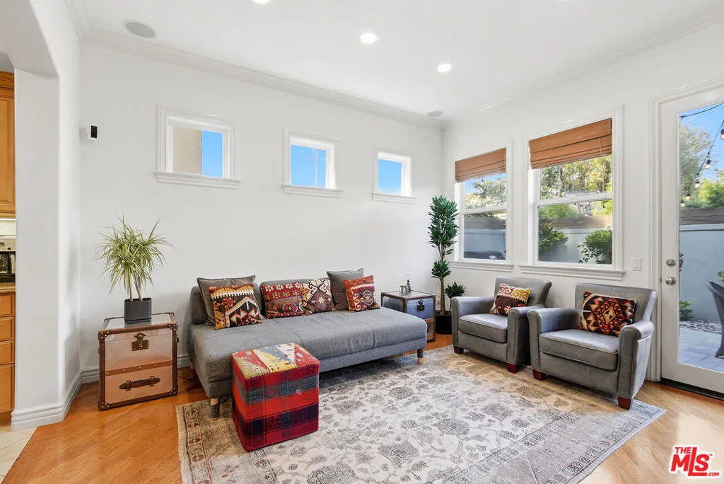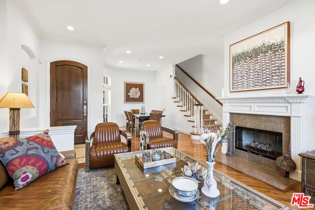 A rare opportunity to own this elegant and beautifully designed two-story home located in the heart of West LA's highly sought-after Sawtelle neighborhood. Privately set behind a gated courtyard with a tranquil fountain, this light-filled 3-bedroom, 3.5-bath home with a dedicated office offers an exceptional floor plan, timeless design, and effortless indoor-outdoor living. Step inside to soaring ceilings, rich wood flooring, and an inviting living room anchored by a charming fireplace. The space flows seamlessly into the dining area and an expansive family room with custom built-ins both opening through glass doors to a serene, recently upgraded backyard. Surrounded by lush landscaping, this private outdoor retreat is ideal for entertaining or unwinding in a peaceful setting. At the heart of the home, the oversized chef's kitchen is thoughtfully designed for both everyday living and hosting, featuring premium Viking appliances including a 6-burner range, granite countertops, a custom tile backsplash, extensive cabinetry, generous counter space, and a large center island perfect for gathering or casual dining. Upstairs, the luxurious primary suite serves as a true sanctuary, showcasing vaulted ceilings, a cozy fireplace, a spacious private balcony, and an oversized walk-in closet. The spa-inspired en-suite bathroom is complete with a dual-sink vanity, soaking tub, large walk-in shower, and separate water closet. Two additional well-appointed bedroom suites, each with their own private bathrooms, provide comfort and privacy, while a versatile office space with custom built-ins offers flexible living options. Additional highlights include a stylish powder room, dedicated laundry room, crown molding, abundant natural light throughout, central heating and air, and a direct-access two-car garage equipped with built-in storage and an EV charger. Located in a gated community ideal for safety, while still offering very low HOA fees and no common/shared walls! Ideally located on a charming tree-lined street just moments from Sawtelle Japantown, Santa Monica, and Westwood Village, this exceptional home offers the perfect blend of comfort, convenience, and elevated West LA living.