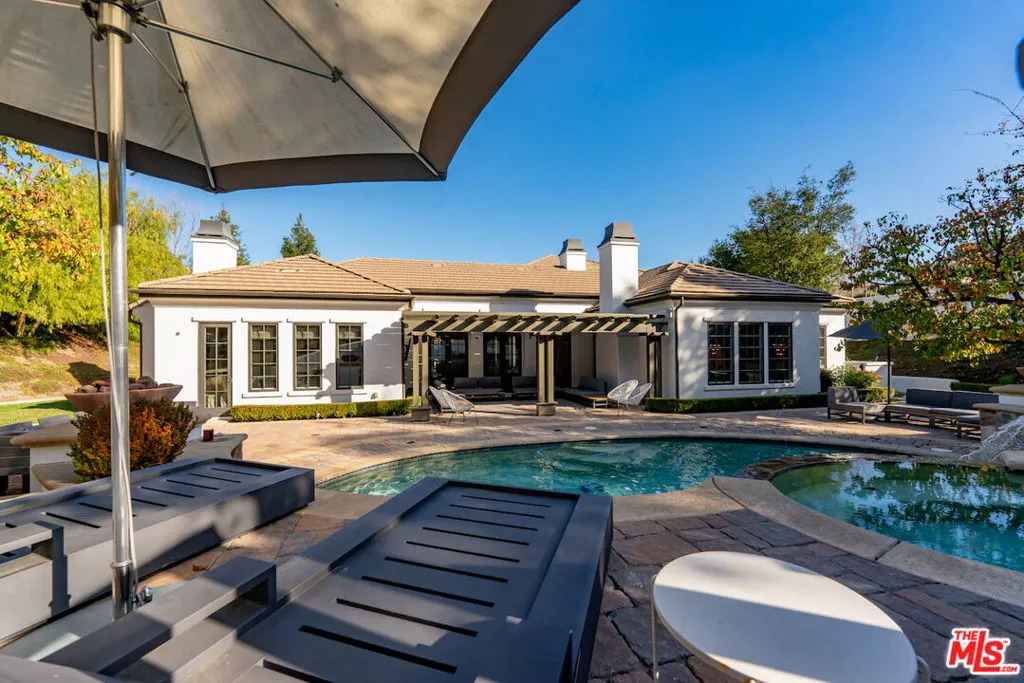 Nestled within the exclusive gated community of The Oaks, this Calabasas residence epitomizes luxury living with a touch of family-friendly charm. Boasting an enviable single-level layout, the home is crowned with a bonus second level, featuring a full ensuite bedroom and a second-floor living room, a rare find in this sought-after neighborhood. Step into the heart of the home, where a stylishly remodeled kitchen awaits, showcasing beautiful stone top counters and an exquisite backsplash that seamlessly marries form and function. The large great room, designed for formal entertaining and dining, effortlessly flows into an expansive backyard, ensuring a perfect blend of indoor and outdoor living. Privacy abounds in the generously sized covered patio, making it an ideal space for relaxation and al fresco gatherings.But most note worthy lies in the backyard oasis. Here, a beautiful pool takes center stage, complete with an elevated spa and a thrilling pool slide perfect for creating endless summer memories under the starlit Calabasas sky. The meticulously landscaped surroundings transform this outdoor haven into a private retreat.The primary bedroom suite, strategically located on the first level, exudes chic designer elegance. The accompanying spa bath has been thoughtfully reimagined with modern finishes, creating a sanctuary of comfort and sophistication. Situated on a desirable corner lot, this residence stands out as a hard-to-find model, offering both opulence and functionality.Embrace the epitome of luxurious living in Calabasas, where this home seamlessly combines sophistication with family-friendly features, making it a truly exceptional residence. Don't miss the chance to call this rare gem, complete with its captivating backyard oasis, your own.