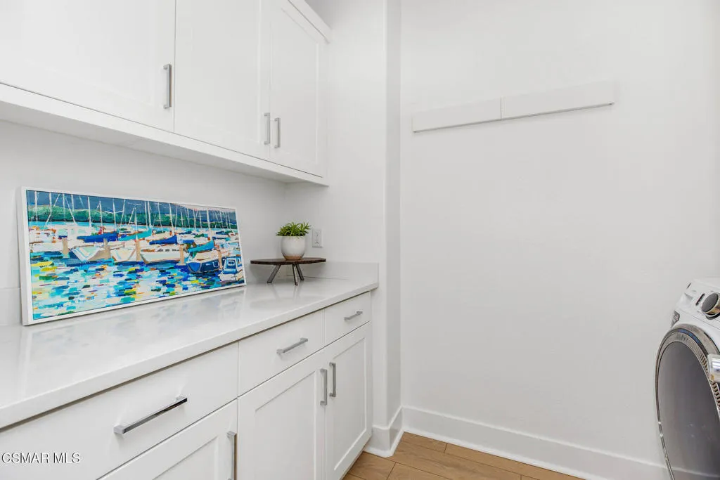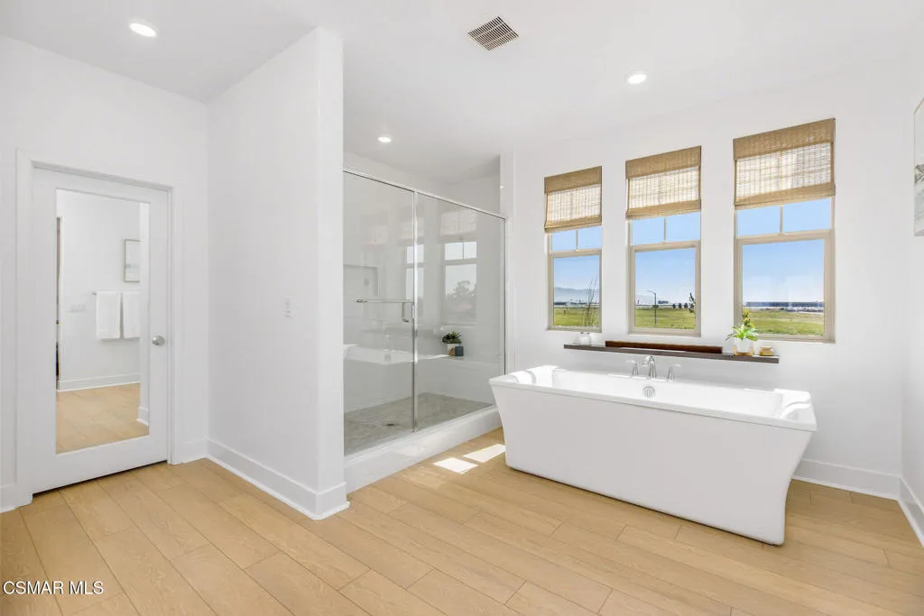 The largest model in Cortona. The upgrades are done. The solar is paid. The only thing left to do is move in.Located in Camarillo's sought-after Cortona community, this Residence 4 by Lennar is the largest model in the community, and it comes with over $70,000 in upgrades already completed, a fully paid solar system, and a finished backyard ready to enjoy from day one. Engineered hardwood flooring, custom window treatments, synthetic turf, landscape lighting, and wrought iron fencing with open views of the landscaped berm and Camarillo hills are all already in place.The home makes a strong first impression with its horizontal siding and stone exterior elements, columned porch, and open gable roofline. Inside, the open-concept chef's kitchen, dining, and family room flow seamlessly from a foyer entry, with a first-floor bedroom and full bath that's ideal for guests or multigenerational living. Upstairs, two additional bedrooms and a versatile loft surround the spacious owner's suite, which takes full advantage of its elevated position with commanding views of the Camarillo valley, airport, and surrounding mountains. The primary suite includes a spa-style en-suite private bathroom and a generous walk-in closet.Community amenities include a pool and spa, and a newly constructed neighborhood park with sports fields, a playground, pickleball and basketball courts, and a dog park.