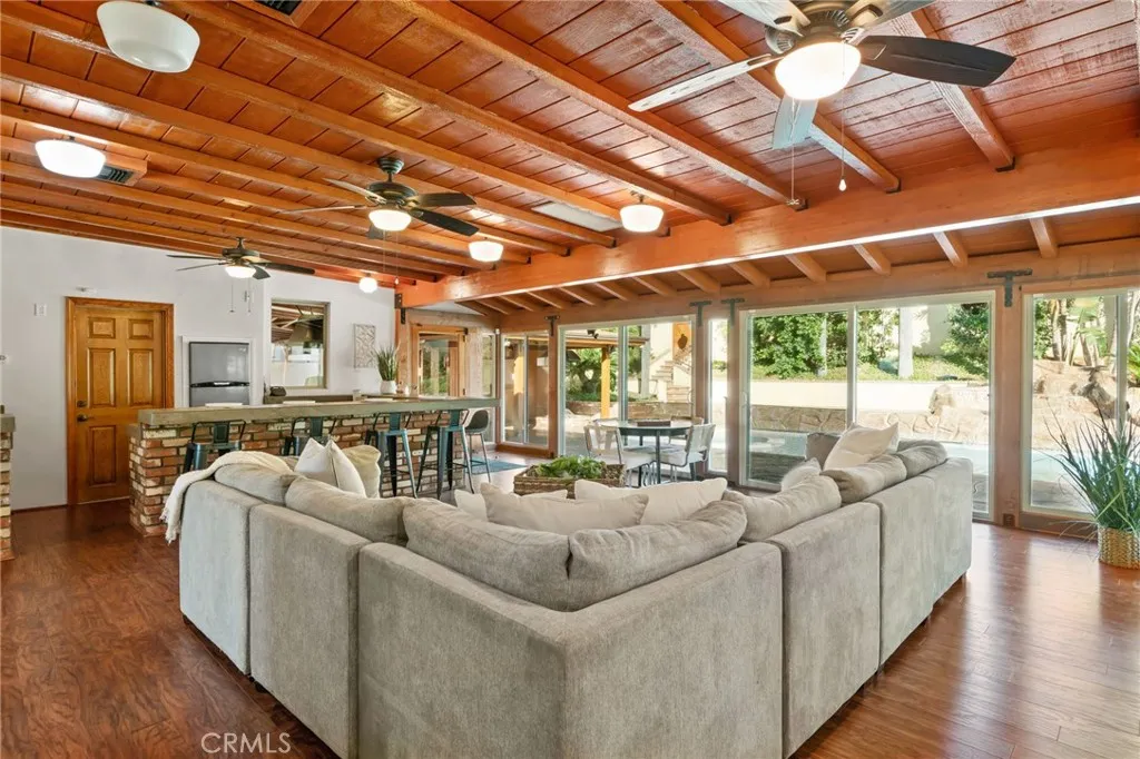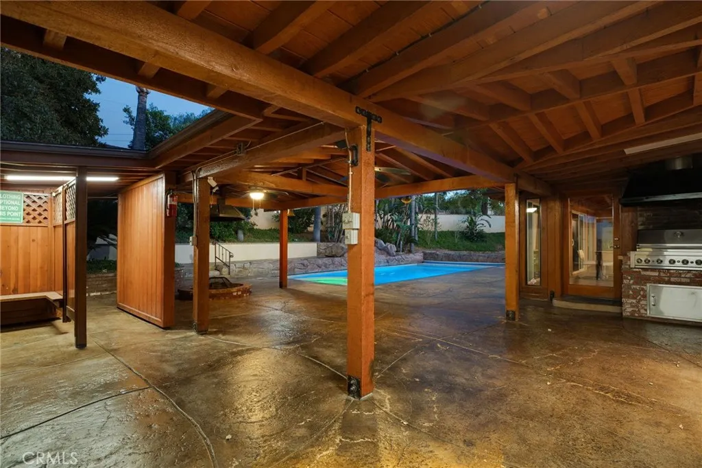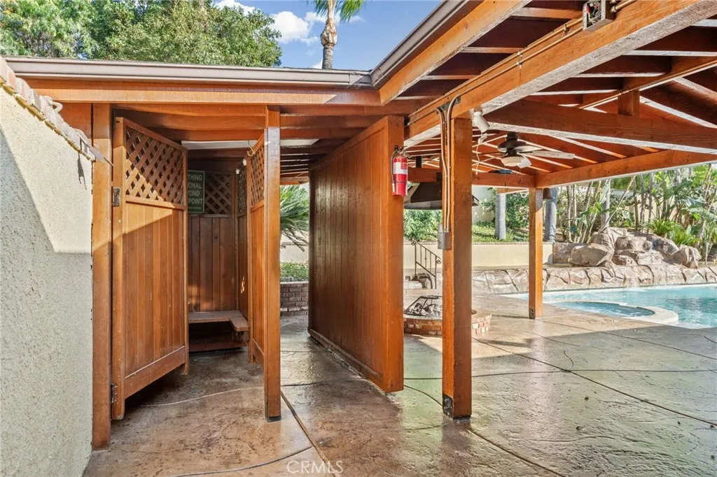 Experience resort-style living on this one-of-a-kind Riverside horse property estate, featuring a main home, guest house, separate apartment, and expansive shop, perfect for multi-generational living, entertaining, or income potential. The main residence is designed for comfort and hosting, offering a family room with built-in bar and a unique kitchen with indoor BBQ setup. Step outside to your private backyard retreat, complete with a pool and spa featuring a waterfall, color-changing lighting, Baja shelf, solar heating, and automated cover. Entertain effortlessly with a fully equipped outdoor kitchen with BBQ, refrigerator, gas fire pit, and multiple outdoor bathrooms conveniently located throughout the property. Unwind in your own private sauna designed for 6-8 people, creating a true at-home resort experience. Beyond the lifestyle features, this property is built for functionality and versatility. It includes a thriving orchard with a variety of fruit trees and a garden utilizing “bastard trenching” irrigation with well water, ideal for sustainable living. Designed with serious utility in mind, the property features over 100 fully paid-off solar panels, a natural gas backup generator, three septic systems, extensive outdoor water connections, and multiple air compressors throughout. For car enthusiasts, business owners, or hobbyists, the estate offers an incredible 25 garage spaces (including a lift), along with RV parking and additional covered parking with a metal overhang. The property is fully improved with concrete throughout and secured by an automated gated entry for privacy and convenience. Combining luxury amenities, income potential, and unmatched functionality, this rare property offers endless possibilities in a prime Riverside location.