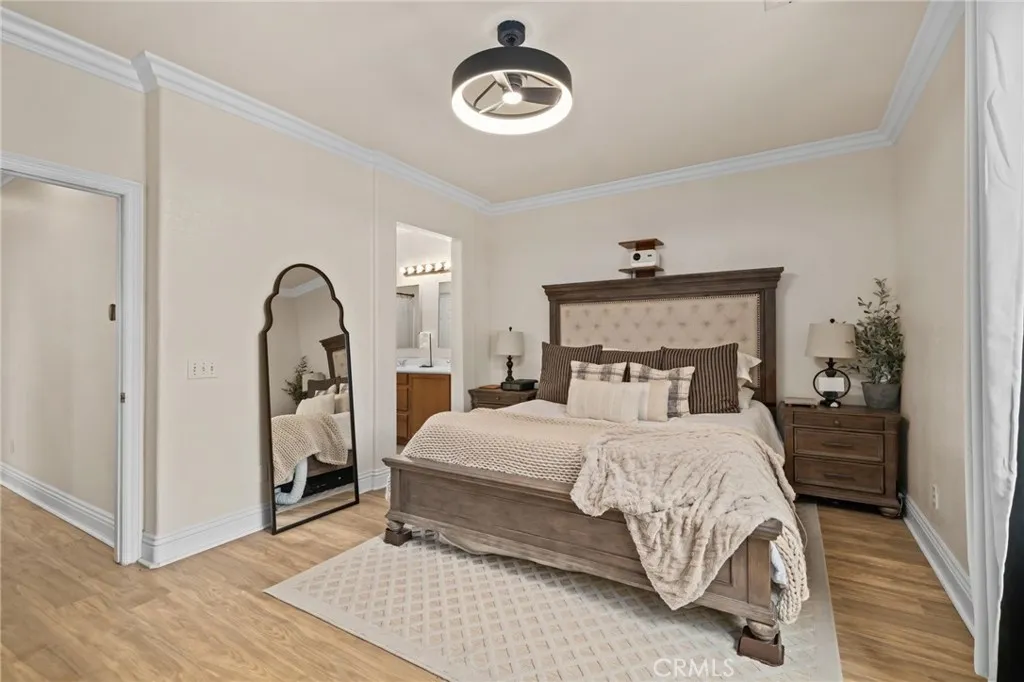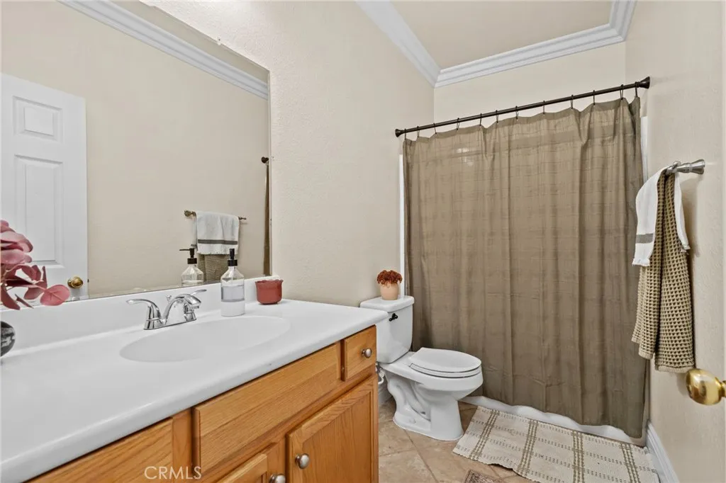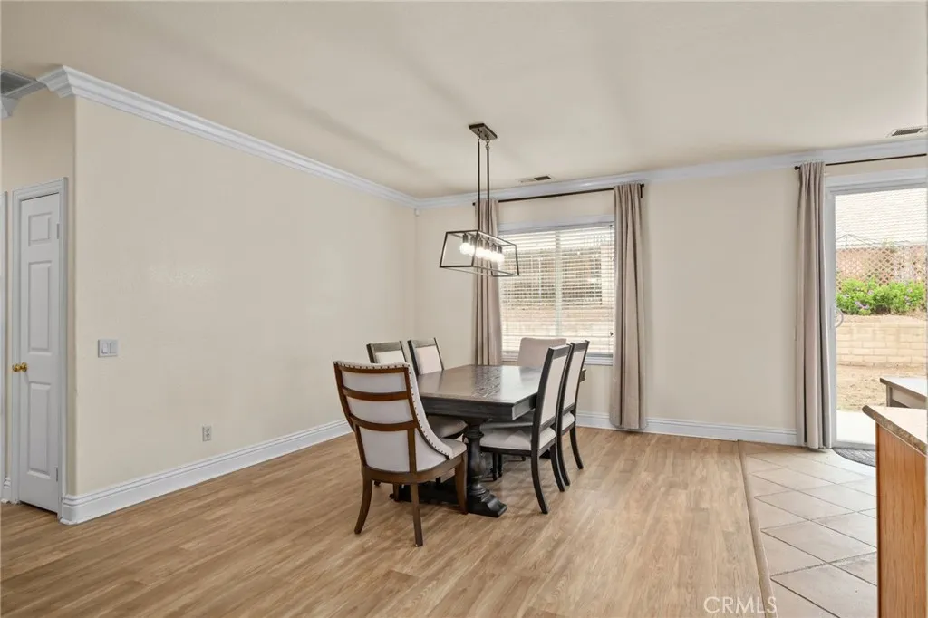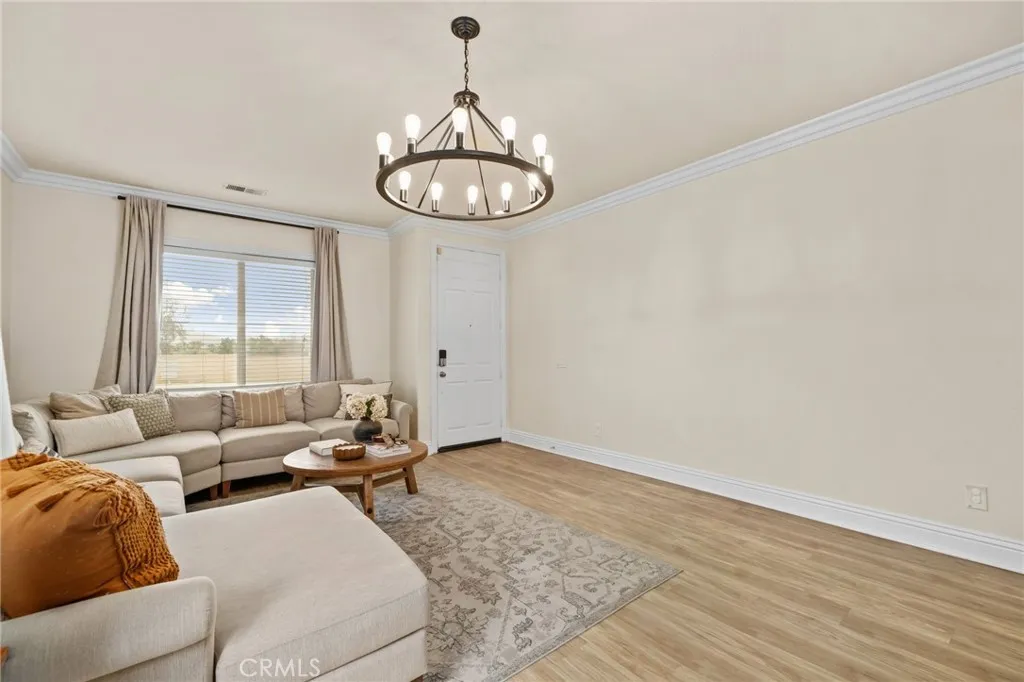Nestled in a quiet, desirable area of Moreno Valley with scenic foothill views, this charming home offers the perfect blend of comfort, privacy, and natural surroundings. From the moment you arrive, you’ll appreciate the inviting curb appeal, highlighted by lush landscaping and a well-maintained exterior. Step inside to a spacious, open family room featuring elegant crown molding and a neutral color palette that creates a warm and welcoming atmosphere. The layout flows effortlessly into a generous dining area and an open kitchen, ideal for both everyday living and entertaining. The kitchen is thoughtfully designed with a center island, granite countertops, pantry, and sliding glass doors that provide seamless access to the backyard. The primary suite serves as a relaxing retreat, complete with crown molding, upgraded window casings, and abundant natural light. The en-suite bathroom features dual sinks, a walk-in shower, and a spacious walk-in closet. Two additional bedrooms provide comfortable accommodations, one with its own walk-in closet, and share a well-appointed secondary bathroom. Additional highlights include crown molding throughout and a convenient indoor laundry room with direct garage access. Step outside to a private, low-maintenance backyard featuring extensive concrete and extra side yard space, perfect for entertaining, storage, or future customization. With no rear neighbors, enjoy added privacy and peaceful surroundings. Conveniently located near parks, schools, shopping, dining, and major commuter routes, this home offers the ideal balance of tranquility and accessibility. Don’t miss this opportunity to own a beautifully maintained home in one of Moreno Valley’s most peaceful settings!