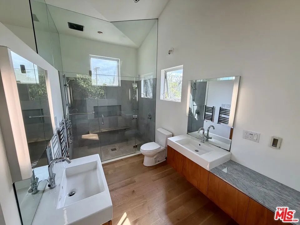 Architectural 2-story home on a prime corner lot in one of Venice's most desirable locations, just 4 blocks to the beach and adjacent to the iconic Venice Canals. Built in 2012, this thoughtfully designed 3 bedroom + office, 2.5 bath residence blends modern style with exceptional functionality. Features include hardwood floors, recessed lighting, central heating and A/C, and solar panels for energy efficiency. The gourmet kitchen offers stainless steel appliances, a large center island with abundant storage, built-in bar, and skylight, opening to a step-down living room with custom built-in shelving.A separate laundry room adds convenience. The entire second floor is dedicated to a stunning primary suite with walk-in closet, skylights, large retractable window, and serene tree-top views. The luxurious primary bath includes a double vanity, double shower, heated towel rack, and skylight. Detached 2 car garage with EV Charger. Large Rear Yard. Unbeatable Westside location near Venice Beach, Venice Canals, Marina del Rey, Abbot Kinney Boulevard, local farmers market, bike path, and top-rated Coeur d'Alene Avenue Elementary School. Surrounded by premier dining, shopping, and coastal amenities, this home offers the ultimate Venice lifestyle.Priced to sellan exceptional opportunity to enjoy the best of beach living.