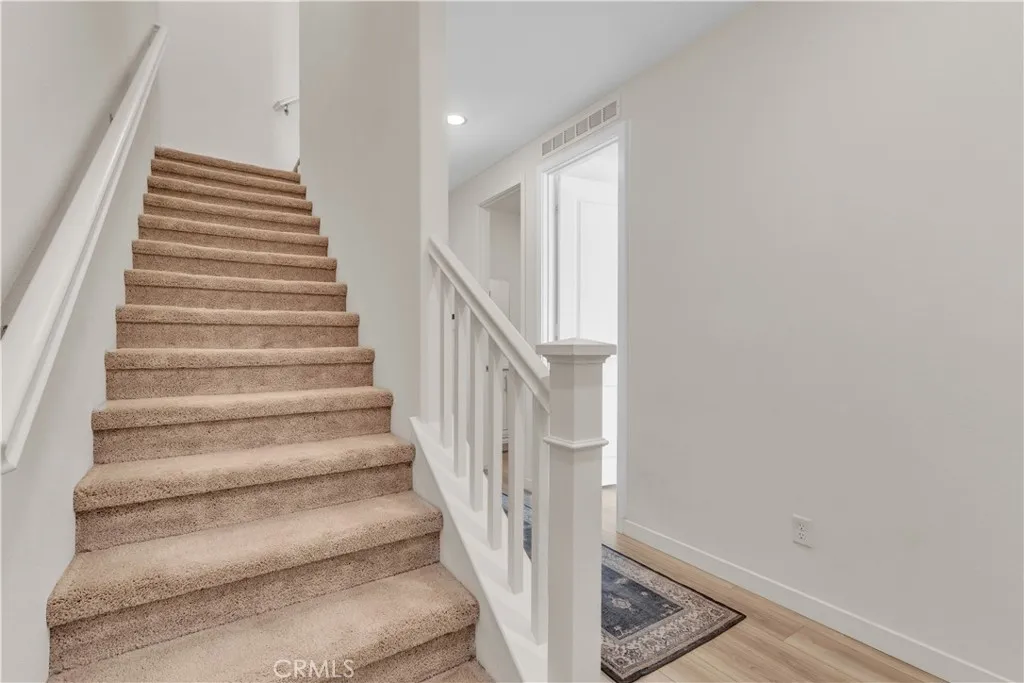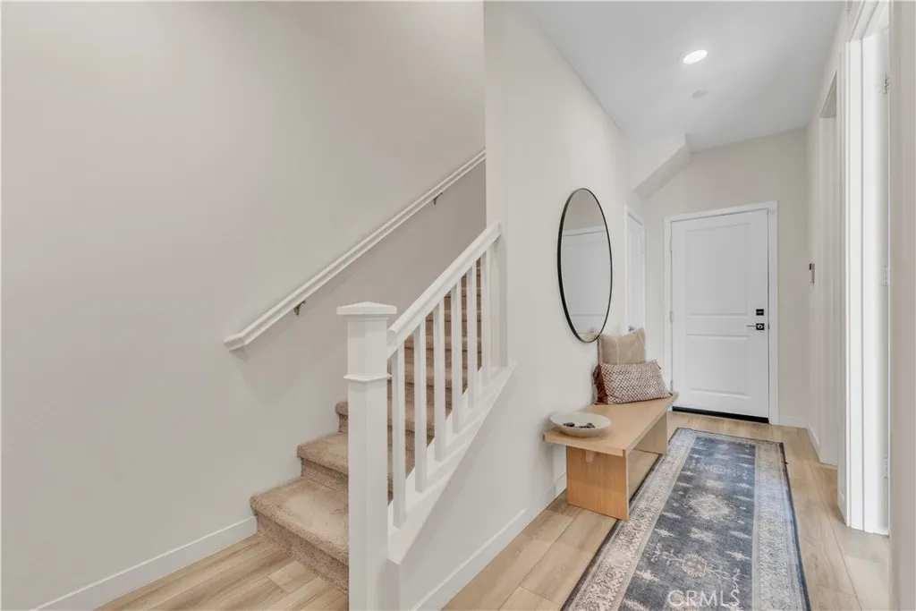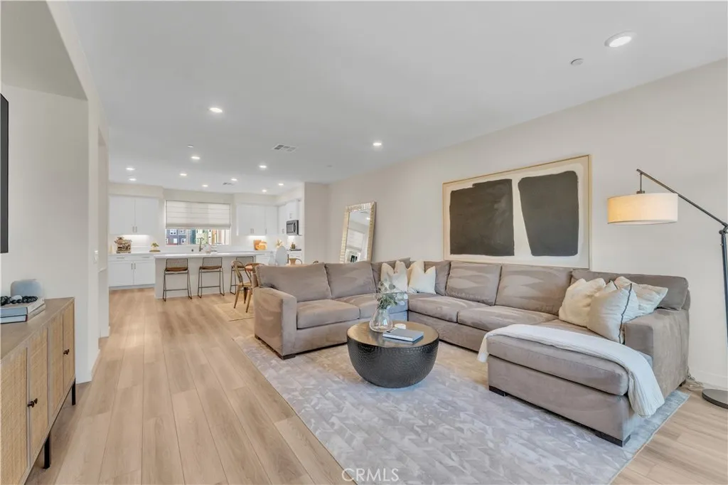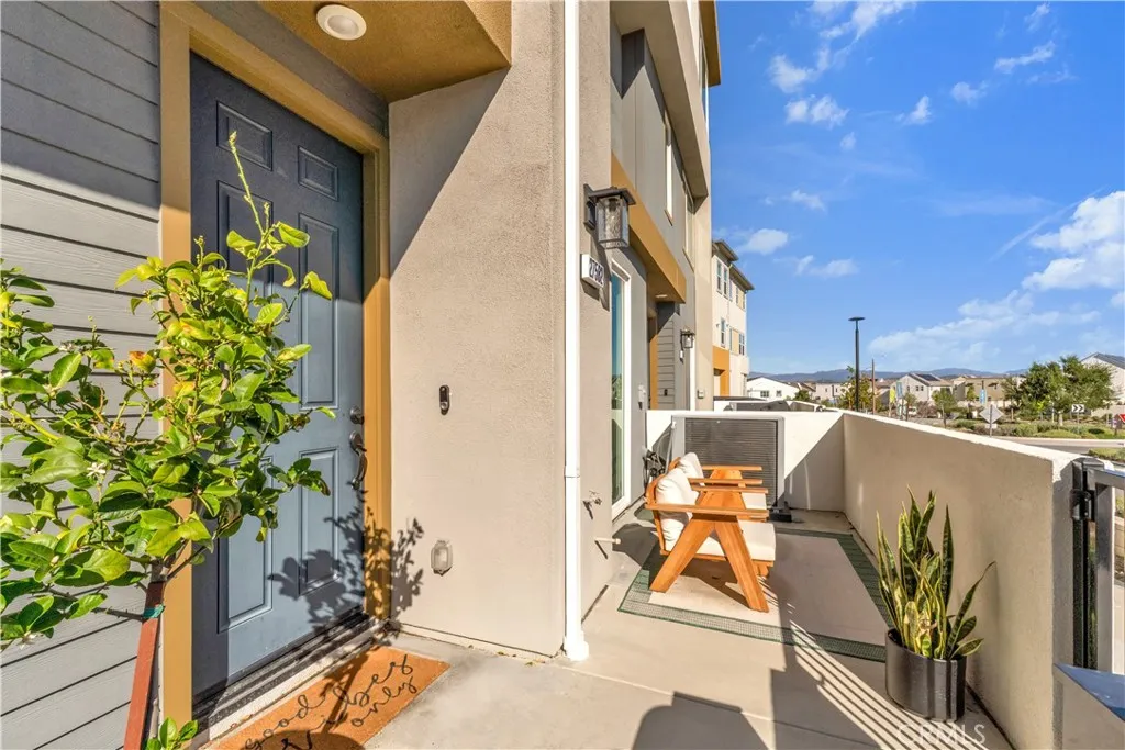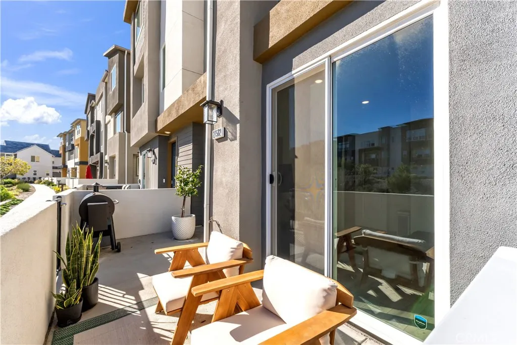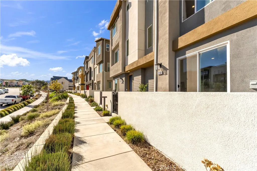 Seller's Current FHA Loan at 4.75% Interest Rate May be Assumable! Experience exceptional modern living in the highly coveted FivePoint community of Valencia. Built in 2022, this tri-level townhome blends contemporary luxury with everyday comfort. Set in a prime location with inviting views, this light-filled 3 bedroom, 3.5 bathroom residence offers approximately 1,840 square feet of thoughtfully designed living space. The main level showcases an open-concept great room with living and dining areas that flow seamlessly into a sun-drenched kitchen. Enjoy a spacious center island, stainless steel Whirlpool appliances, walk-in pantry, Quartz countertops, and crisp white cabinetry. Wide-plank wood-like flooring and abundant natural light create a warm, tranquil atmosphere throughout. The upper level hosts the elegant primary suite, complete with plush carpeting, a generous walk-in closet, and a spa-inspired bathroom featuring dual vanities, a separate shower, and a soaking tub. An additional ensuite bedroom and a convenient laundry closet with side-by-side washer and dryer complete this floor. The lower level offers a charming entry and a versatile third bedroom, ideal as a family room, office, gym, or guest space and with sliding glass doors opening to the front courtyard. This level also includes a full bathroom with walk-in shower and direct access to the attached two-car garage. Designed for today’s lifestyle, the home includes eco-friendly upgrades such as solar panels, an Ecobee thermostat, EV charger, water filtration system, and a tankless water heater, enhancing both convenience and sustainability. Residents of FivePoint enjoy an array of resort-style amenities, including multiple pools and spas, a clubhouse, parks, sport courts, scenic hiking and biking trails, a community greenhouse, and the Community Center. All of this is just minutes from Confluence Park, major roadways, freeways, Magic Mountain, shopping, dining, and award-winning schools.