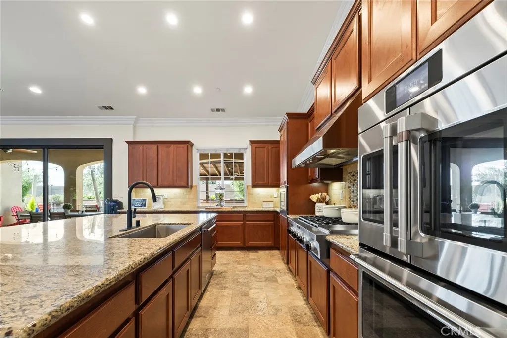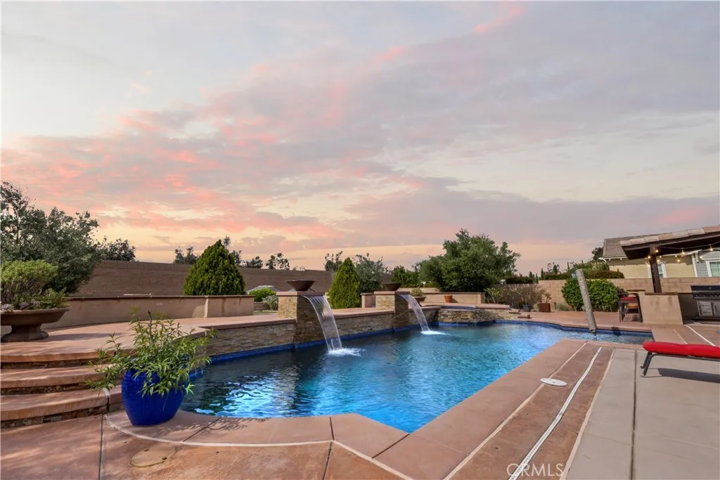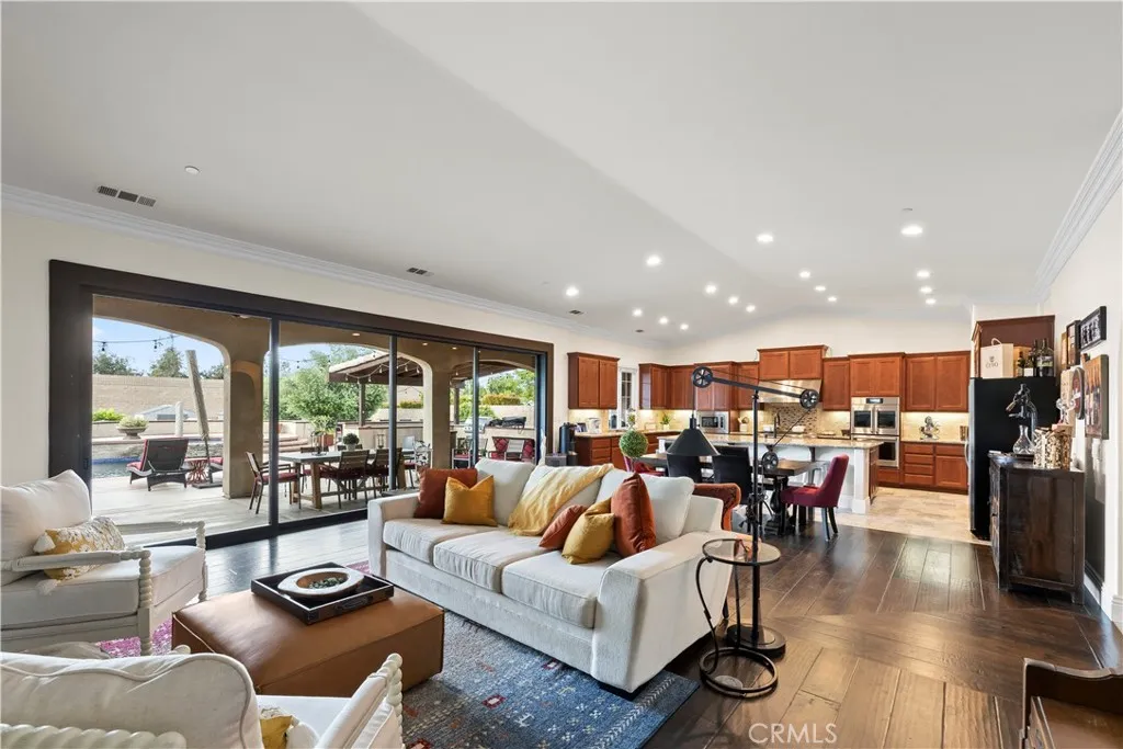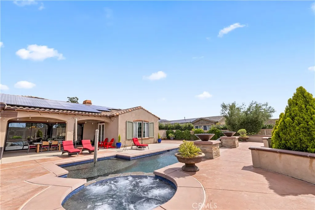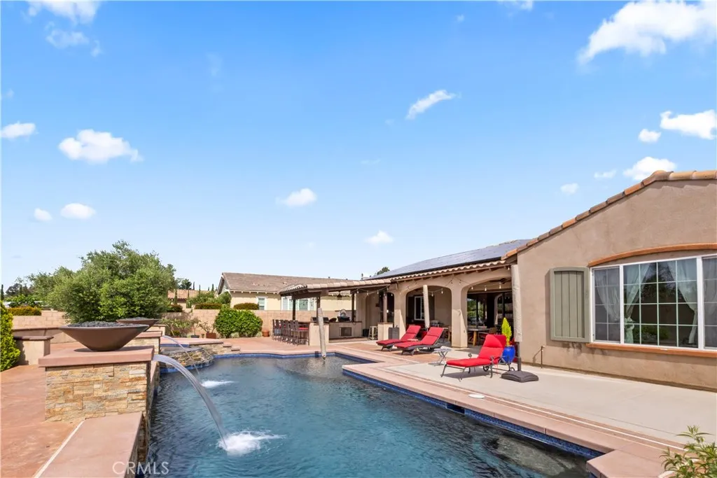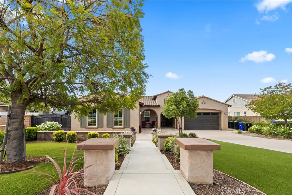 Multi-generational living at its finest! RV Parking! Owned solar! Fully transferrable NEM 1.0! EV charging installed in garage! Completely separate ADU with its own private entrance, full kitchen, bathroom, living space, and laundry - ideal for extended family, guests, or income potential. This stunning single-story estate on a sprawling ½-acre horse-property lot offers the perfect blend of luxury, privacy, and versatility in highly desirable North Rancho Cucamonga. Boasting 5 total bedrooms and 4 bathrooms featuring two distinct living areas with flexible space for everyone to gather or retreat. Step inside to dramatic high ceilings with crown molding and an expansive open floor plan. Wood and travertine flooring flow throughout, while a wall of large sliding glass doors frames breathtaking views of the resort-style backyard and custom pool. The heart of the home is a chef’s kitchen featuring an expansive granite countertop island, stainless steel KitchenAid appliances, a built-in Sub-Zero refrigerator, and a large walk-in pantry - perfect for entertaining. Open the sliding doors to seamlessly blend indoor and outdoor living. The backyard is an entertainer’s dream: a Pebble Tec pool and spa with fire bowls, a built-in BBQ/bar area with outdoor fireplace and TV, two separate covered patios, an intimate loggia with a beautiful fountain, a private fire pit area, and low-maintenance turf landscaping with drought-tolerant plants. Whether hosting lively gatherings or enjoying quiet evenings, this private oasis delivers resort vibes right at home. Premium upgrades abound: owned solar panels, tankless water heater, surround sound, wired security camera system, EV charging outlet, and RV access. No HOA means even more freedom. Located in the top-rated Etiwanda School District, with elementary, middle, and high schools all within walking distance. Convenient access to shopping, dining, freeways, and Ontario International Airport. This rare combination of space, luxury, and location won’t last long. Schedule your private tour today and imagine the possibilities!