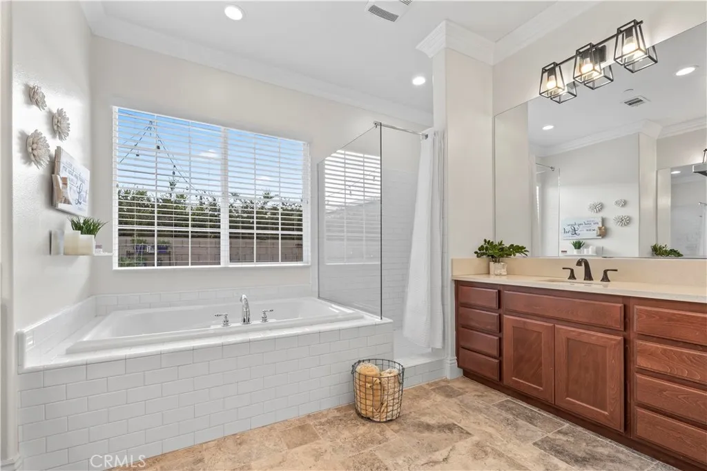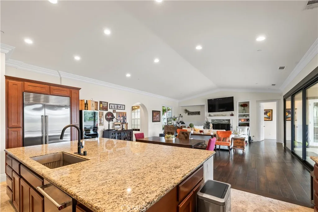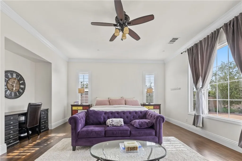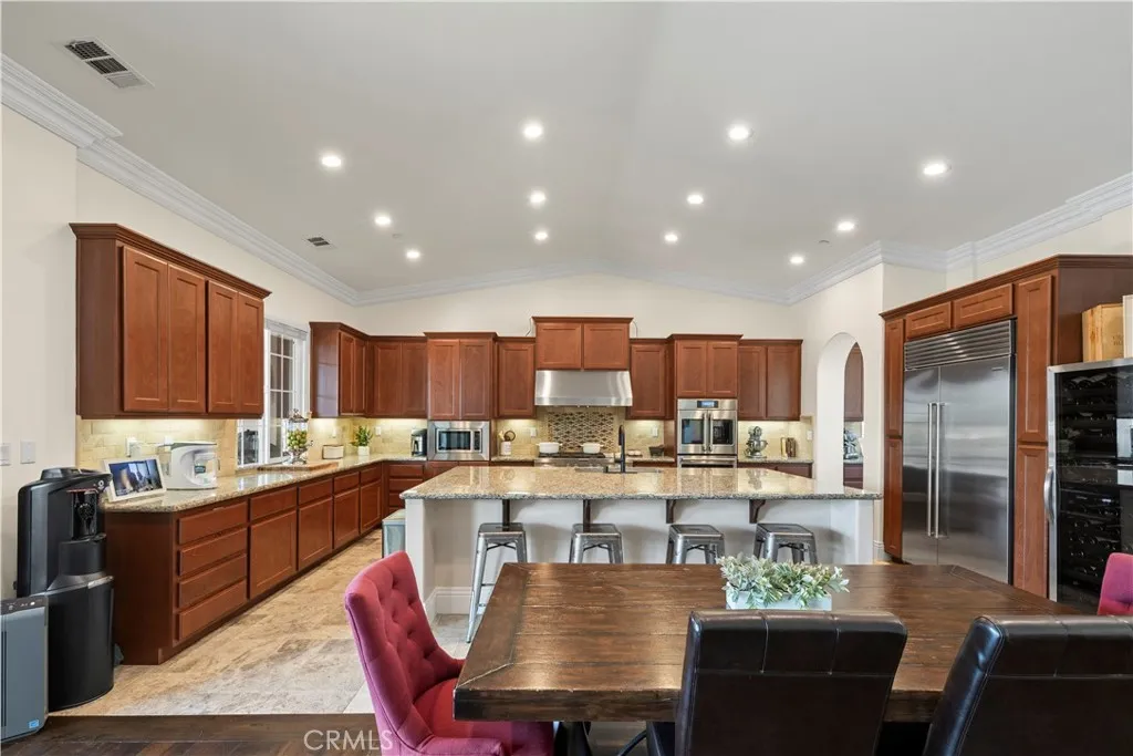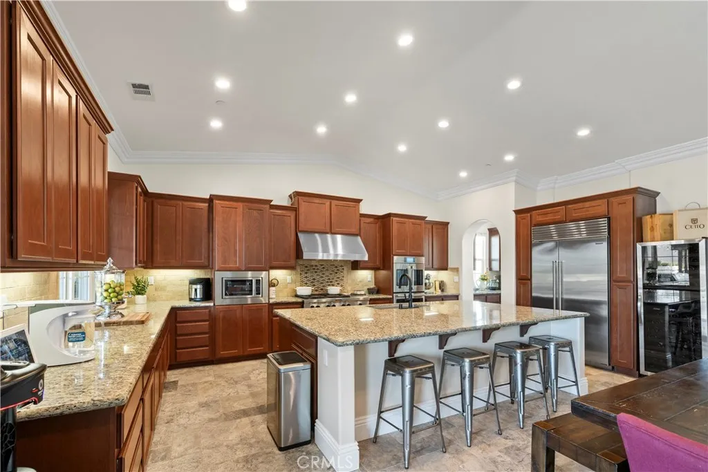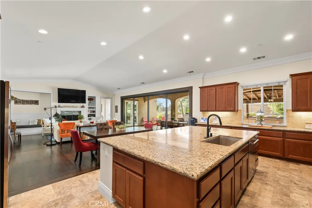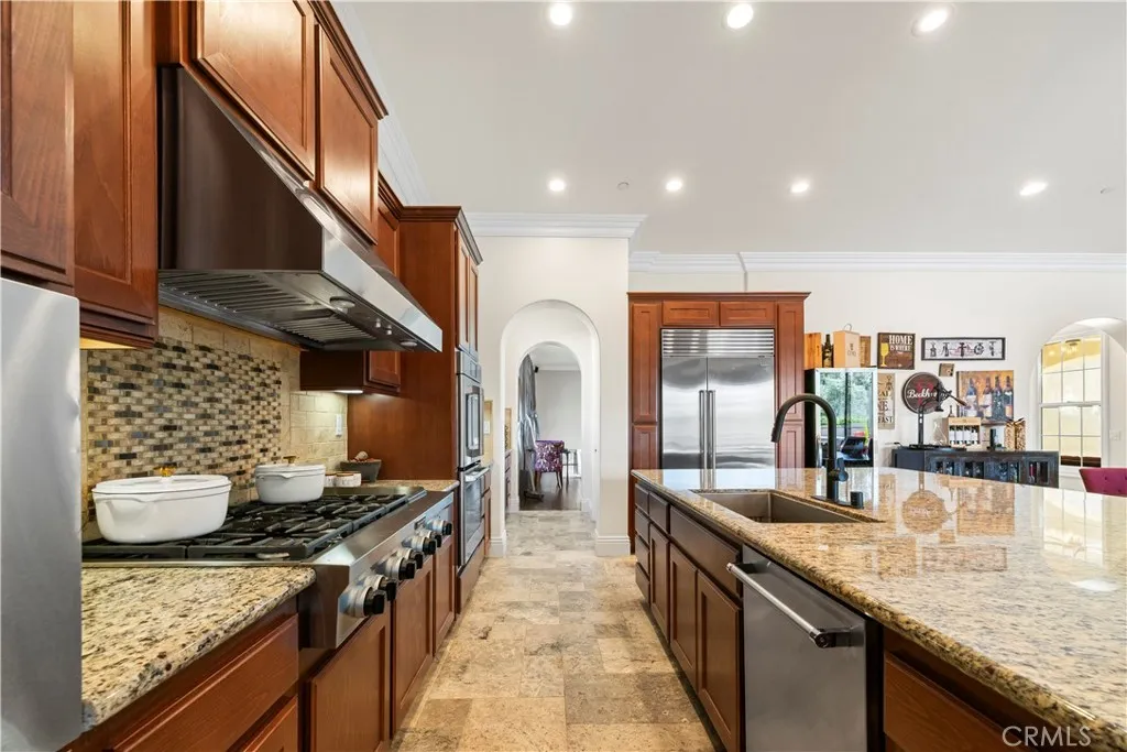 Multi-generational living at its finest! RV Parking! Owned solar! Fully transferrable NEM 1.0! EV charging installed in garage! Completely separate ADU with its own private entrance, full kitchen, bathroom, living space, and laundry - ideal for extended family, guests, or income potential. This stunning single-story estate on a sprawling ½-acre horse-property lot offers the perfect blend of luxury, privacy, and versatility in highly desirable North Rancho Cucamonga. Boasting 5 total bedrooms and 4 bathrooms featuring two distinct living areas with flexible space for everyone to gather or retreat. Step inside to dramatic high ceilings with crown molding and an expansive open floor plan. Wood and travertine flooring flow throughout, while a wall of large sliding glass doors frames breathtaking views of the resort-style backyard and custom pool. The heart of the home is a chef’s kitchen featuring an expansive granite countertop island, stainless steel KitchenAid appliances, a built-in Sub-Zero refrigerator, and a large walk-in pantry - perfect for entertaining. Open the sliding doors to seamlessly blend indoor and outdoor living. The backyard is an entertainer’s dream: a Pebble Tec pool and spa with fire bowls, a built-in BBQ/bar area with outdoor fireplace and TV, two separate covered patios, an intimate loggia with a beautiful fountain, a private fire pit area, and low-maintenance turf landscaping with drought-tolerant plants. Whether hosting lively gatherings or enjoying quiet evenings, this private oasis delivers resort vibes right at home. Premium upgrades abound: owned solar panels, tankless water heater, surround sound, wired security camera system, EV charging outlet, and RV access. No HOA means even more freedom. Located in the top-rated Etiwanda School District, with elementary, middle, and high schools all within walking distance. Convenient access to shopping, dining, freeways, and Ontario International Airport. This rare combination of space, luxury, and location won’t last long. Schedule your private tour today and imagine the possibilities!